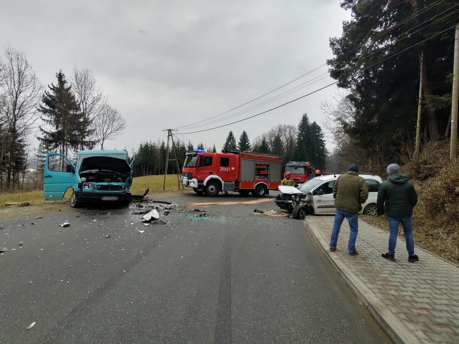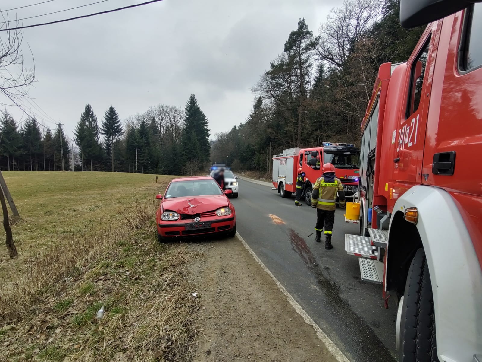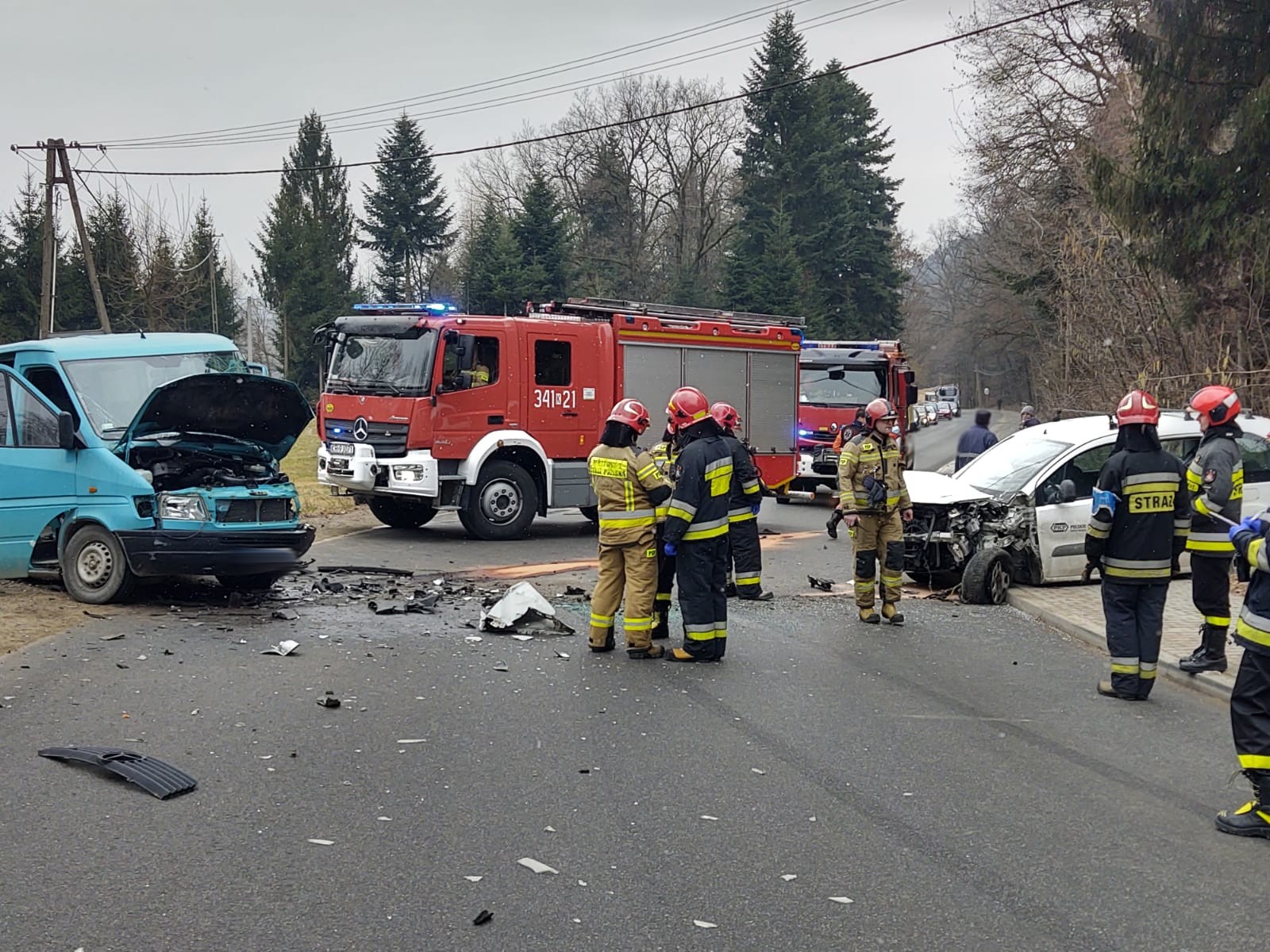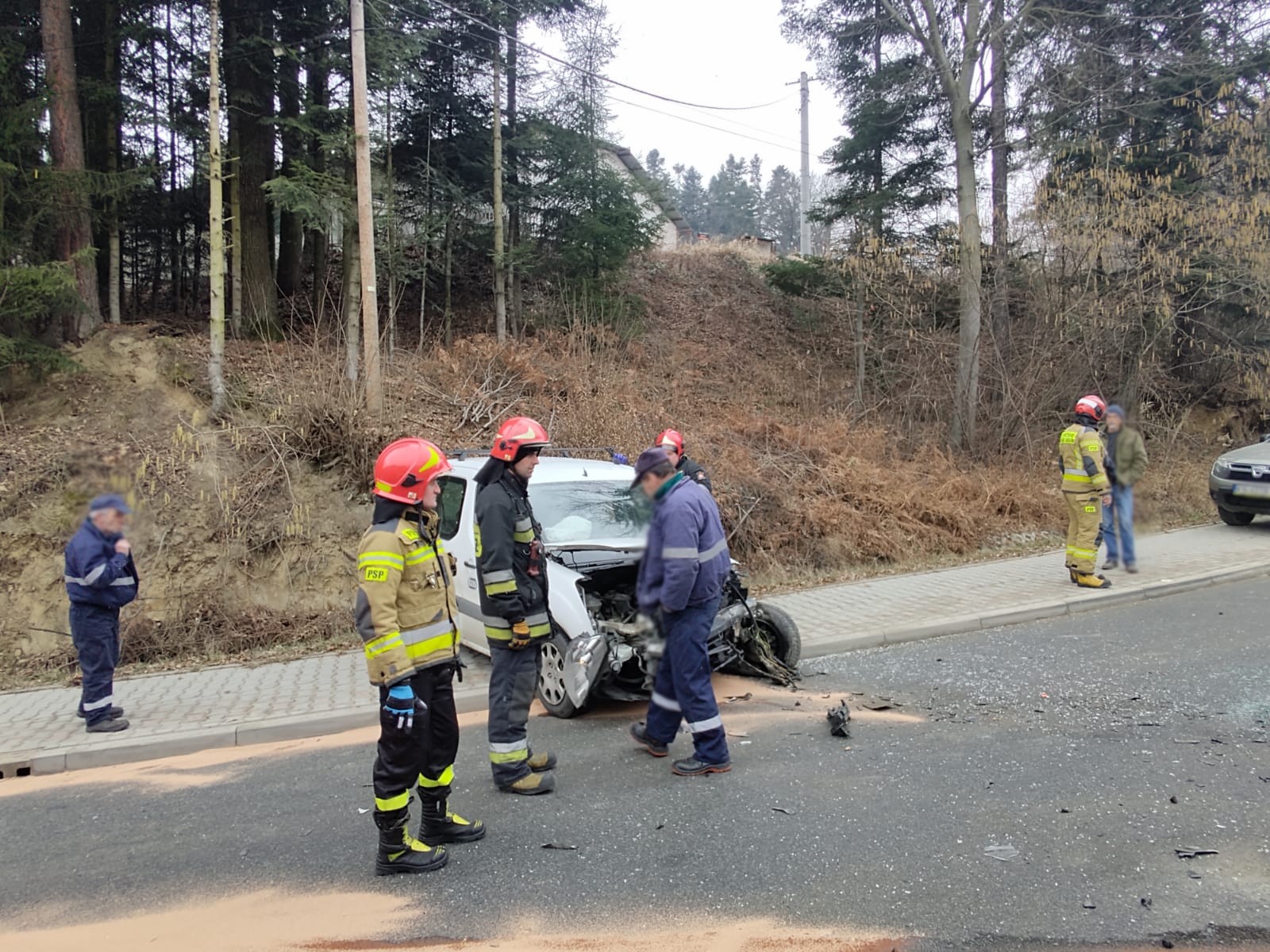 4 marca o godzinie 12.51 zastępy z JRG nr 1 w Nowym Sączu zadysponowane zostały do działań w Rdziostowie. Po przybyciu na miejsce zdarzenia ustalono, że doszło do zderzenia trzech samochodów osobowych marki Peugeot Tepee, Mercedes Sprinter (bus dostawczy) i VW Golf IV. Samochodami podróżowało łącznie cztery osoby. Wszyscy uczestnicy zdarzenia opuścili pojazdy o własnych siłach. Jedna osoba uskarżała się na dolegliwości. Droga zablokowana była w obu kierunkach. Nastąpił wyciek płynów eksploatacyjnych na jezdnie. Działania zastępów straży polegały na zabezpieczeniu miejsca zdarzenia oraz udzieleniu pomocy osobie poszkodowanej. Odłączono akumulator w samochodzie Peugeot. Dokonano sorpcji rozlanych płynów eksploatacyjnych na jezdni. Na miejsce zdarzenia przybyły dwie karetki. Po przebadaniu osoby uczestniczące w zdarzeniu pozostały na miejscu zdarzenia. Samochód Peugeot został ściągnięty na pobocze przy użyciu wciągarki zamontowanej na wyposażeniu samochodu pożarniczego. Dalsze czynności polegały na wprowadzeniu ruchu wahadłowego. VW Golf został odholowany przez drugi samochód osobowy, natomiast Mercedes Sprinter został zabrany z miejsca zdarzenia przez pomoc drogową. Po zakończonych czynnościach dochodzeniowych przez Policję, usunięto uszkodzone elementy karoserii. Na miejscu pozostał patrol Policji oraz uczestnicy zdarzenia. Działania strażaków trwały dwie godziny.