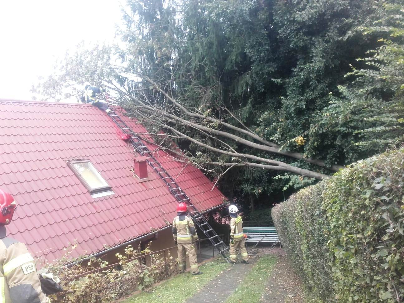 24 września o godzinie 10.36 zastępy z JRG nr 1 w Nowym Sączu oraz OSP Rożnów zadysponowane zostały do działań w Rożnowie. Po przybyciu na miejsce zdarzenia ustalono, że na dachu budynku mieszkalnego leżało powalone drzewo liściaste. Osoby zamieszkujące budynek znajdowały się poza obiektem i nie uskarżały się na żądne dolegliwości. Działania strażaków polegały na zabezpieczeniu terenu działań. Przy użyciu piły pocięto drzewo i usunięto z dachu budynku mieszkalnego. Działania strażaków trwały ponad dwie godziny. To nie jedyne działania związane z drzewami w piątek 24 września. Rano w Stróżach usuwano powalone drzewo z drogi powiatowej. Przed południem rozpoznawano zagrożenie od pochylonego drzewa w Nowym Sączu na ulicy Obłazy.