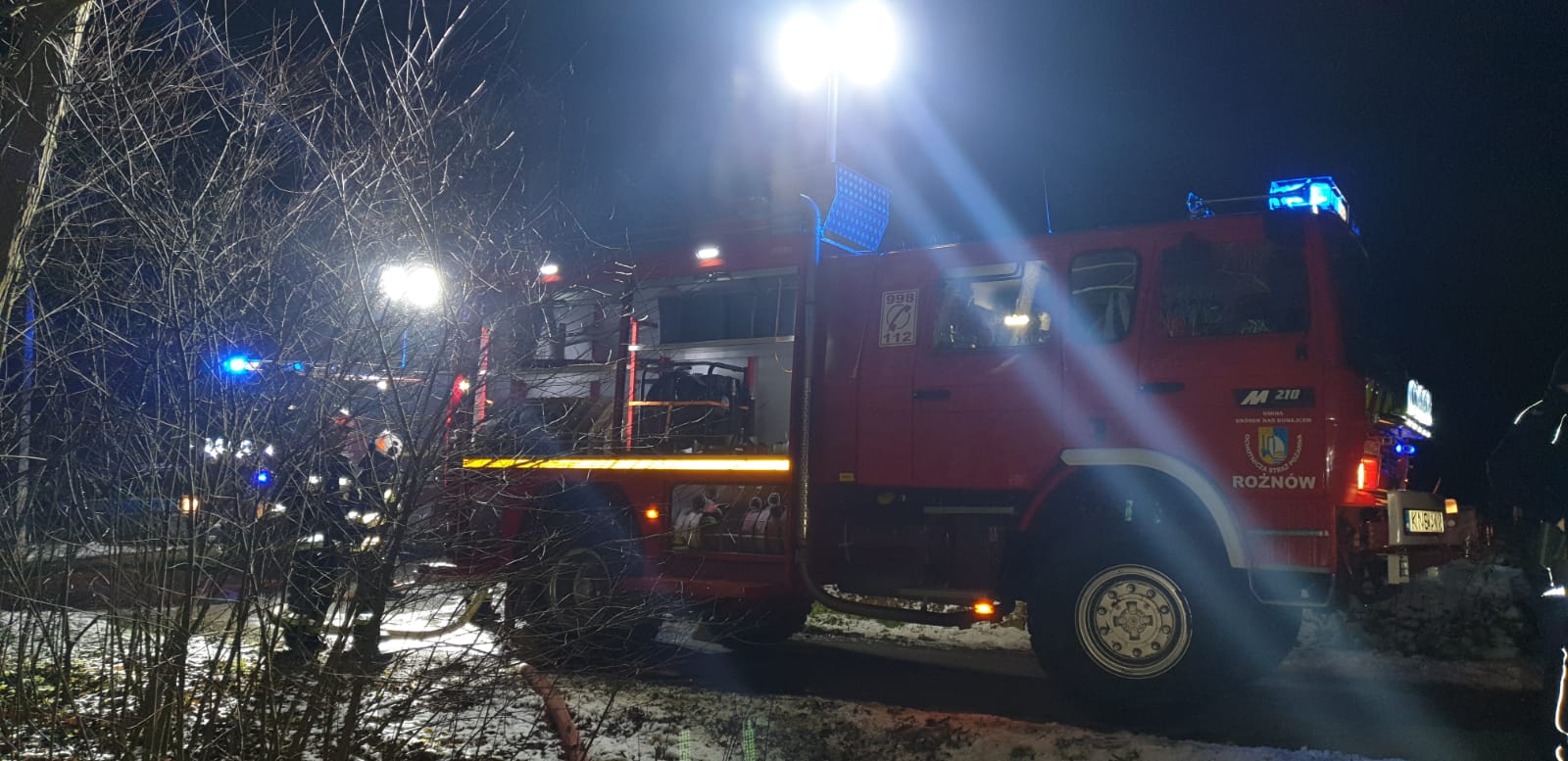 9 grudnia o godzinie 12.26 zastępy z JRG nr 1 w Nowym Sączu, OSP Rożnów oraz OSP Gródek nad Dunajcem zadysponowane zostały do Roztoki-Brzeziny. Pierwszy na miejsce zdarzenia dotarł zastęp OSP Rożnów, który ustalił, że paliło się siano składowane w budynku gospodarczym. W pobliżu miejsca pożaru nie było innych zagrożonych budynków. Na miejscu obecny był patrol Policji. Działania zastępów straży polegały na zabezpieczeniu miejsca zdarzenia, podaniu dwóch prądów wody w natarciu na palące się siano, oświetleniu miejsca prowadzenia działań, wynoszeniu na zewnątrz oraz przelewaniu spalonego siana. Po ugaszeniu pożaru kamerą termowizyjną sprawdzono elementy konstrukcyjne budynku. Działania strażaków trwały półtorej godziny. Przyczyna pożaru jest nieustalona.
