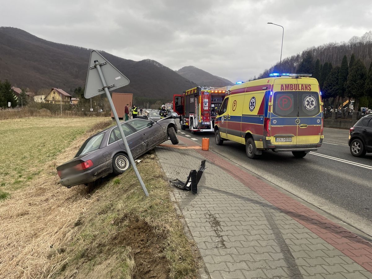 20 lutego o godzinie 13.42 zastępy z JRG nr 2 w Nowym Sączu oraz OSP Barcice zadysponowane zostały do działań w Rytrze. Po przybyciu na miejsce zdarzenia ustalono, że samochód osobowy marki Audi z niewiadomych przyczyn zjechał z drogi i uderzył w barierki energochłonne. Samochód częściowo znajdował się na jednym pasie ruchu i chodniku. Samochodem podróżował tylko kierowca, który był badany przez ratowników medycznych w karetce. Działania strażaków polegały na zabezpieczeniu miejsca zdarzenia. Odłączono klemy akumulatora w pojeździe. Wycieki płynów eksploatacyjnych zebrano sorbentem. Przemieszczono pojazd w bezpieczne miejsce. Na czas prowadzenia działań kierowano ruchem pojazdów, który odbywał się wahadłowo. Kierujący pojazdem po przebadaniu pozostał na miejscu zdarzenia.