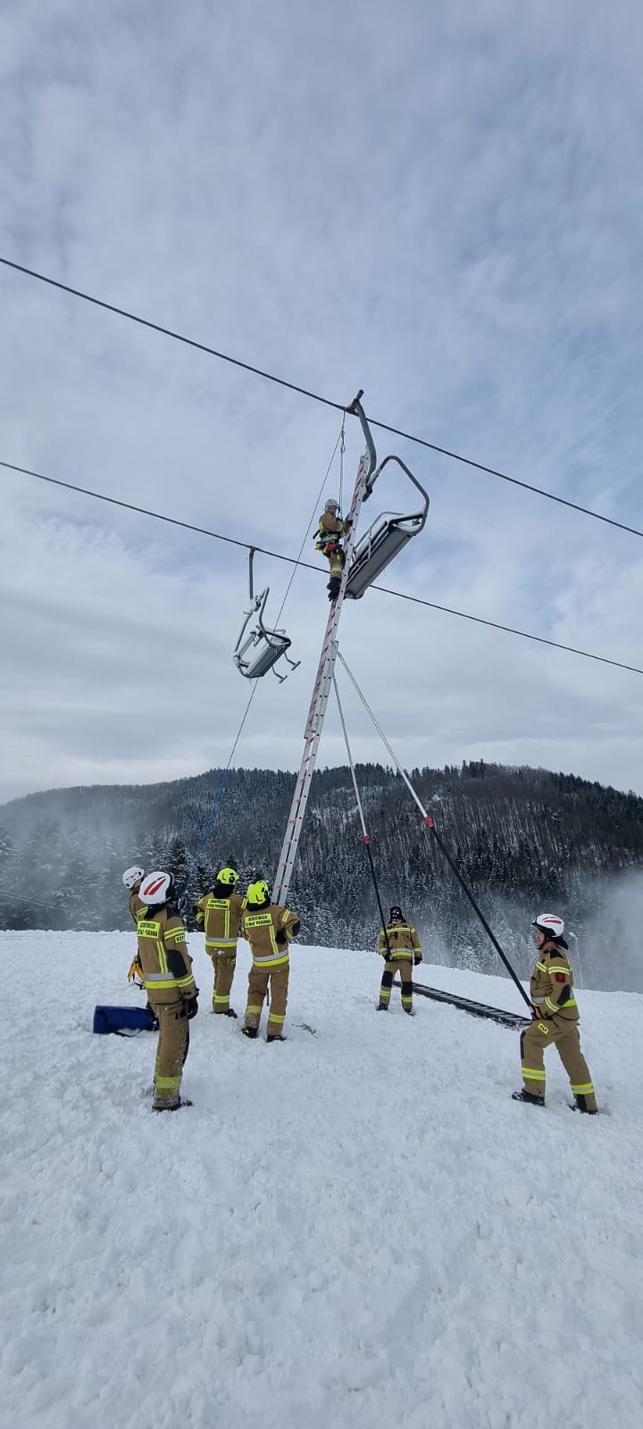 W sobotę 9 grudnia odbyły się ćwiczenia oraz szkolenia przypominające w zakresie ewakuacji z kolejek linowych dla jednostek Ochotniczych Straży Pożarnych, które procedurą przewidziane są do prowadzenia ewakuacji w przypadku awaryjnego zatrzymania kolei. Szkolenia teoretyczne zostały przeprowadzone w remizie OSP Rytro. Zajęcia praktyczne odbyły się na kolejce w Rytrze Podczas ćwiczeń prowadzono ewakuacje przy użyciu drabin oraz technik linowych.