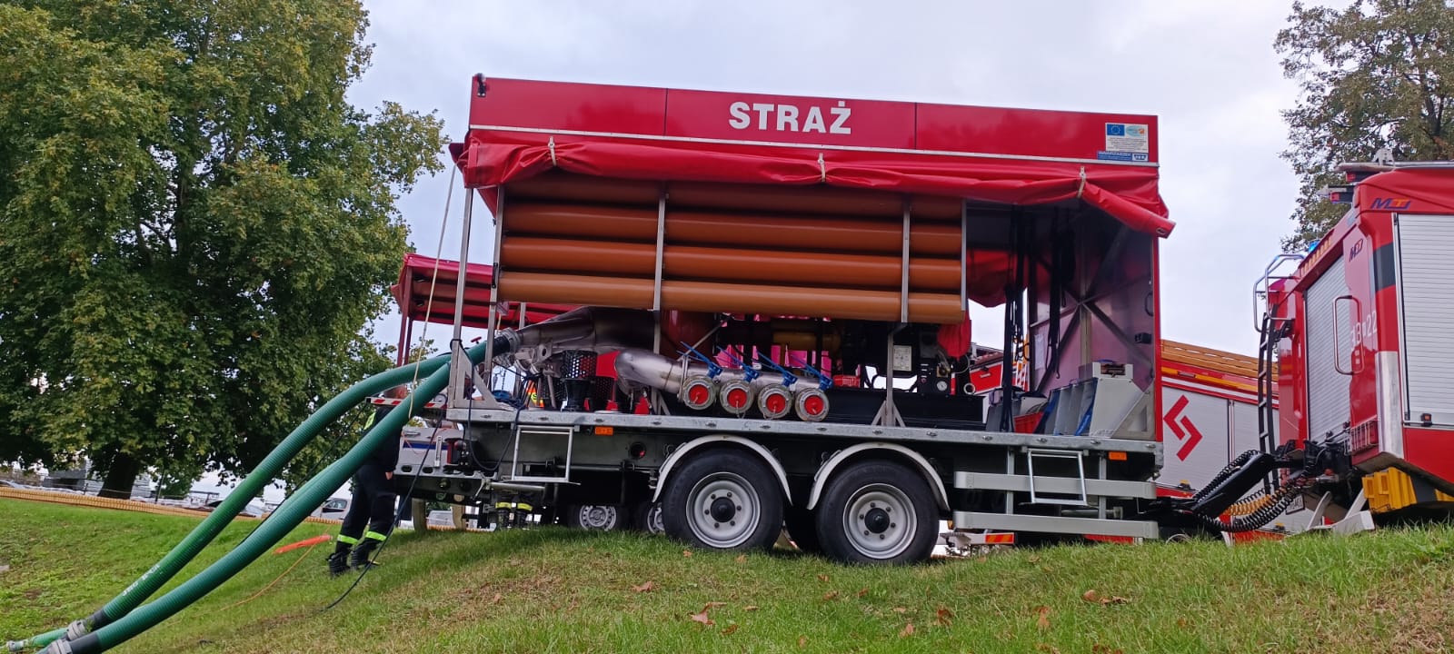 W sobotę 21 września strażacy z KM PSP Nowym Sączu udali się do działań w zachodniej części Polski aby wesprzeć działania powodziowe. Dwóch strażaków z dronem dotarli do Stronia Śląskiego, Lądka Zdroju, Wrocławia oraz Nowej Soli. Zadanie główne to wsparcie pracy sztabu. Strażacy realizowali obraz na żywo dla sztabu w tym w czasie konferencji z udziałem między innymi premiera. Mapowali rozlewisko Odry oraz realizowali loty patrolowe w obrębie wałów przeciwpowodziowych. Strażacy z dronem powrócili wieczorem 24 września do Nowego Sącza. Cały czas w zachodniej części Polski przebywa dwóch strażaków z pompą dużej wydajności z KM PSP Nowy Sącz. Dzisiaj (25 września) prowadzą działania związane z pompowaniem wody z rozlewiska w Kostrzynie nad Odrą.