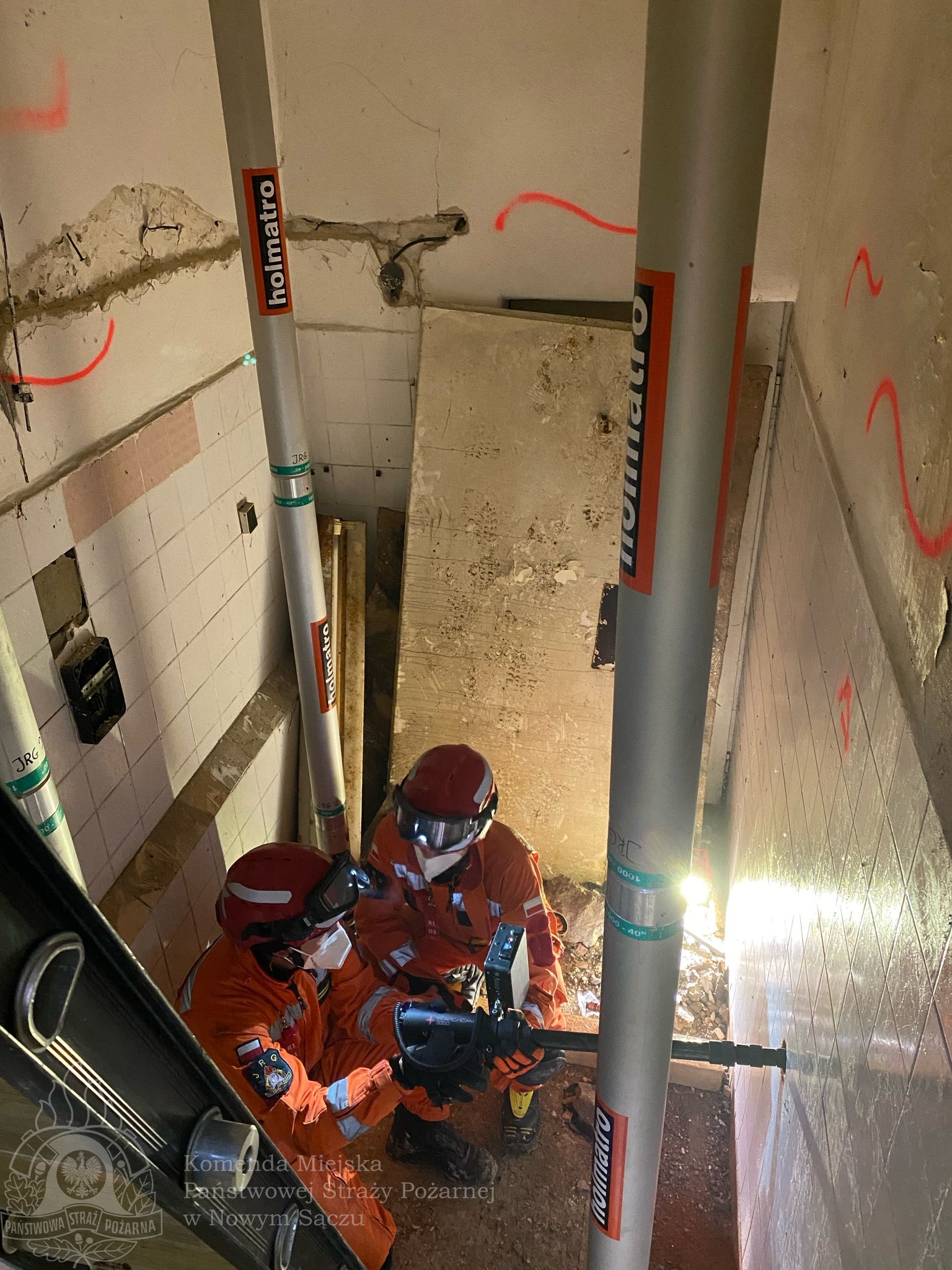 - zlokalizowano poszkodowanego przy użyciu kamery wziernikowej,