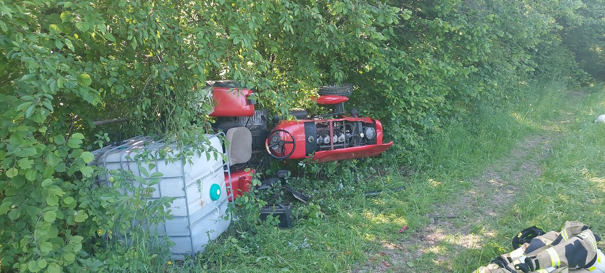 Słowikowa- przewrócony ciągnik rolniczy