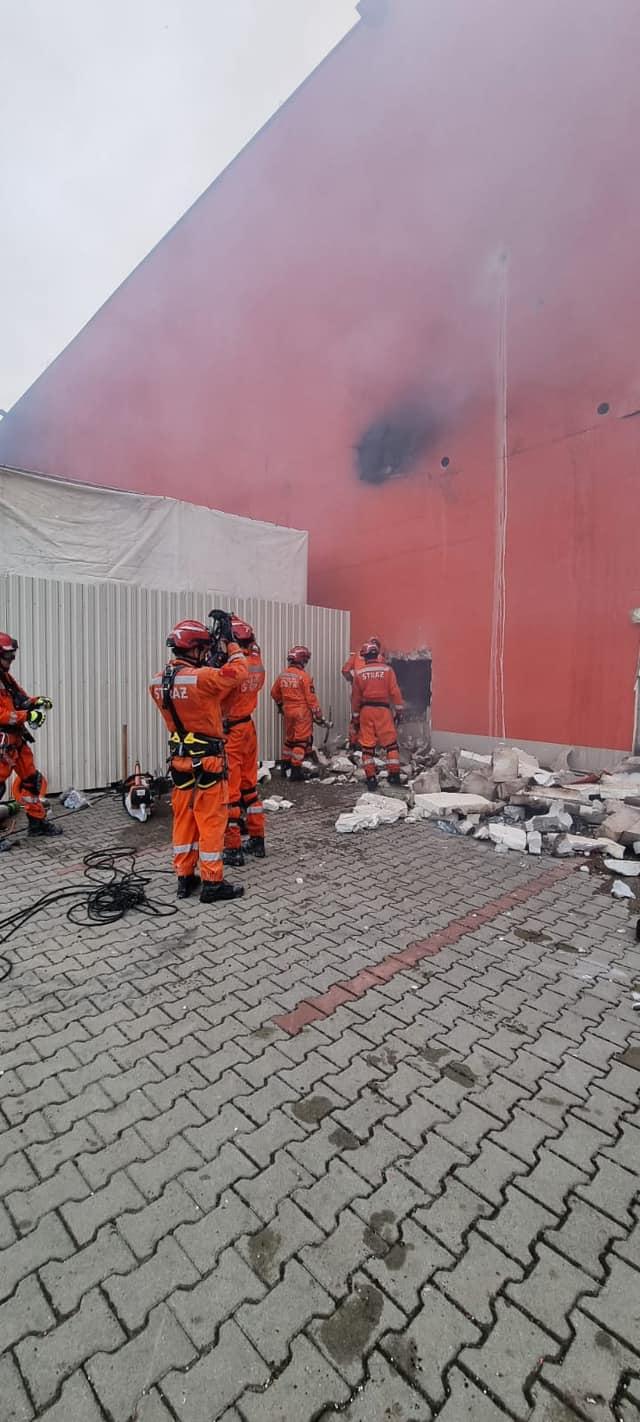 10 lipca br. Specjalistyczna Grupa Poszukiwawczo Ratownicza Nowy Sącz została zadysponowana w wariancie technicznym do działań ratowniczych przy gaszeniu pożaru obiektu Merkury Market w Krośnie. Po przyjeździe na miejsce SGPR Nowy Sącz otrzymał zadanie wsparcia prowadzonych działań gaśniczych w zakresie wykonania otworów w ścianie objętego pożarem magazynu. Wykonane przebicia miały na celu poprawę wentylacji i odprowadzenia gazów pożarowych oraz umożliwienie korzystniejszego dostępu do palącej się przestrzeni dla rot gaśniczych. W działaniach uczestniczyło 14 ratowników SGPR Nowy Sącz (w tym 12 ratowników JRG nr 2 Nowy Sącz oraz 2 ratowników WSSGR SA PSP w Krakowie).