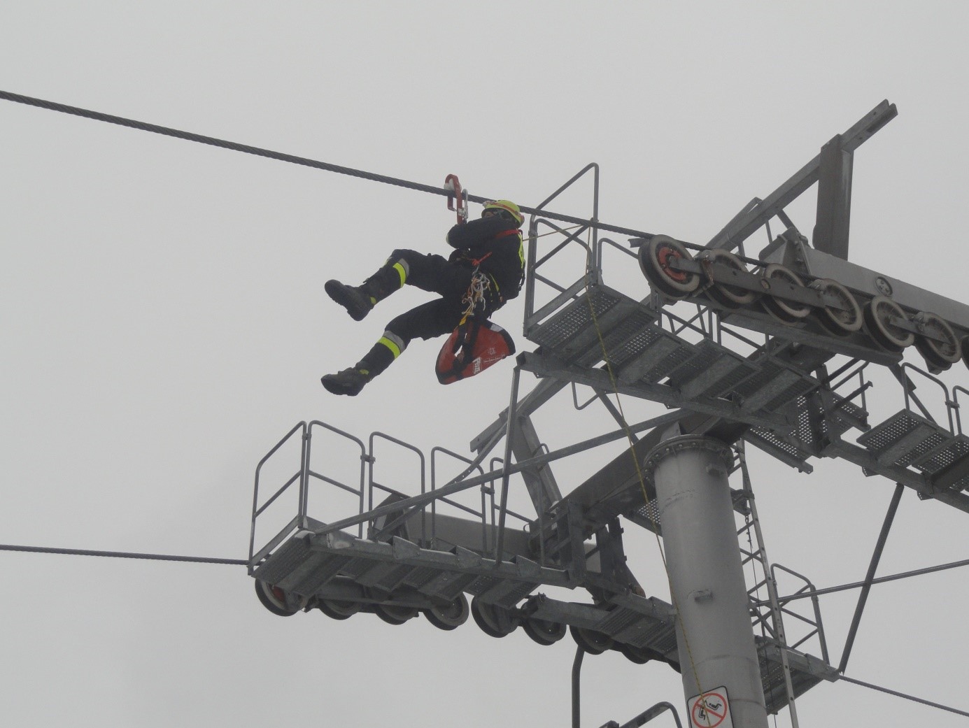 Na terenie chronionym przez JRG jest kilka stacji narciarskich, na których występują koleje linowe krzesełkowe i jedna kolej linowa gondolowa na Jaworzynę Krynicką. Ze względu na możliwość wystąpienia awaryjnego zatrzymania kolei linowej członkowie grupy ćwiczą ciągle wypracowane schematy prowadzenia akcji podczas wystąpienia awarii na kolei linowej. Praktyka realizowana jest na obiektach stacji narciarskich Jaworzyna Krynicka, Słotwiny Azoty czy Master-Ski.