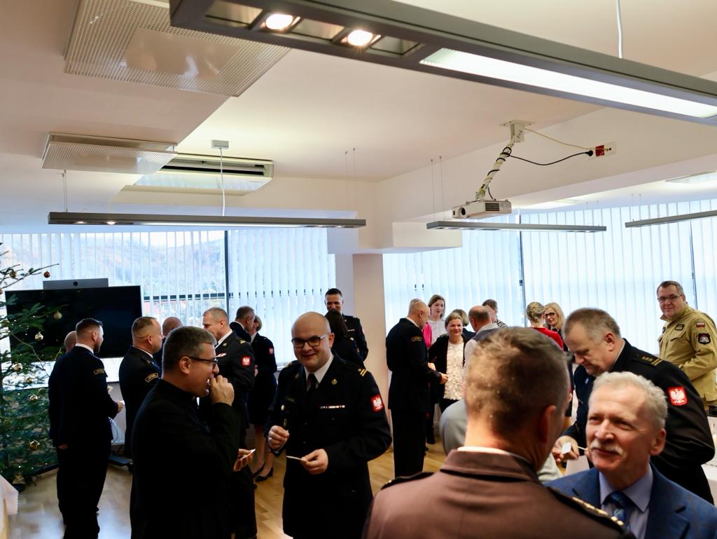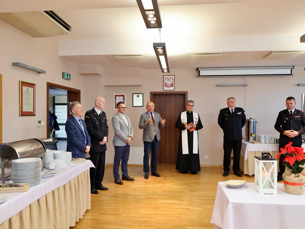 22 grudnia w Komendzie Miejskiej Państwowej Straży Pożarnej w Nowym Sączu odbyło się spotkanie wigilijne. W spotkaniu wigilijnym uczestniczyli strażacy i pracownicy cywilni Komendy. Wśród gości był m.in. st. bryg. Mariusz Łaciak - zastępca Małopolskiego Komendanta Wojewódzkiego Państwowej Straży Pożarnej w Krakowie, ks. dr Jerzy Jurkiewicz – prepozyt Kapituły Kolegiackiej w Nowym Sączu, starosta nowosądecki Marek Kwiatkowski i przewodniczący Rady Powiatu Roman Potoniec oraz Krzysztof Setlak – dyrektor Wydziału Zarządzania Kryzysowego Urzędu Miasta w Nowym Sączu. Podczas spotkanie było tradycyjne łamanie opłatkiem i życzenia. Przed rozpoczęciem spotkania opłatkowego Starosta Nowosądecki wręczył Komendantowi Miejskiemu PSP, kluczyki do nowego lekkiego samochodu operacyjnego KIA STONIC. Samochód zakupiony został za kwotę 100 000 złotych przekazaną z budżetu Powiatu Nowosądeckiego.