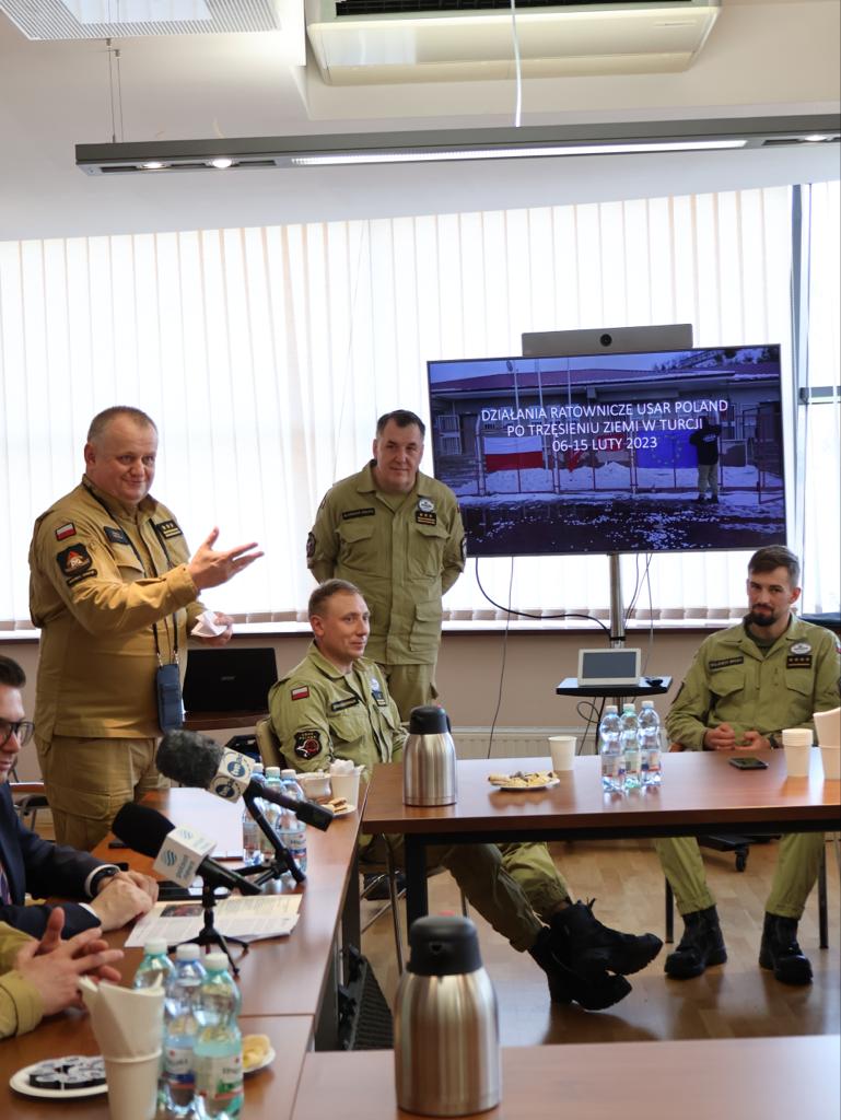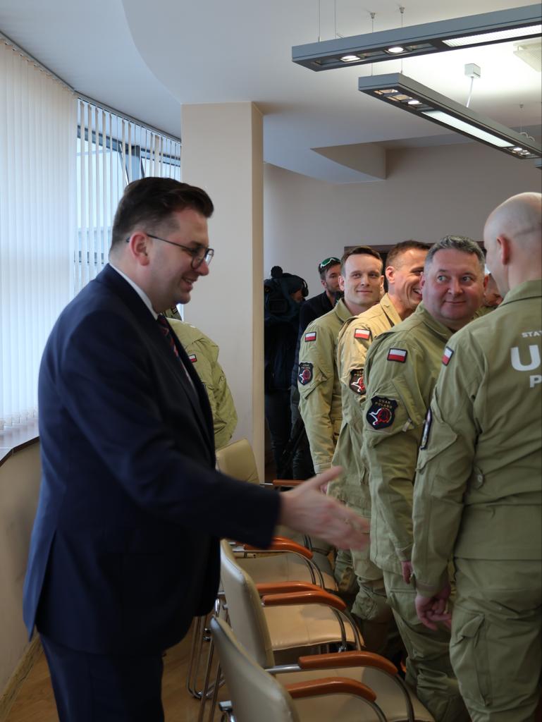 23 lutego w siedzibie Komendy Miejskiej PSP w Nowym Sączu odbyło się spotkanie Wojewody Małopolskiego Łukasza Kmity ze strażakami - ratownikami ze Specjalistycznej Grupy Poszukiwawczo - Ratowniczej, która weszła w skład Polskiej Ciężkiej Grupy Poszukiwawczo - Ratowniczej HUSAR i brała udział w akcji ratowniczej po trzęsieniu ziemi w Turcji. W spotkaniu wzięli udział, nadbryg. Piotr Filipek Małopolski Komendant Wojewódzki PSP, bryg. Marek Chwała Komendant Szkoły Aspirantów PSP w Krakowie oraz st. bryg. Paweł Motyka Komendant Miejski PSP w Nowym Sączu. Podczas spotkania padło wiele ciepłych słów pod adresem ratowników. Padały też deklaracje wsparcia działalności grupy poszukiwawczo-ratowniczej.