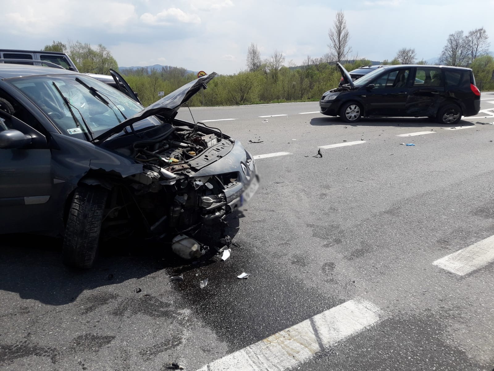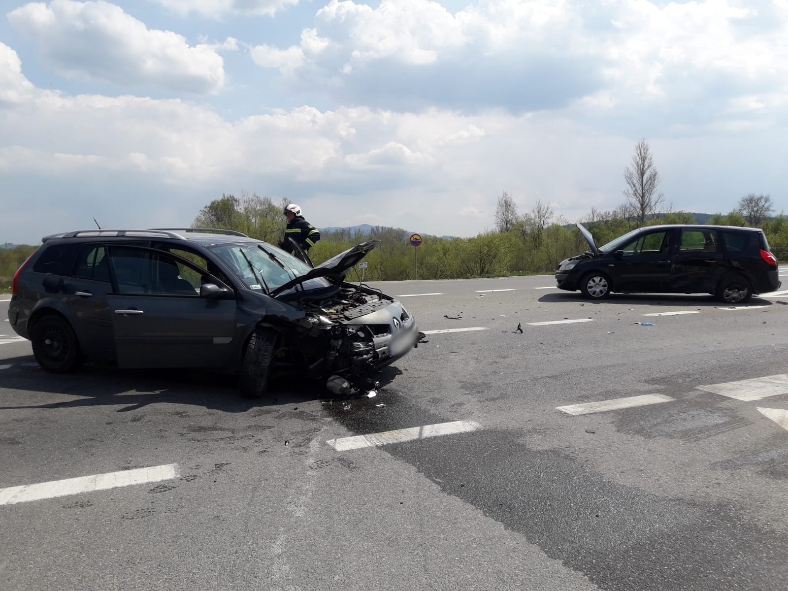 2 maja o godzinie 13.09 zastępy z JRG nr 2 w Nowym Sączu, OSP Stadła oraz OSP Podegrodzie zadysponowane zostały do działań w Stadłach. Po przybyciu na miejsce zdarzenia ustalono, że doszło do zderzenia dwóch samochodów osobowych Renault Megane i Renault Scenic. Jeden pas jezdni był zablokowany. Samochody znajdowały się na jezdni. Samochodami podróżowało łącznie osiem osób w tym dwójka dzieci. Wszystkie osoby opuściły pojazdy i znajdowały się na poboczu. Jedna osoba dorosła oraz dziecko zostały poszkodowane. Działania zastępów straży polegały na zabezpieczeniu miejsca zdarzenia oraz udzieleniu pomocy osobom poszkodowanym. Osoby poszkodowane zostały przekazane ratownikom medycznym Pogotowia ratunkowego. Dwie osoby zostały przetransportowane do szpitala. Dalsze działania zastępów straży polegały na odpięciu klem akumulatorów w Przemieszczono samochody na pobocze po zakończeniu czynności dochodzeniowych przez Policje. Dokonano sorpcji rozlanych płynów eksploatacyjnych. Usunięto elementy karoserii z jezdni. Działania strażaków trwały dwie i pół godziny.