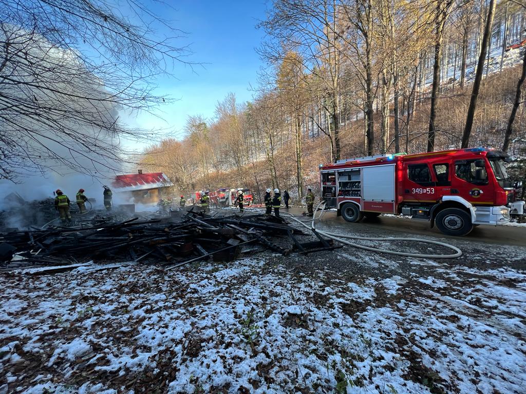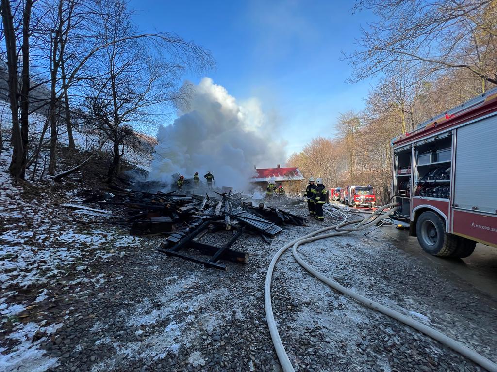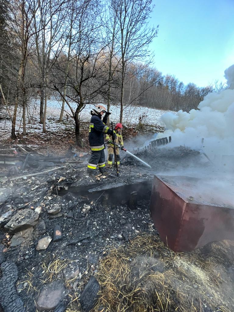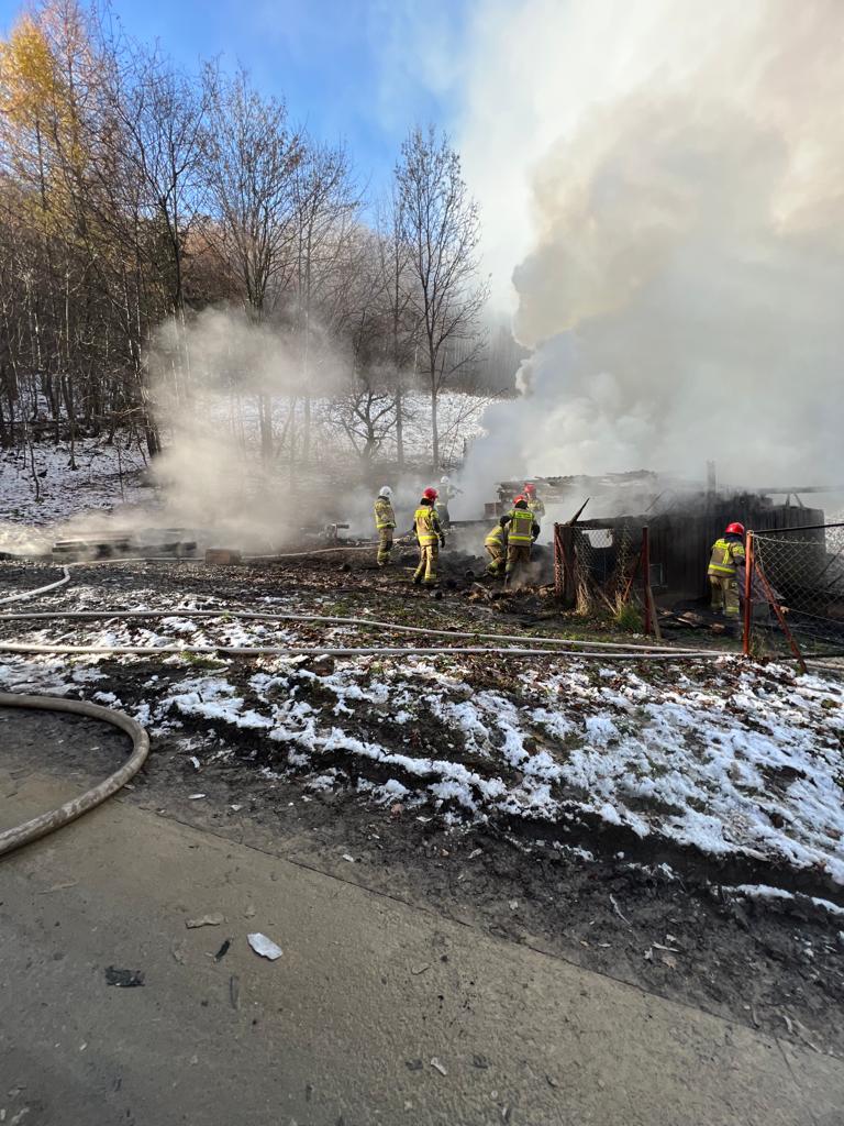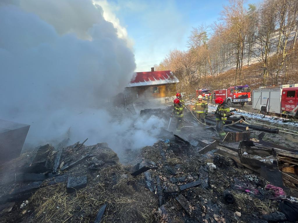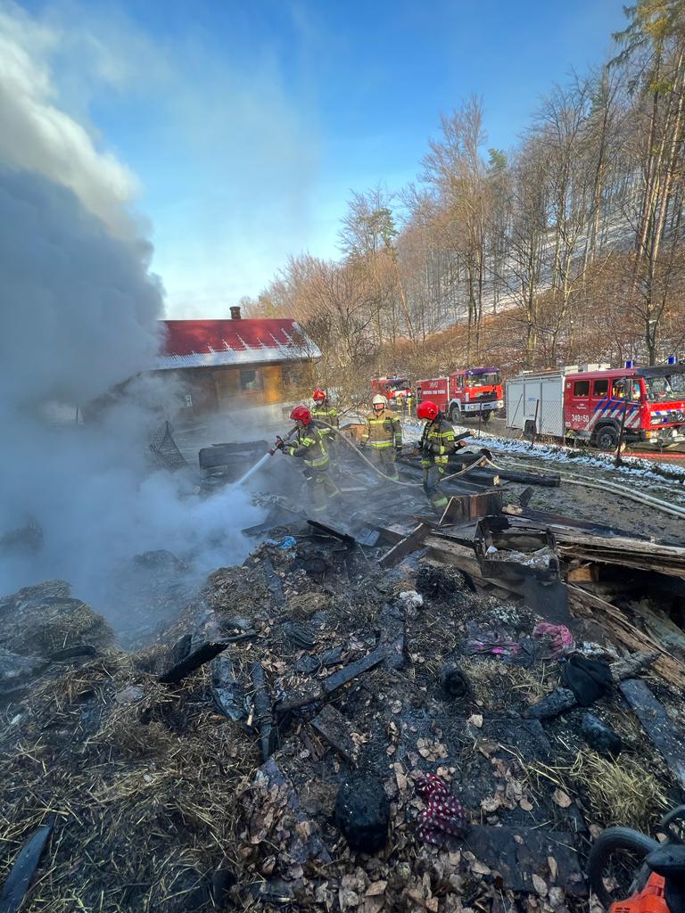 22 listopada o godzinie 11.05 zastępy z JRG nr 1 w Nowym Sączu, OSP Tęgoborze oraz OSP Łososina Dolna zadysponowane zostały do działań w Stańkowej. Po przybyciu na miejsce zdarzenia ustalono, że palił się drewniany budynek gospodarczy, który w całości był objęty pożarem. W budynku znajdowały się drobne maszyny rolnicze oraz drewno opałowe. Działania strażaków polegały na zabezpieczeniu miejsca zdarzenia oraz podaniu dwóch prądów gaśniczych na palący się budynek. Zbudowano zasilanie wodne do samochodów oraz zorganizowano dowożenie wody za pomocą cysterny będącej na miejscu zdarzenia. Wykonano prace rozbiórkowe spalonych elementów konstrukcji budynku oraz chłodzono je wodą. Pokryto pogorzelisko pianą średnią w celu schłodzenia elementów konstrukcji. Miejsce zdarzenia zostało pisemnie przekazane właścicielce obecnej na miejscu zdarzenia. Działania strażaków trwały trzy i poł godziny.