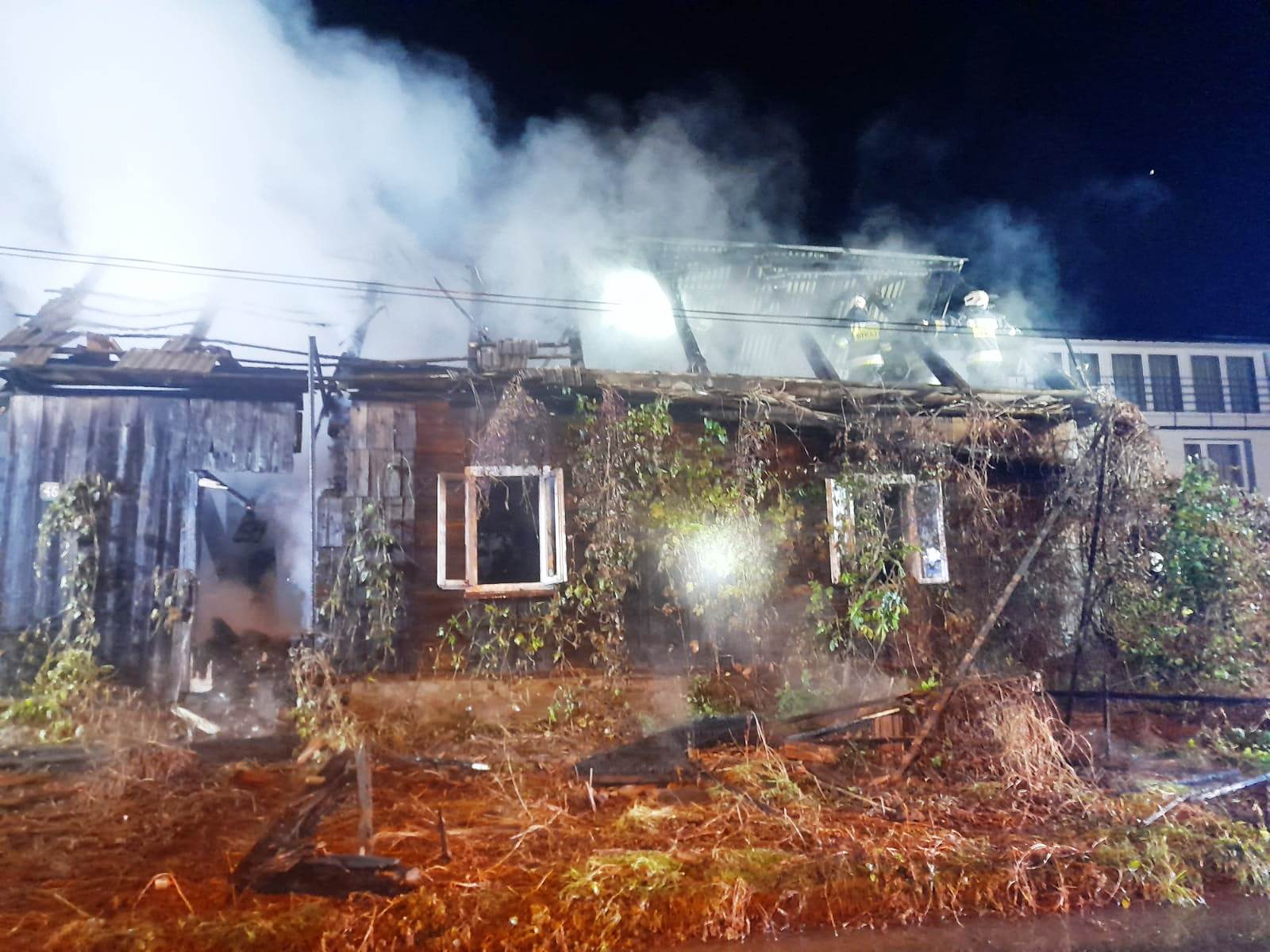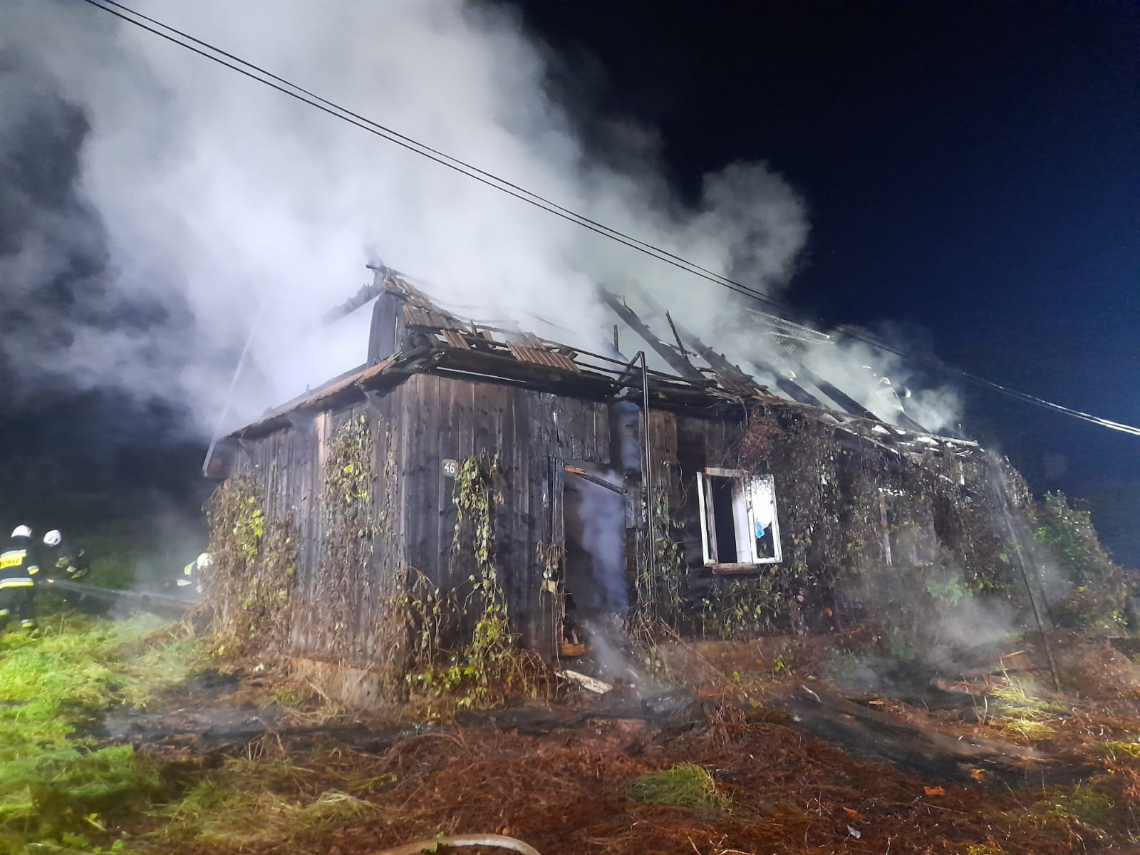 14 października o godzinie 18.56 dwa zastępy z JRG nr 2 w Nowym Sączu oraz pięć zastępów OSP zadysponowane zostały do działań w Starym Sączu na ulicę Partyzantów. Po przybyciu na miejsce zdarzenia ustalono, że pożarem w całości objęty był budynek mieszkalny (pustostan) o konstrukcji drewnianej. Z uzyskanych informacji wynikało, że w pomieszczeniu mogła znajdować się jedna osoba. Działania zastępów straży polegały na zabezpieczeniu miejsca zdarzenia oraz podaniu dwóch prądów wody w natarciu. Do wnętrza budynku wprowadzono dwóch strażaków w sprzęcie ochrony dróg oddechowych. Tereń działań został w całości oświetlony. Po dalszym rozpoznaniu stwierdzono, że część dachu uległa zawaleniu a pozostałości wraz z dachówkami wpadły do środka. W czasie działań dokonano szczegółowego przeszukania całego budynku, nie stwierdzono obecności osób w środku. Na budynku znajdował się drewniany nadpalony strop. Wewnątrz znajdowały się żarzące elementy, które były stopniowo wyrzucane i przelewane wodą. Po ugaszeniu pożaru przy użyciu drabiny przenośnej oraz pilarki do drewna usunięto w całości dach oraz część konstrukcji budynku. Punkt czerpania wody stanowił pobliski hydrant. Po ugaszeniu pożaru pogorzelisko oraz budynek drewniany sprawdzono przy użyciu kamery termowizyjnej. Nie stwierdzono zagrożenia. Działania strażaków trwały godzinę i czterdzieści pięć minut. Przyczyna pożaru jest nieustalona.