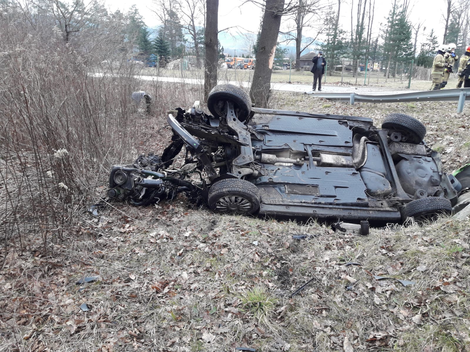 W niedzielę 14 marca około godziny 9.07 zastępy z JRG nr 2 w Nowym Sączu oraz OSP Stary Sącz zadysponowane zostały do działań w Starym Sączu na ulicę Piaski. Po przybyciu na miejsce zdarzenia ustalono, że doszło do dachowania pojazdu marki Seat Ibiza. W chwili przybycia zastępów Straży Pożarnej samochód osobowy znajdował się na dachu w rowie. Pojazdem podróżował sam kierujący, który wydostał się z samochodu przed przybyciem zastępów straży i został poszkodowany. Działania strażaków polegały na zabezpieczeniu miejsca zdarzenia, udzieleniu kwalifikowanej pierwszej pomocy poszkodowanemu mężczyźnie oraz sorpcji rozlanych płynów eksploatacyjnych. Z uwagi na całkowite zniszczenie przedniej części pojazdu akumulator znajdował się poza pojazdem. Na miejsce zdarzenia przybył patrol Policji oraz karetka Pogotowia ratunkowego, której załodze został przekazany poszkodowany. Poszkodowany został przetransportowany do szpitala. Uprzątnięto pozostałości powypadkowe z jezdni. Na miejscu zdarzenia pozostali funkcjonariusze Policji prowadząc dalsze czynności wyjaśniające okoliczności zdarzenia oraz zastęp z OSP Stary Sącz.