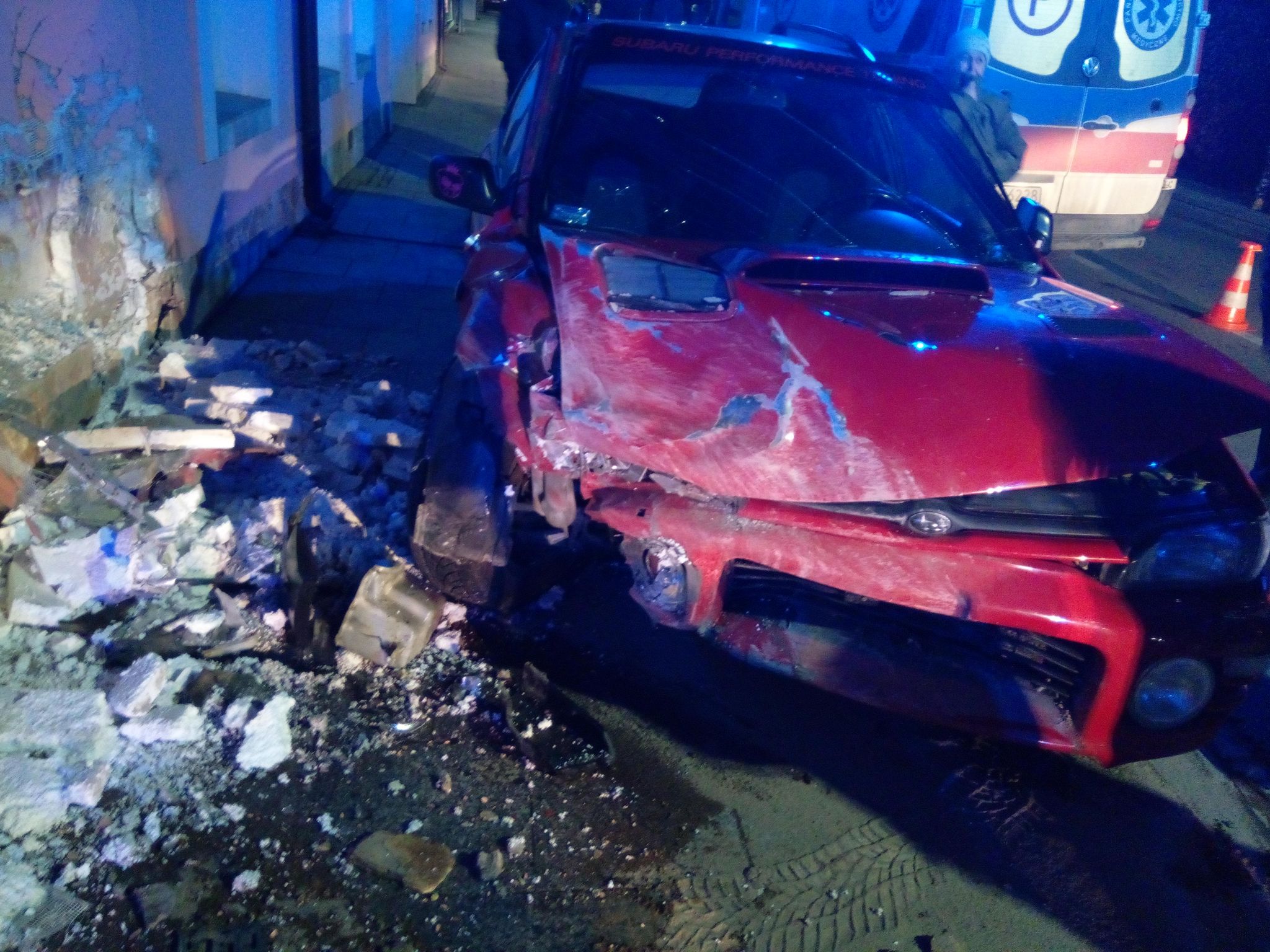 5 grudnia o godzinie 17.55 zastępy z JRG nr 2 w Nowym Sączu oraz OSP Stary Sącz zadysponowane zostały do działań w Starym Sączu. Po przybyciu na miejsce zdarzenia ustalono, że samochód osobowy uderzył w ścianę budynku mieszkalnego. W pojeździe podróżowały dwie osoby. Żadna z nich nie skarżyła się na jakiekolwiek dolegliwości. Pojazd blokował jeden pas jezdni. Ściana budynku została uszkodzona w warstwie elewacyjnej. Działania strażaków polegały na zabezpieczeniu miejsce zdarzenia oraz sprawdzono stan osób jadących samochodem. Odłączono akumulator w pojeździe. Zamknięto zawór instalacji gazowej znajdującej się w pojeździe. Wprowadzono i kierowano ruchem pojazdów w sposób wahadłowy. Usunięto pojazd oraz pozostałości powypadkowe na pobocze. Działania strażaków trwały czterdzieści minut.