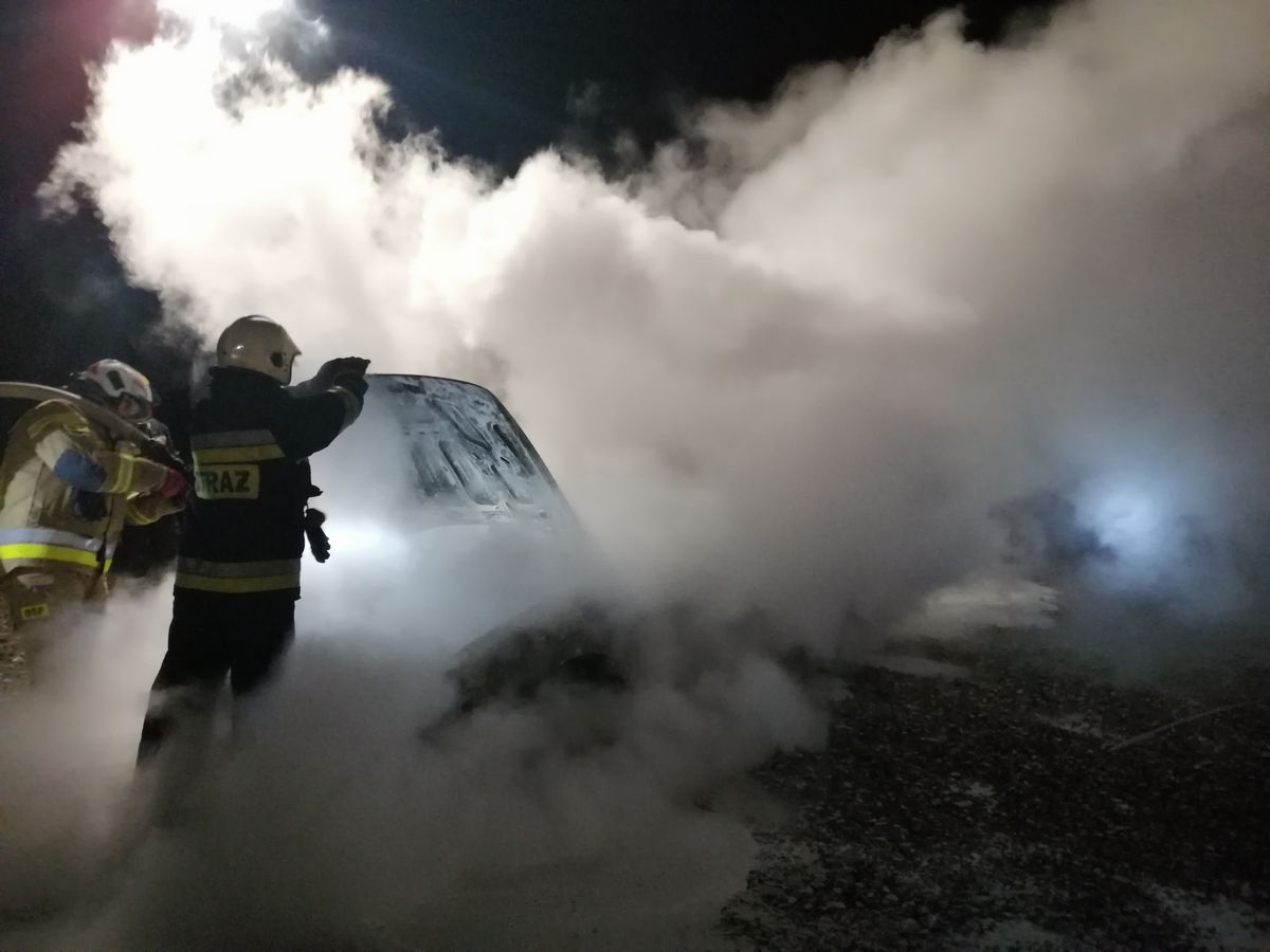 Stary Sącz, ul. Wyszyńskiego - pożar samochodu osobowego