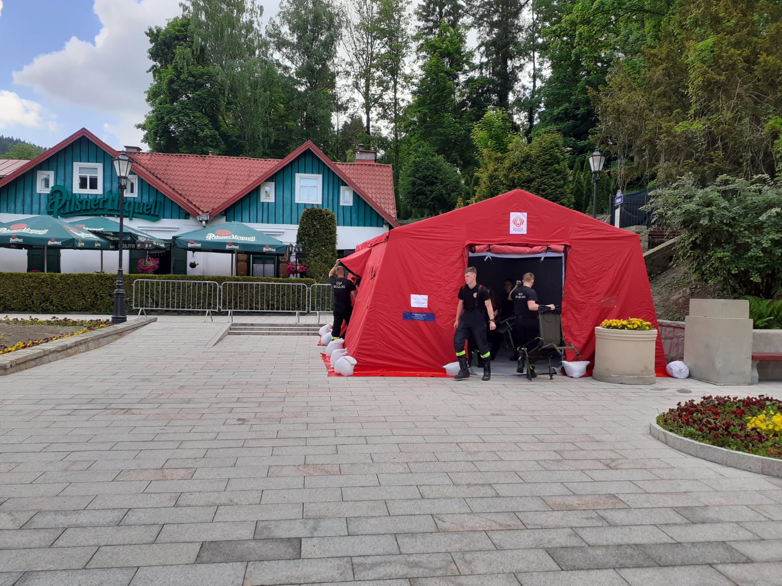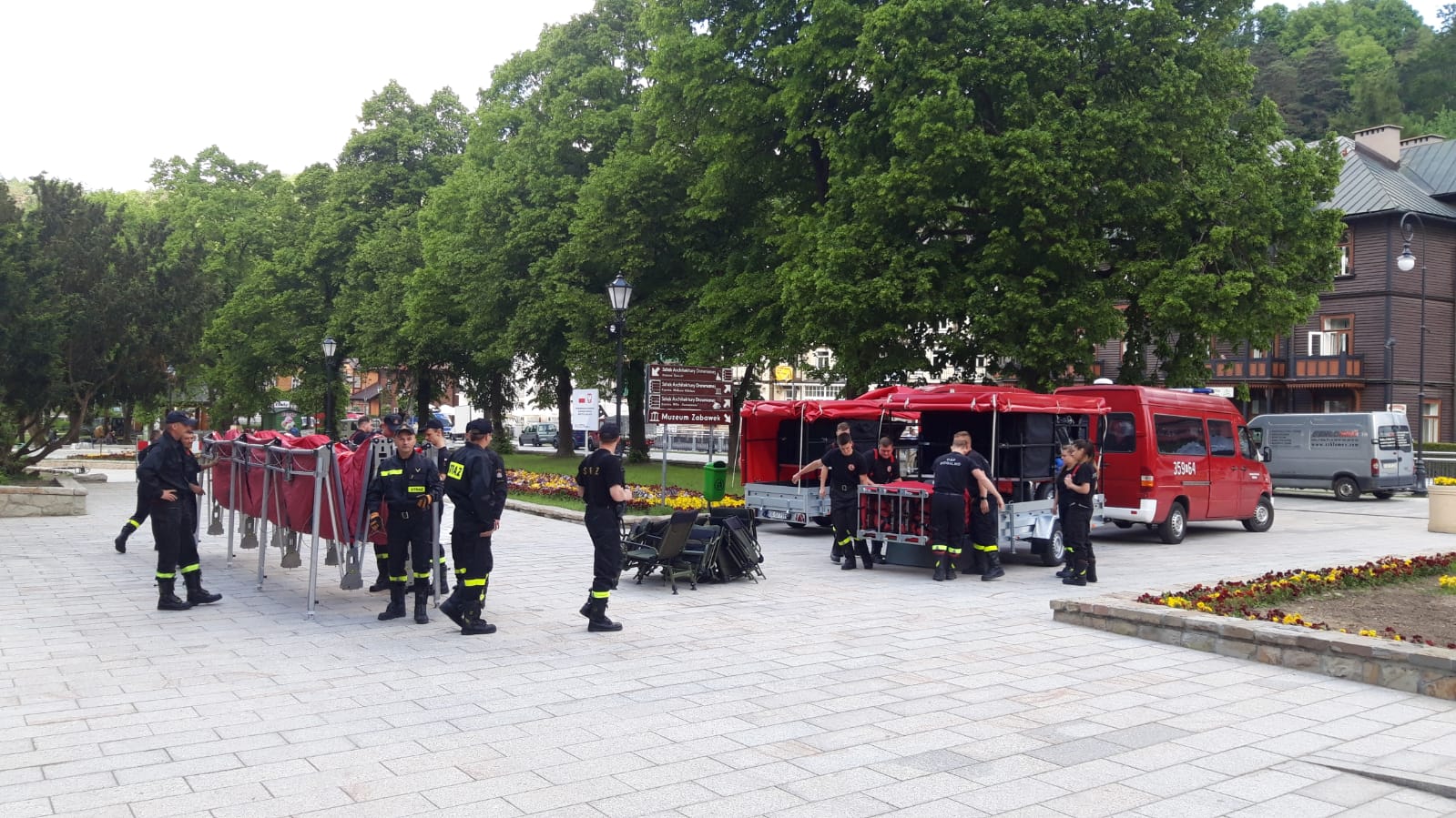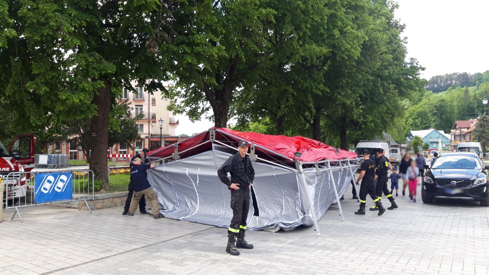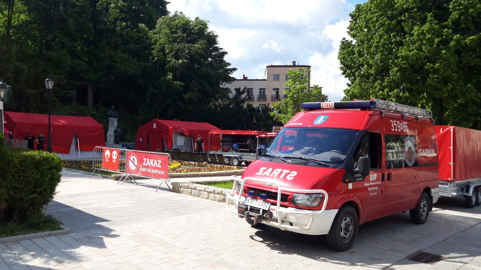 Od godzin porannych 11 czerwca strażacy PSP i OSP powiatu nowosądeckiego rozpoczęli budowę mobilnego punktu szczepień przeciwko Covid-19 na Krynickim deptaku przy pomniku Adama Mickiewicza. Szczepienia będą prowadzone w dniach 12-13 czerwca br. Akcji szczepień będą towarzyszyły pokazy zorganizowane przez służby. Na deptaku będą zaprezentowany zakres ratownictwa wysokościowego oraz działań poszukiwawczo ratowniczych (psy ratownicze), pokazy samochodów oraz sprzętu znajdującego się na wyposażeniu. Przypominamy również, aby móc się zaszczepić wystarczy przyjść z dowodem osobistym do punktu. Ponadto, strażacy będą zabezpieczać akcje szczepień pod kątem ochrony przeciwpożarowej.