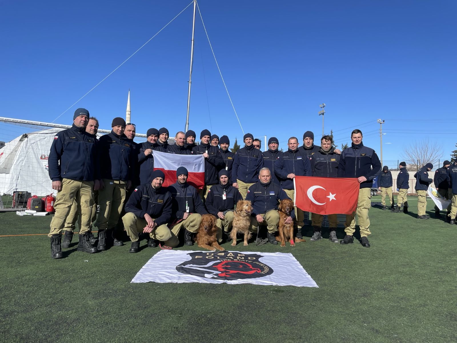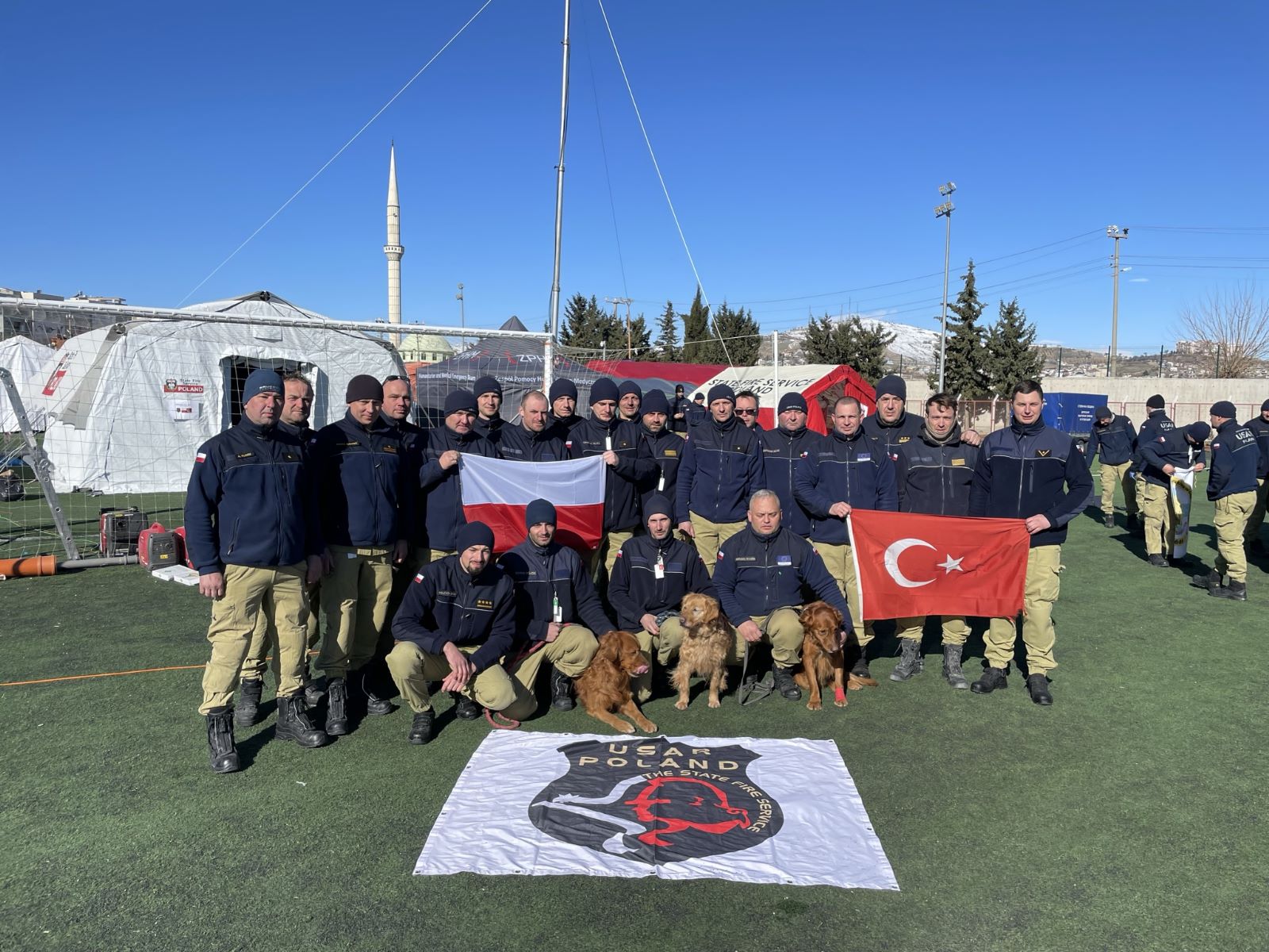 15 lutego 2023 roku w godzinach popołudniowych strażacy z ciężkiej grupy poszukiwawczo – ratowniczej biorący udział w działaniach ratowniczych po trzęsieniu ziemi w Turcji powrócili do kraju. Na terenie Wojskowego Portu Lotniczego w Warszawie odbyło się uroczyste powitanie 76 strażaków ratowników z 8 psami ratowniczymi, medyków i ratowników górniczych. Wszyscy ratownicy zostali powitani przez ministra SWiA Pana Mariusza Kamińskiego, podsekretarza stanu w MSWiA Pana Bartosza Grodeckiego, zastępcę szefa BBN gen. bryg. rez. Mirosława Wiklika oraz komendanta głównego Państwowej Straży Pożarnej gen. brygadiera Andrzeja Bartkowiaka wraz z zastępcami. W grupie strażaków uczestniczących w działaniach ratowniczych w Turcji było 21 strażaków ze Specjalistycznej Grupy Poszukiwawczo-Ratowniczej „Nowy Sącz” wraz z trzema psami.