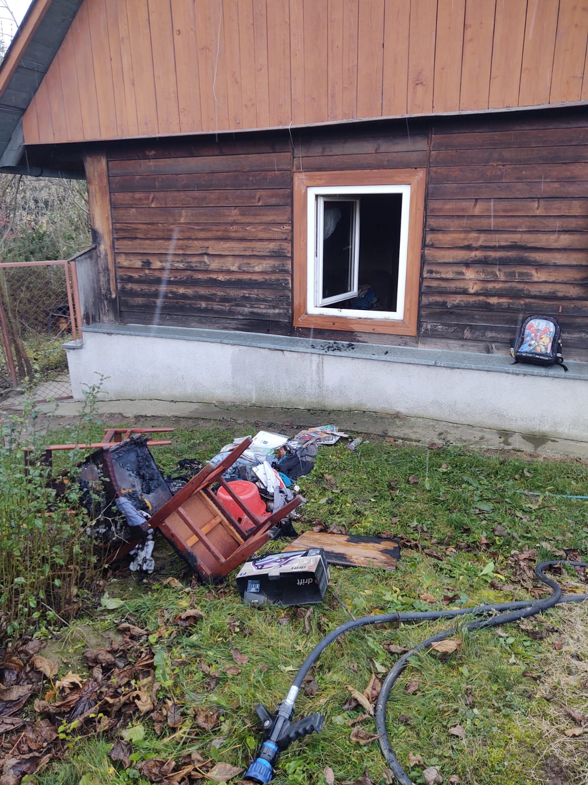 20 listopada około godziny 13.31 zastępy z JRG nr 1 w Nowym Sączu, OSP Stróże, Biała Niżna, Grybów, Polna i Wyskitna zadysponowane zostały do działań w Stróżach. Po przybyciu na miejsce zdarzenia ustalono, że doszło do pożaru ściany w jednym z pomieszczeń drewnianego domu jednorodzinnego. W chwili powstania pożaru w domu przebywały trzy osoby tj. jedna osoba dorosła oraz dwoje dzieci. Właścicielka domu oczekując na przyjazd służb ratowniczych podjęła próbę ugaszenia palącej się ściany. Miała ona widoczne okopcenia twarzy. Dzieci zostały ewakuowane przez matkę na zewnątrz i nie uskarżały się na żadne dolegliwości. Działania strażaków polegały na zabezpieczeniu miejsca zdarzenia, odłączeniu prąda w budynku oraz podaniu jednego prądu gaśniczego do wnętrza budynku w celu dogaszenia palącej się ściany. Oczekując na przyjazd karetki Pogotowia Ratunkowego, udzielono wsparcia psychicznego osobie poszkodowanej. Odsunięto meble oraz wyposażenie wnętrza od uszkodzonej ściany. Dokonano kontroli stropu kamerą termowizyjną. Dalsze czynności polegały na zamknięciu zaworu gazu ziemnego w skrzynce znajdującej się na ścianie budynku oraz sprawdzeniu kamerą termowizyjną ścian pomieszczenia w którym powstał pożar. Zerwano część paneli ściennych w celu wykluczenia ewentualnych zarzewi ognia. Sprawdzono pomieszczenia budynku miernikiem wielogazowym. Kobieta po przebadaniu przez ratowników Pogotowia Ratunkowego pozostała na miejscu zdarzenia. Działania strażaków trwały około godziny.