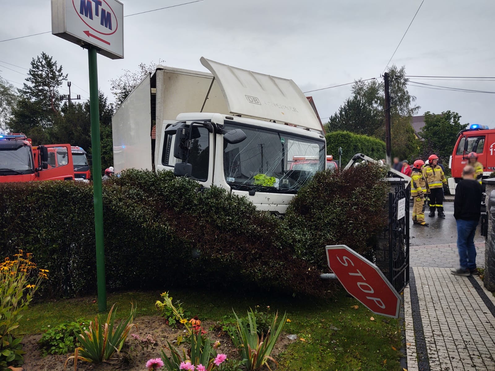 30 września o godzinie 14.15 zastępy z JRG nr 1 w Nowym Sączu, OSP Stróże, OSP Biała Niżna oraz OSP Grybów Biała zadysponowane zostały do działań w Stróżach. Po przybyciu na miejsce zdarzenia ustalono, że na skrzyżowaniu ulic doszło do zderzenia samochodu dostawczego marki VW i samochodu ciężarowego marki MAN. Następnie samochód ciężarowy uderzył przodem w część ogrodzenia prywatnej posesji znajdującej się przy ulicy. Droga wojewódzka nr 981 była całkowicie zablokowana przez uszkodzone pojazdy. Pojazdami podróżowali sami kierowcy, którzy byli zakleszczeni w pojazdach. W chwili przybycia zastępów straży, osoby poszkodowane były przytomne i znajdowały się na fotelach kierowców. Nastąpiły wycieki płynów eksploatacyjnych. Na miejsce zdarzenia równo ze strażakami przybyły karetki Pogotowia Ratunkowego, których ratownicy zajęli się osobami poszkodowanymi. Działania strażaków polegały na zabezpieczenie miejsca zdarzenia oraz wykonaniu dostępu do osób poszkodowanych w pojazdach. Do czynności tych wykorzystano narzędzia hydrauliczne. Dalsze działania polegały na pomocy ratownikom medycznym w transporcie poszkodowanych do karetek. Na miejsce przybyła policja, która przeprowadziła czynności dochodzeniowe na miejscu wypadku. Następnie usunięto z drogi pozostałości oraz rozlane płyny eksploatacyjne przy pomocy sorbentu uniwersalnego. Uszkodzone pojazdy z miejsca zdarzenia usunęła przybyła na miejsce pomoc drogowa.