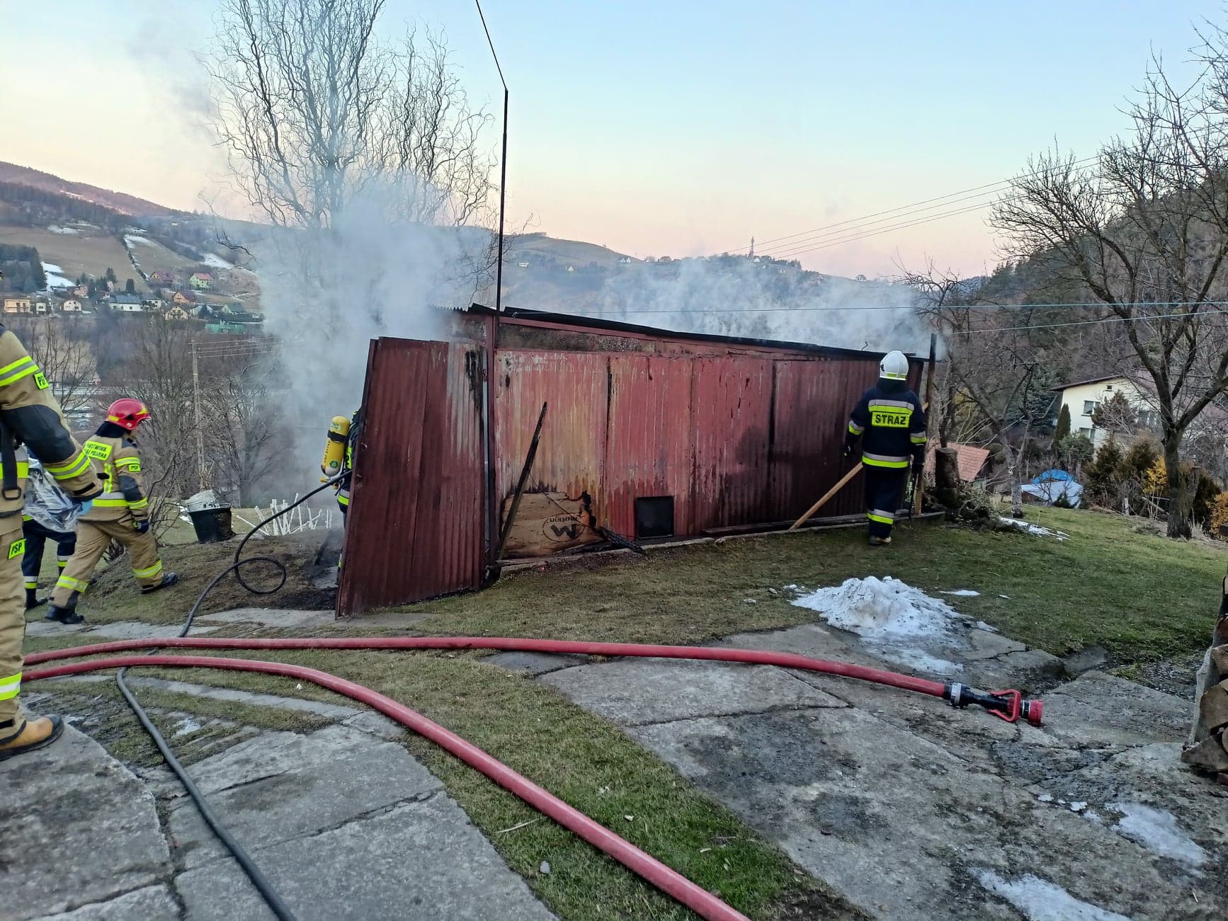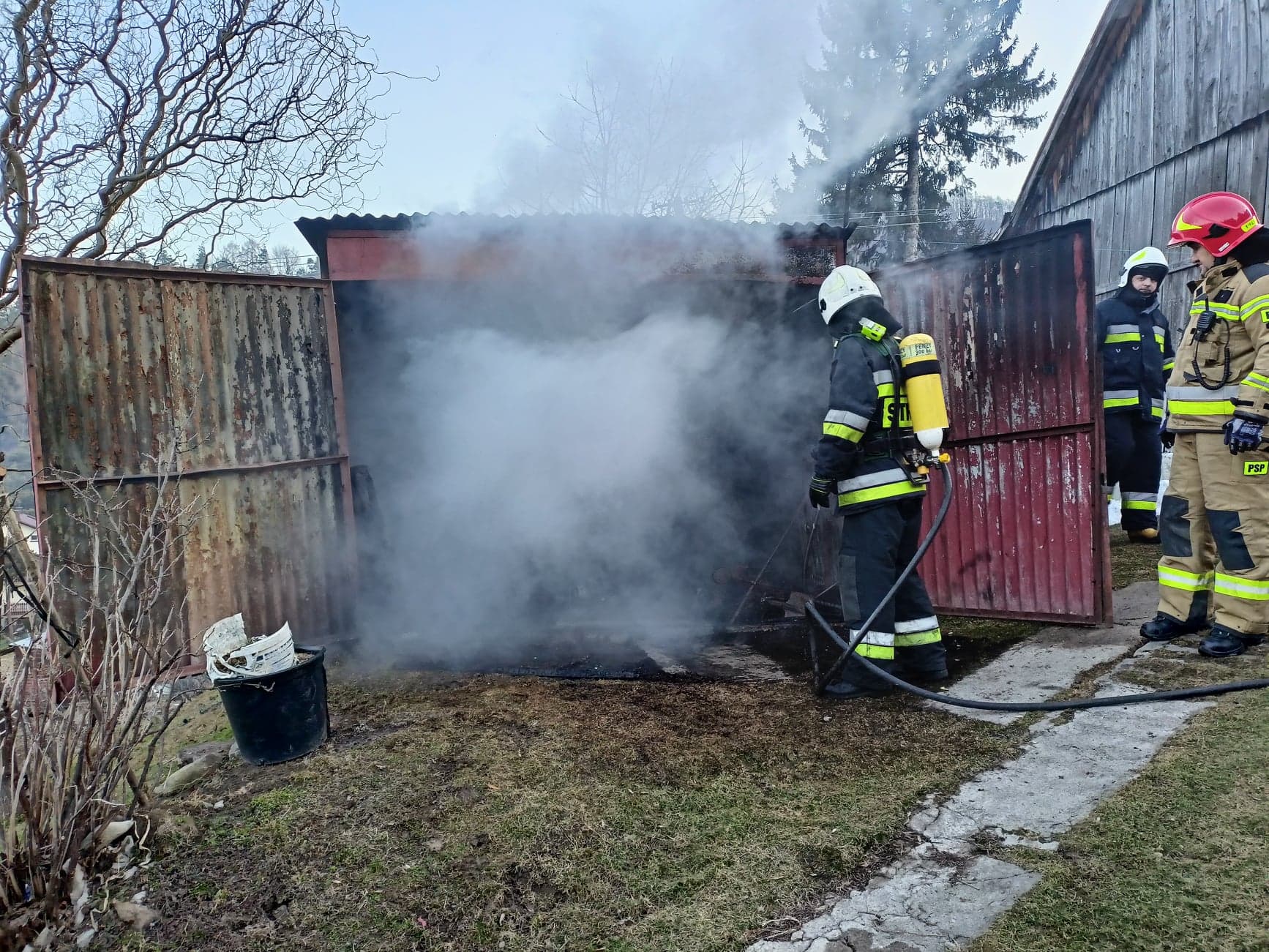 15 marca o godzinie 5.55 zastępy z JRG nr 2 w Nowym Sączu, OSP Rytro oraz OSP Głębokie zadysponowane zostały do działań w Suchej Strudze. Po przybyciu na miejsce zdarzenia ustalono, że palił się garaż blaszany, który był zlokalizowany blisko stodoły i budynku mieszkalnego. Działania strażaków polegały na zabezpieczeniu miejsca zdarzenia oraz podaniu dwóch prądów wody w natarciu na palący się garaż. Po ugaszeniu garażu rozebrano tylną ścianę w celu usunięcia spalonych elementów znajdujących się wewnątrz oraz ich przelaniu wodą. Sprawdzono obiekt kamerą termowizyjną, nie stwierdzając zagrożenia. Działania strażaków trwały półtorej godziny. Przyczyna pożaru jest nieustalona.