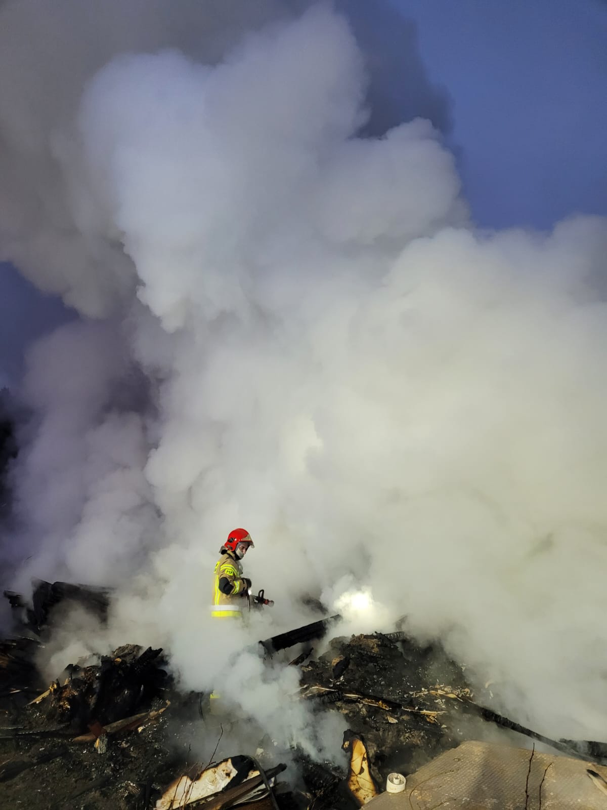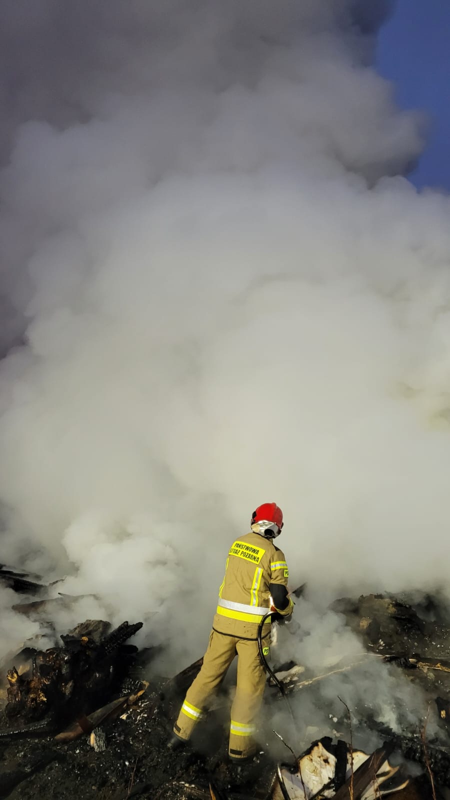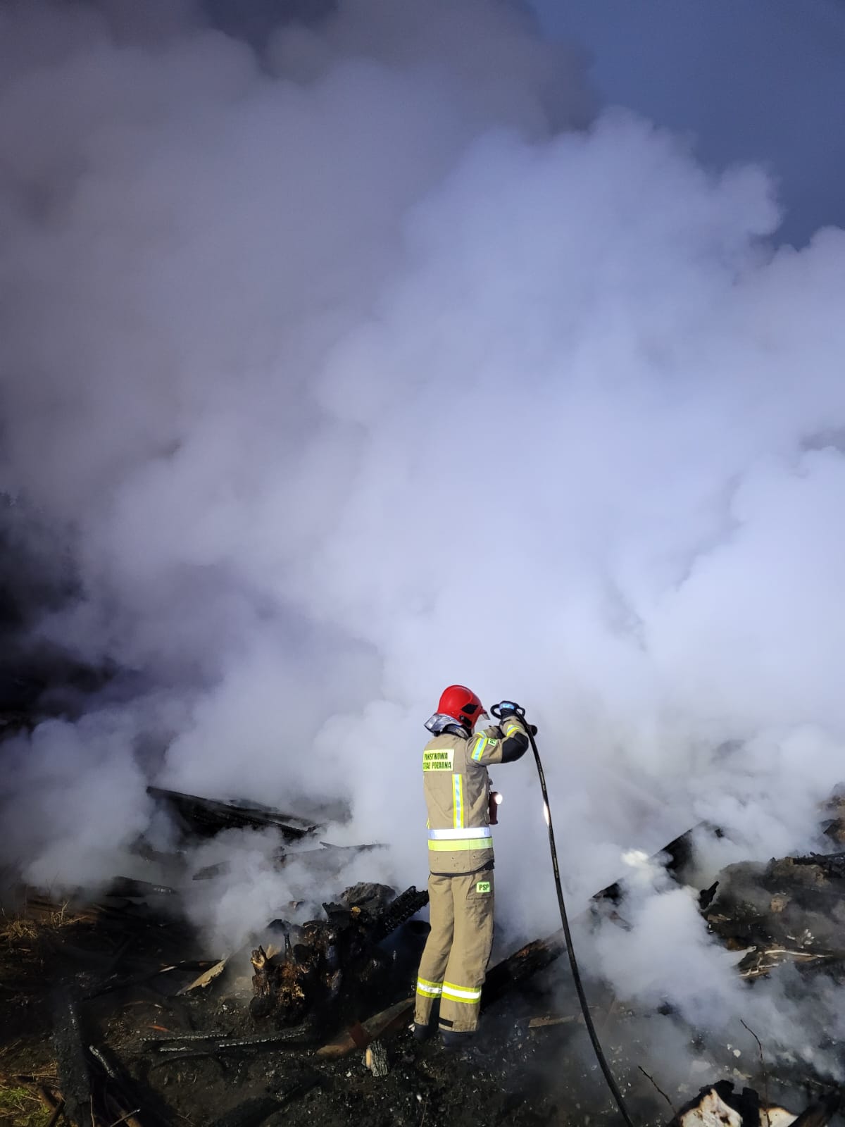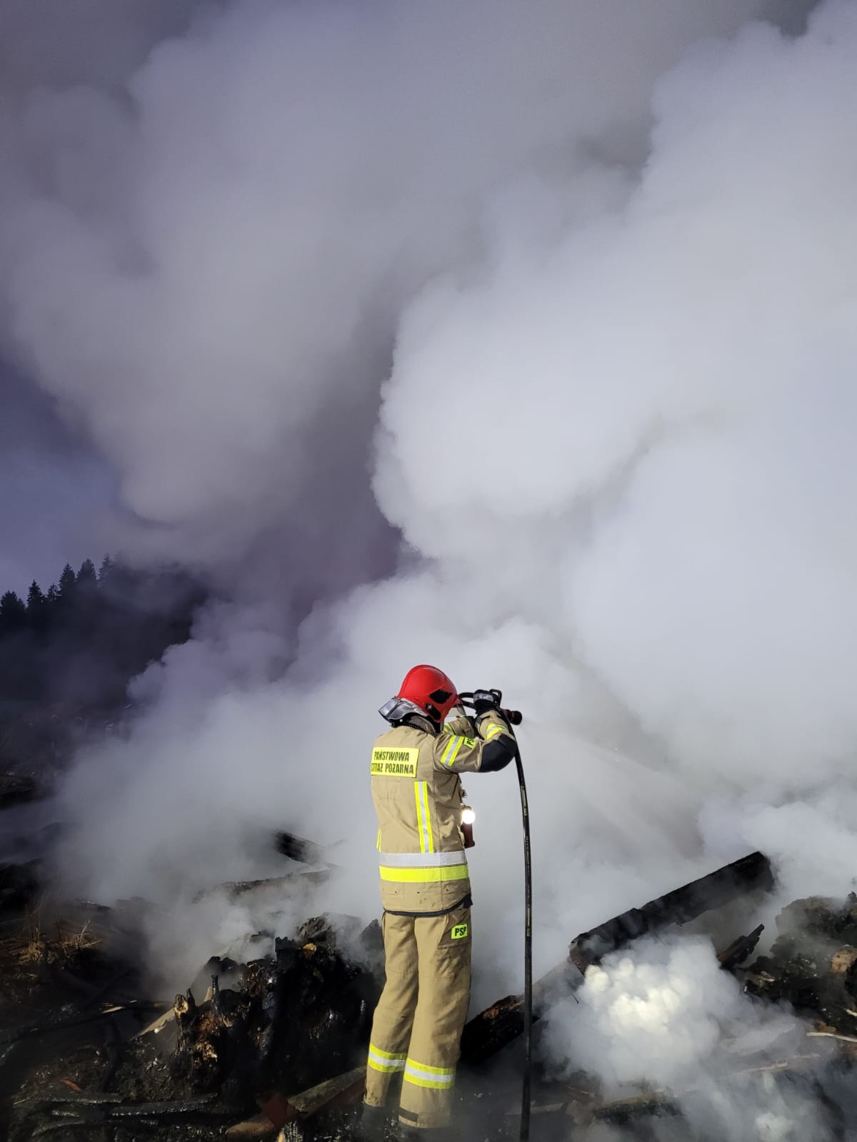 Szczawnik- pożar desek oraz pozostałości po budynku