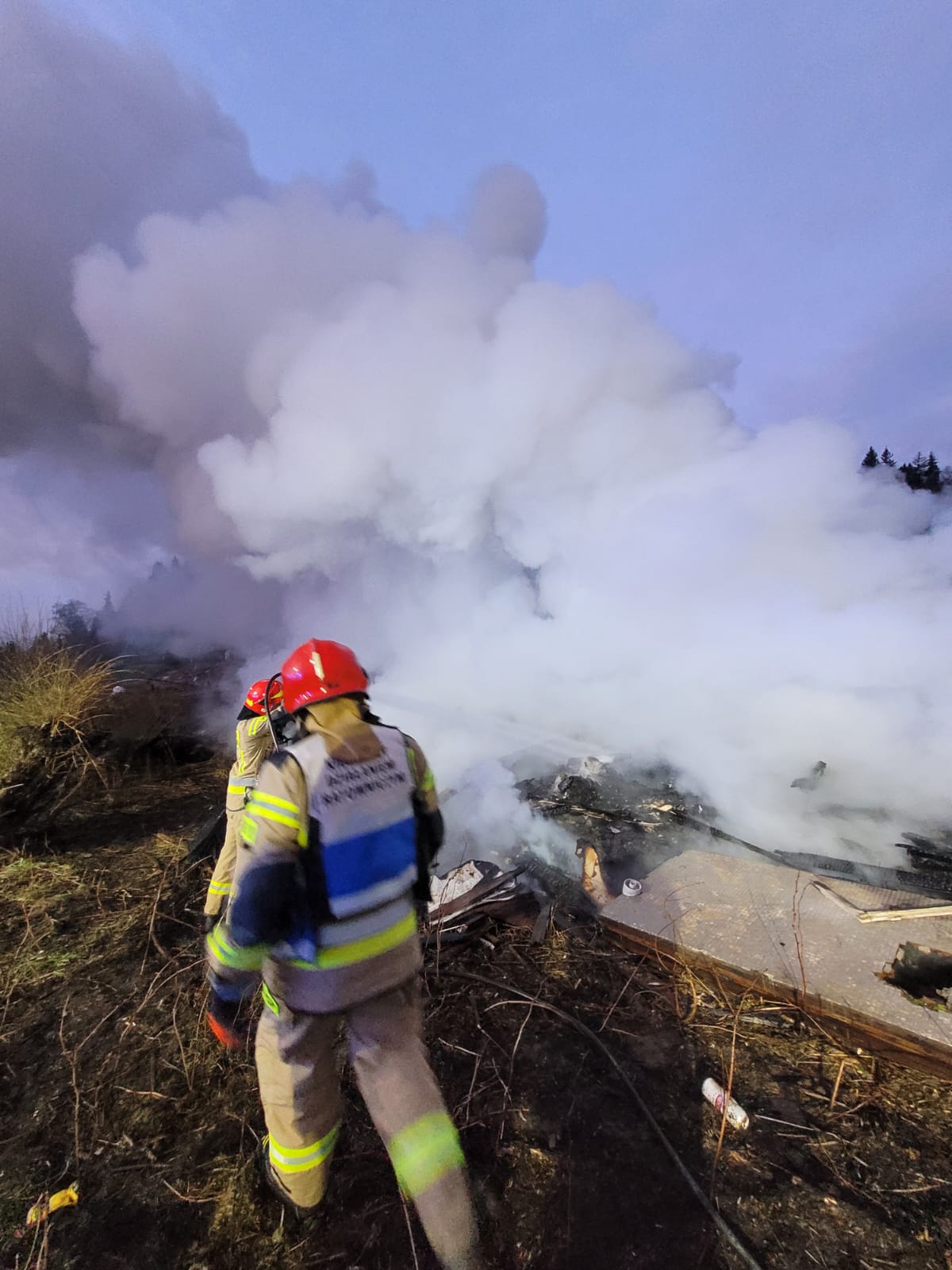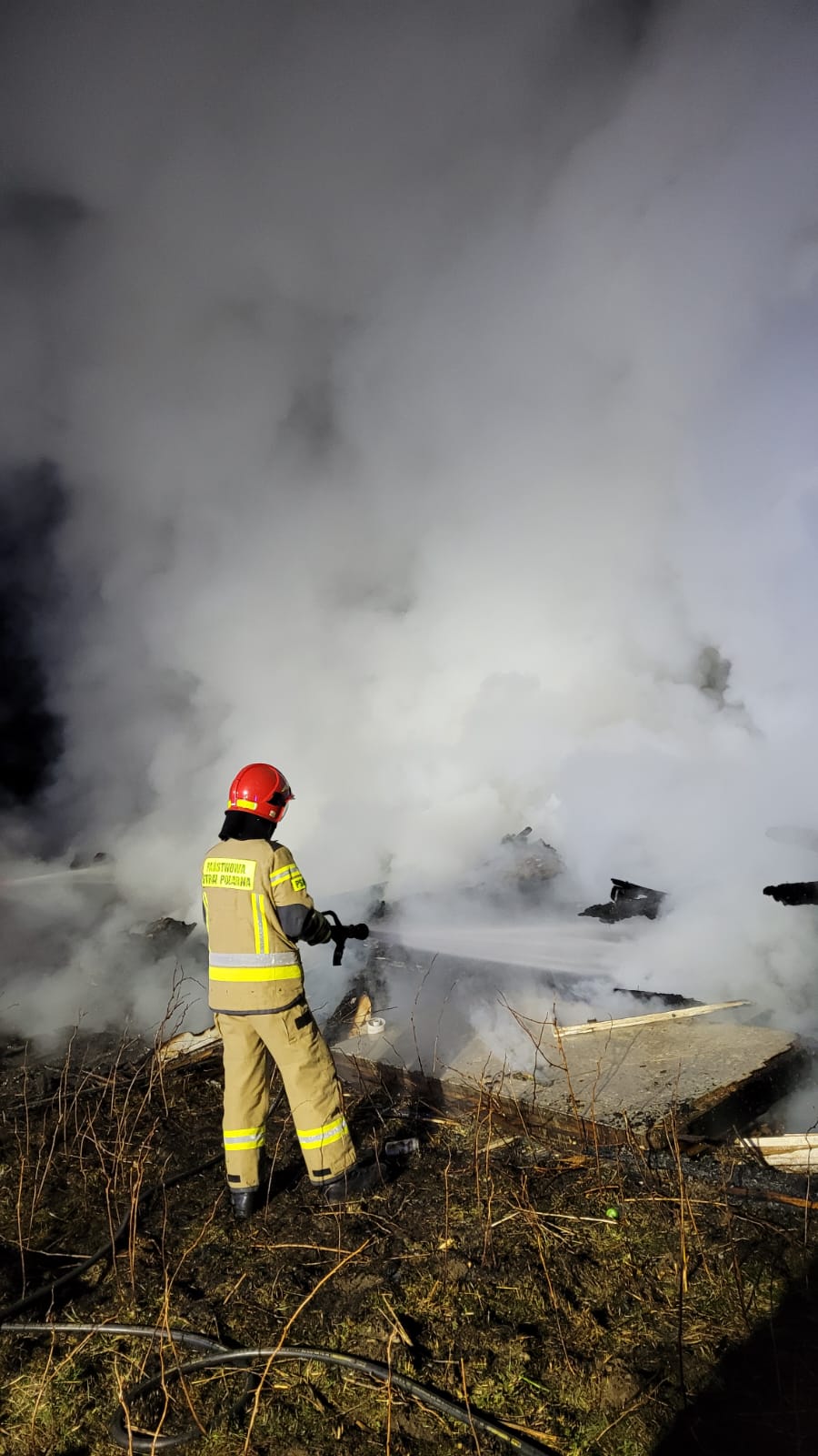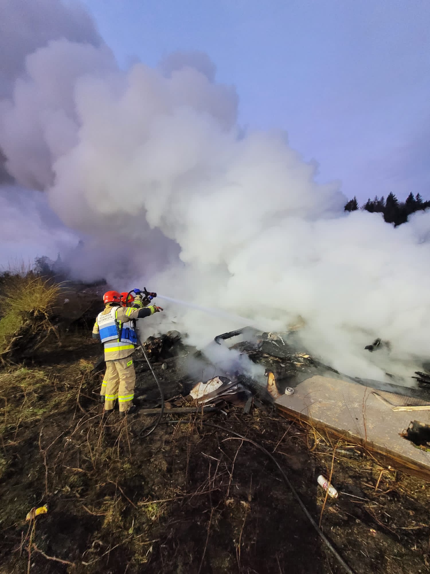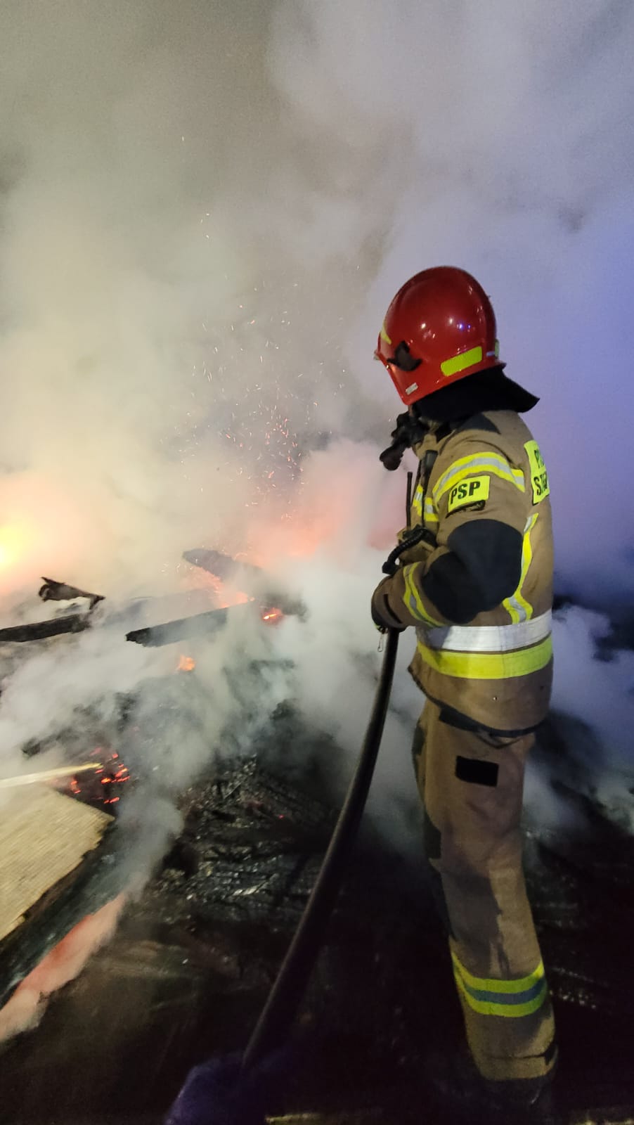 Szczawnik- pożar desek oraz pozostałości po budynku