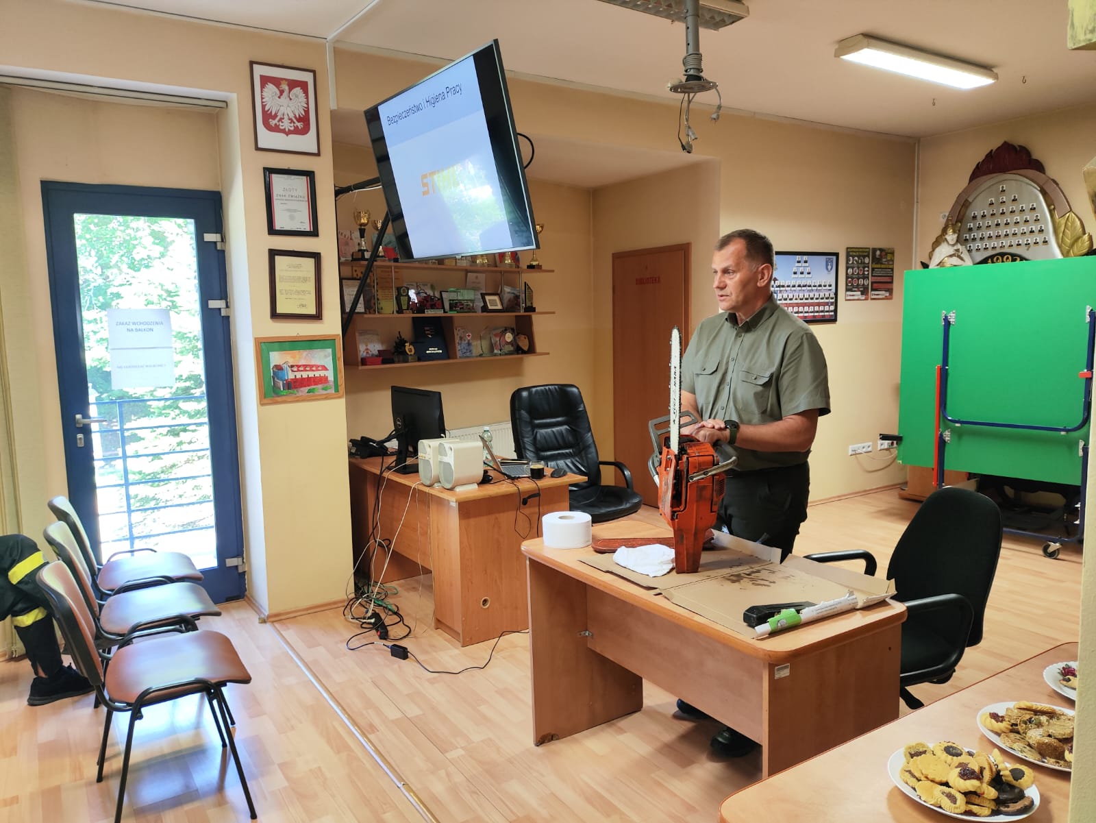 W dniu 24.06.2025 w siedzibie JRG Krynica-Zdrój odbyła się pierwsza część szkolenia doskonalącego z zakresu bezpiecznej obsługi i parametrów pracy łańcuchowych pilarek spalinowych do cięcia drewna. Szkolenie poprowadził mgr inż. Paweł Szczygieł - dyrektor Leśnego Zakładu Doświadczalnego w Krynicy Zdrój. W szkoleniu uczestniczyli również GOPR Grupa Krynicka. Poruszo tematykę technik ścinania drzew, postępowania z drzewami zawieszonymi, okrzesywania i przecinki drzew obalonych w zależności od sposobu podparcia.
