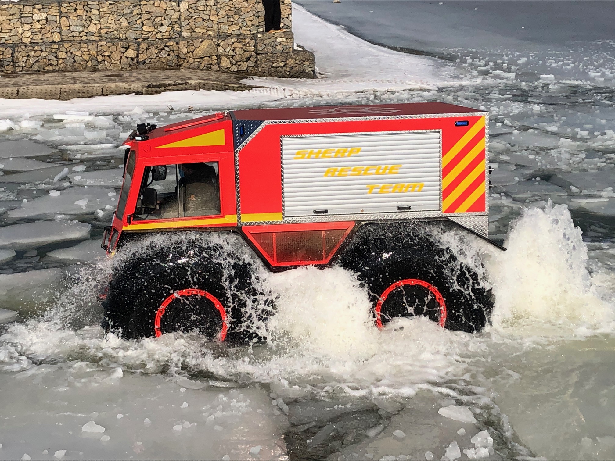 Pojazd specjalny ATV marki SHERP porusza się po każdym rodzaju podłoża – bez trudu pokonuje skały, bagna, piaski, głęboki śnieg, jeździ po lodzie, doskonale pływa na głębokiej wodzie, łatwo pokonuje głazy, zwalone drzewa i inne przeszkody do wysokości 70 cm. Dociera tam, gdzie żaden inny pojazd nie jest w stanie dotrzeć. Charakteryzuje się łatwością obsługi, wysokim poziomem bezawaryjności i niskimi kosztami eksploatacji. Został stworzony do działania w najtrudniejszych warunkach klimatycznych, w każdym rodzaju terenu. Przeznaczony jest dla wszystkich, którzy potrzebują docierać i pracować w trudno dostępnych terenach.