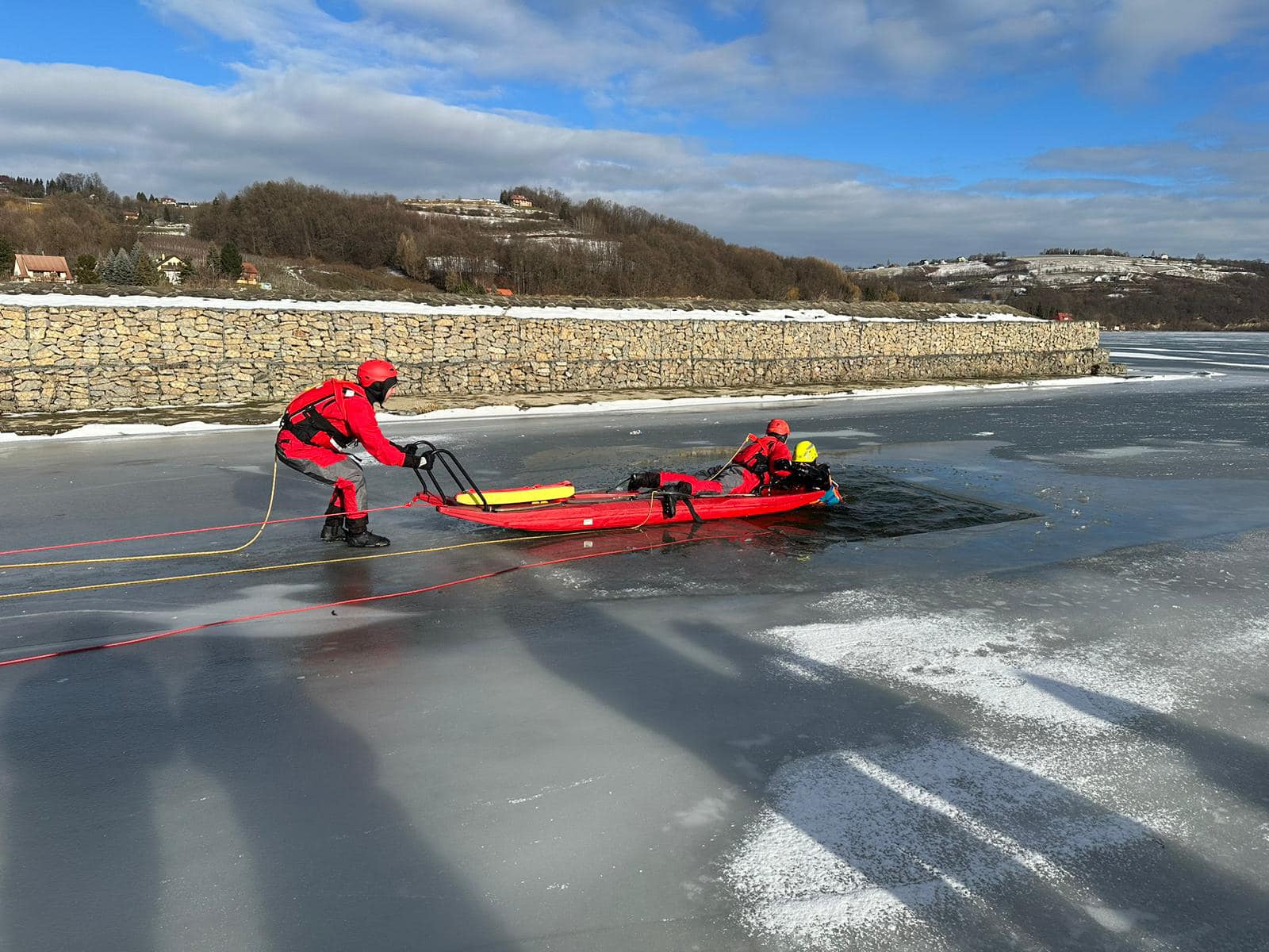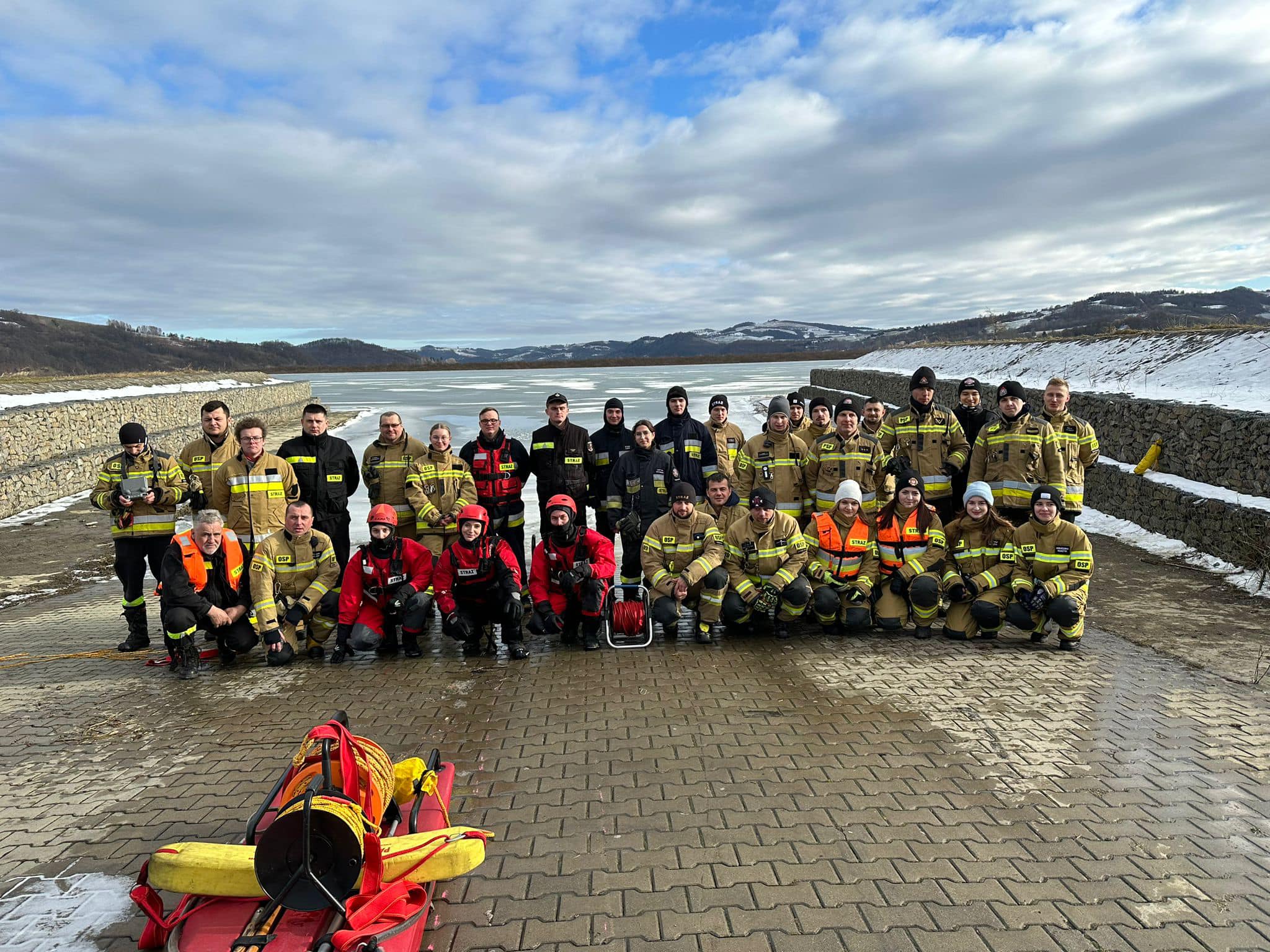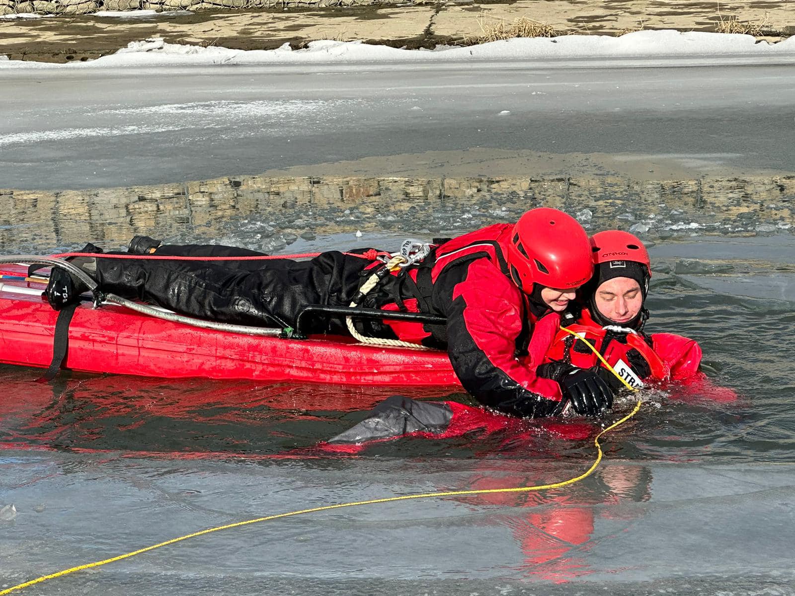 Tęgoborze, Powroźnik – zajęcia praktyczne z zakresu „ratownictwa na akwenach zalodzonych” dla jednostek OSP posiadających sanie lodowe