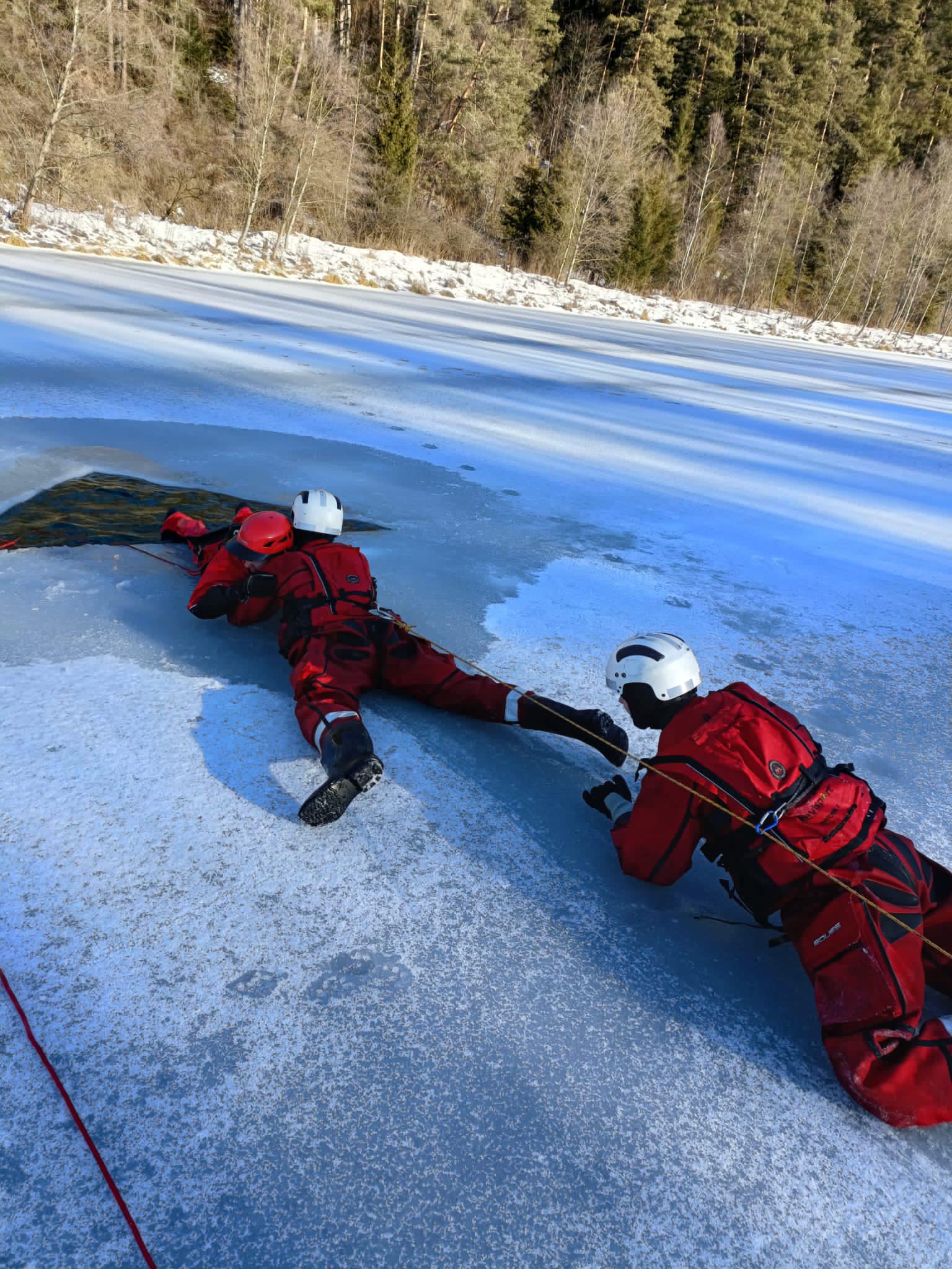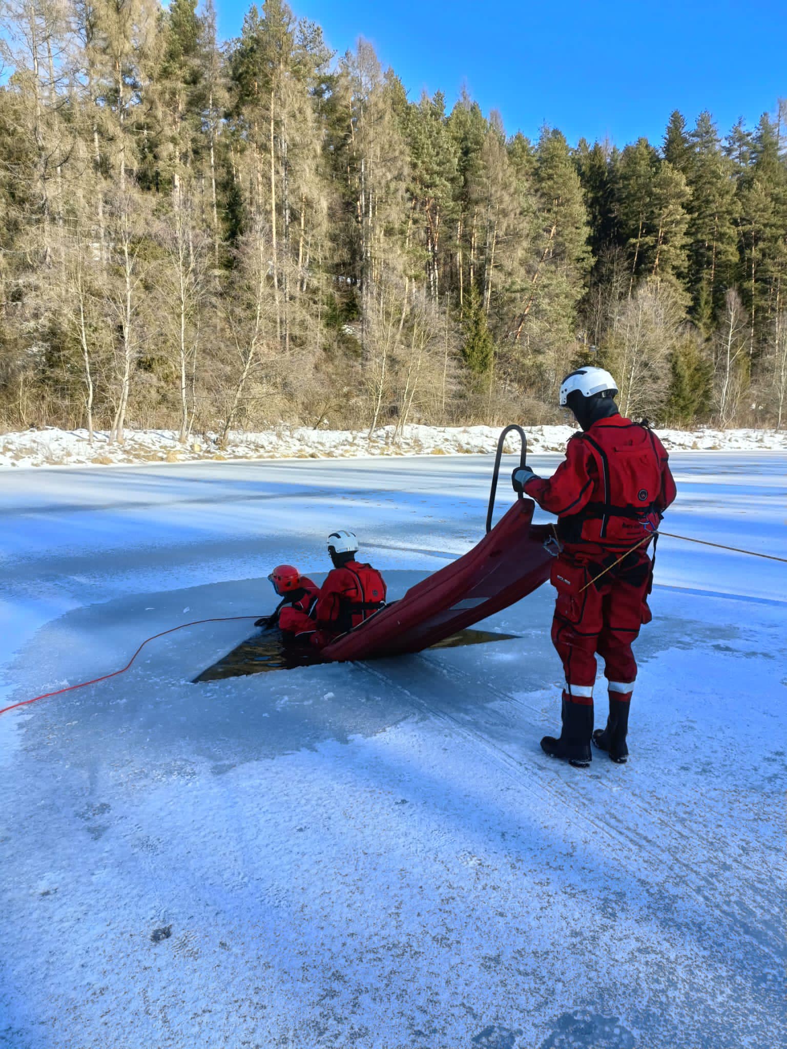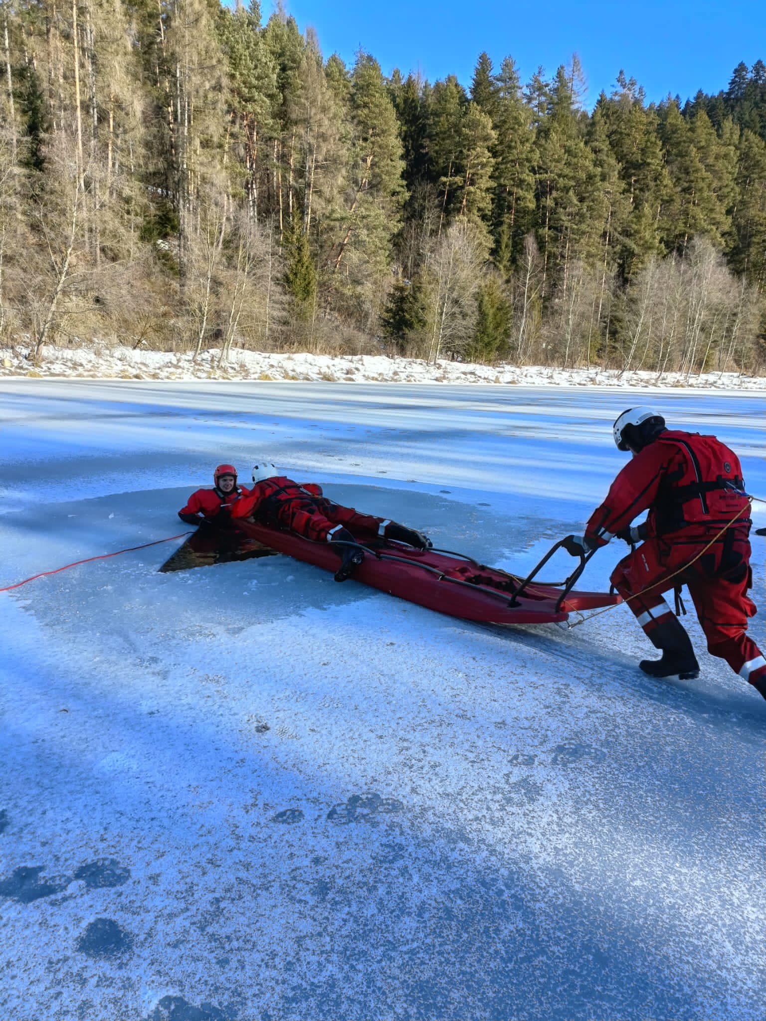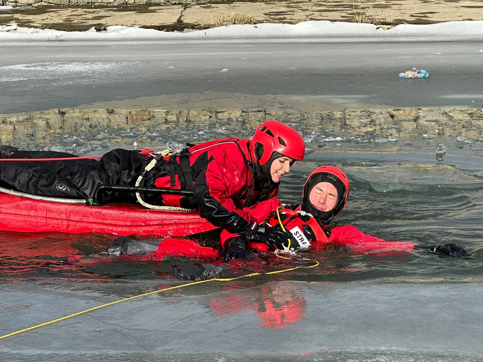 Tęgoborze, Powroźnik – zajęcia praktyczne z zakresu „ratownictwa na akwenach zalodzonych” dla jednostek OSP posiadających sanie lodowe