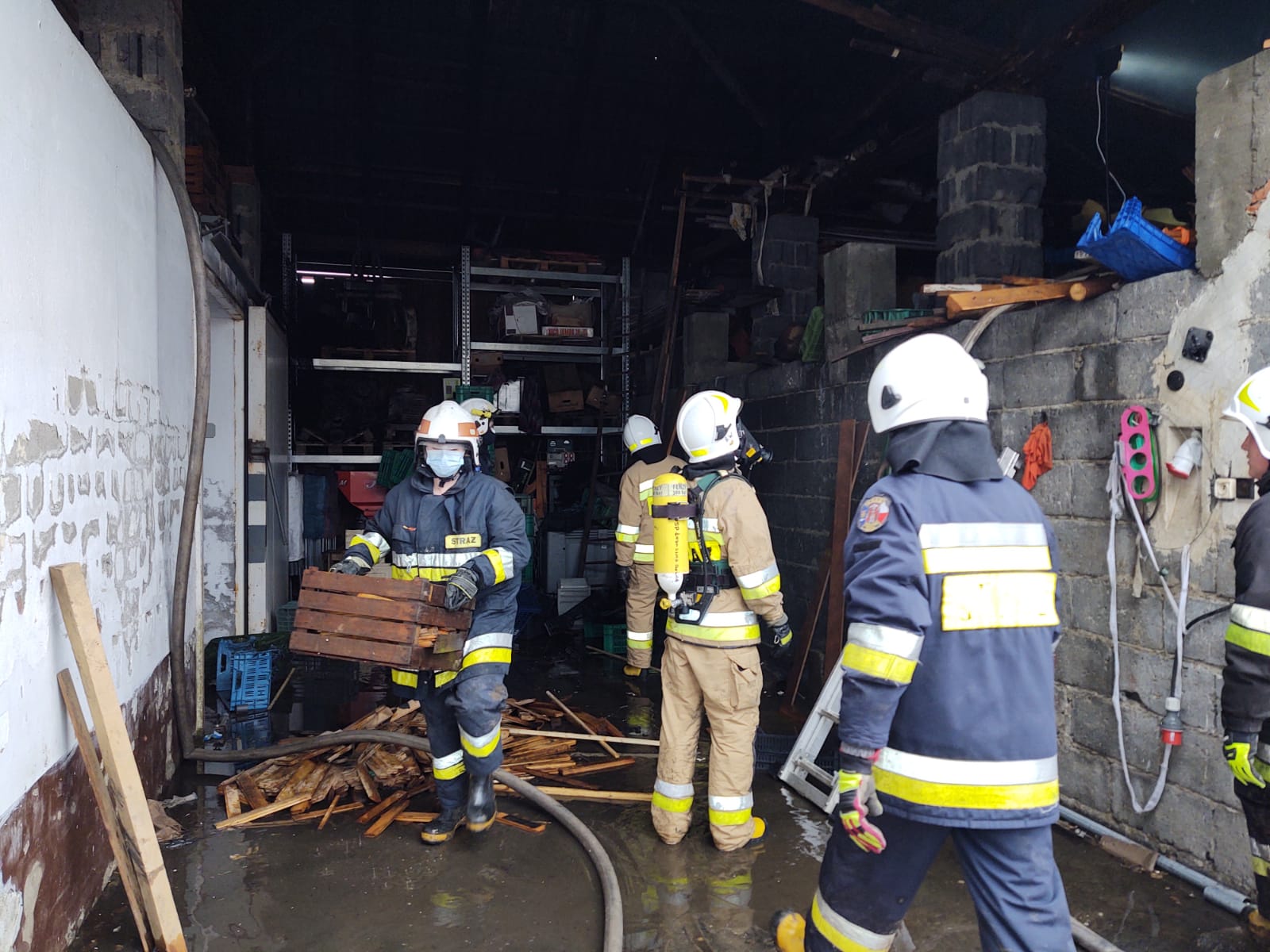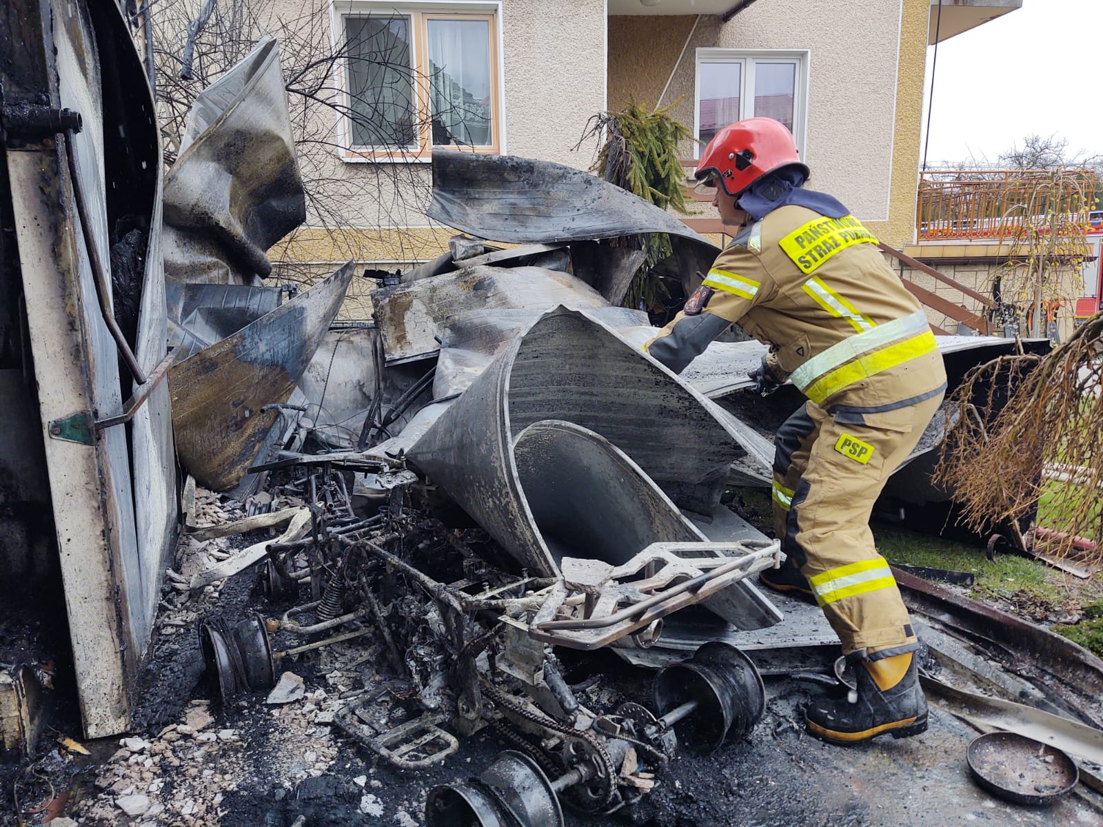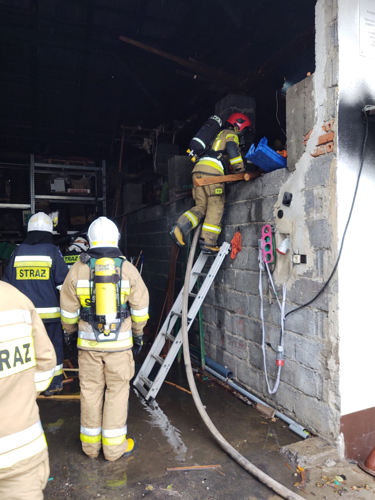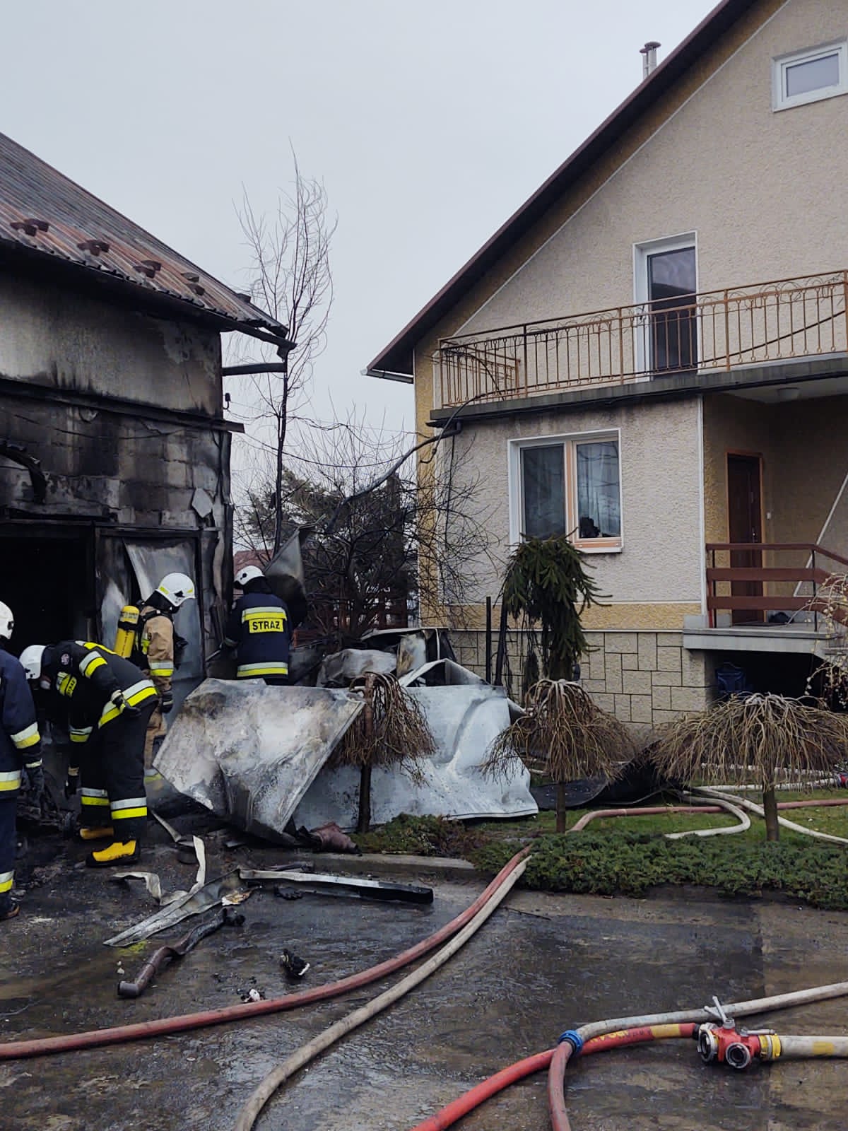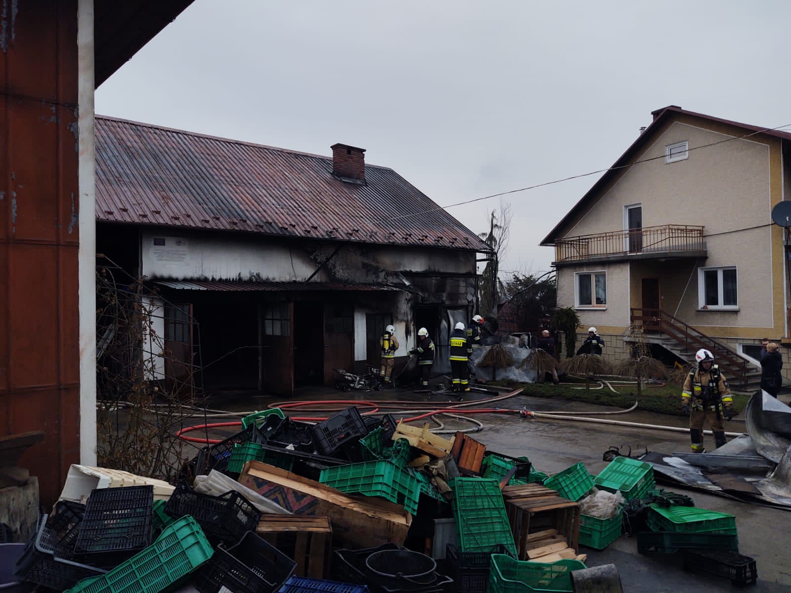 Tęgoborze, ul. Śliwkowa - pożar budynku gospodarczego