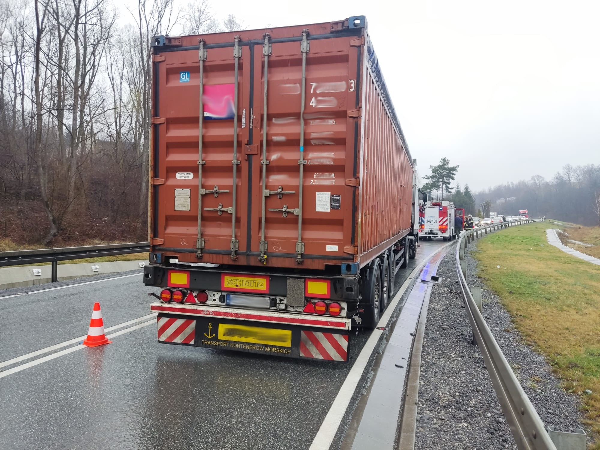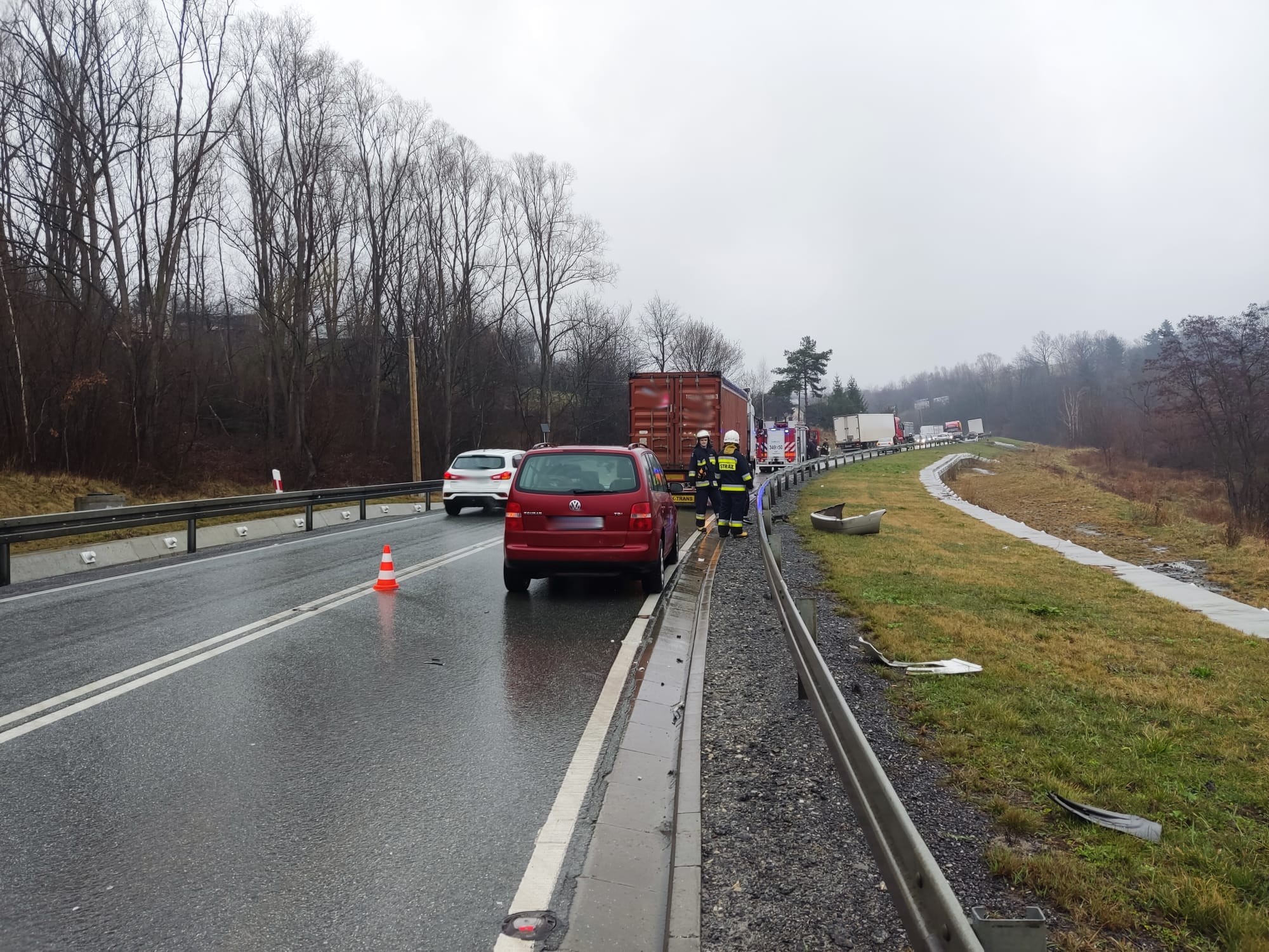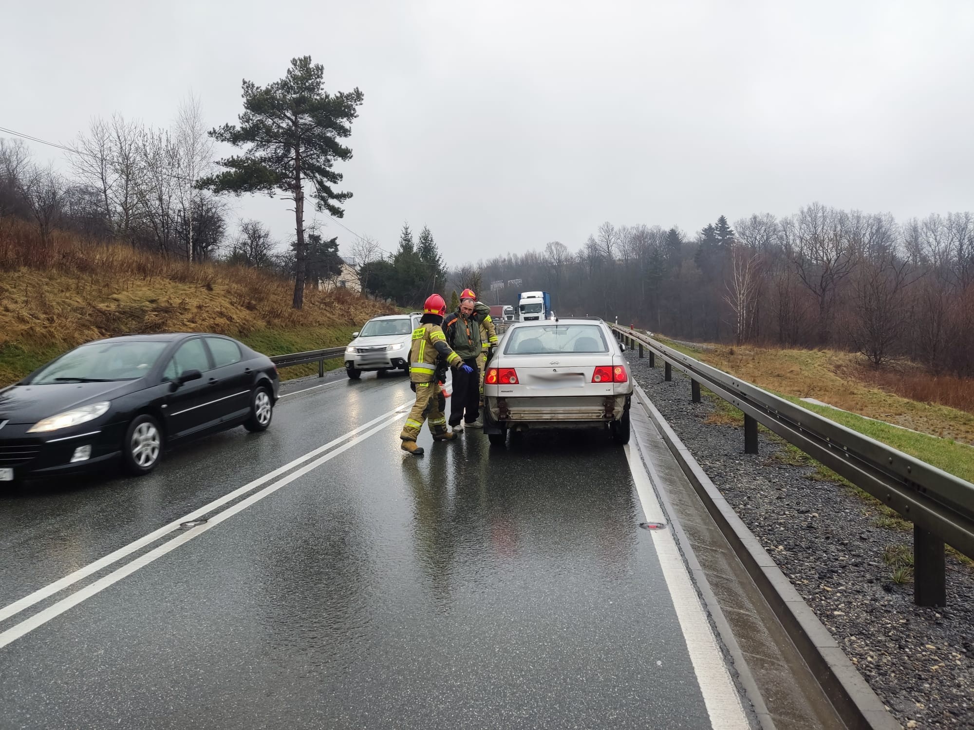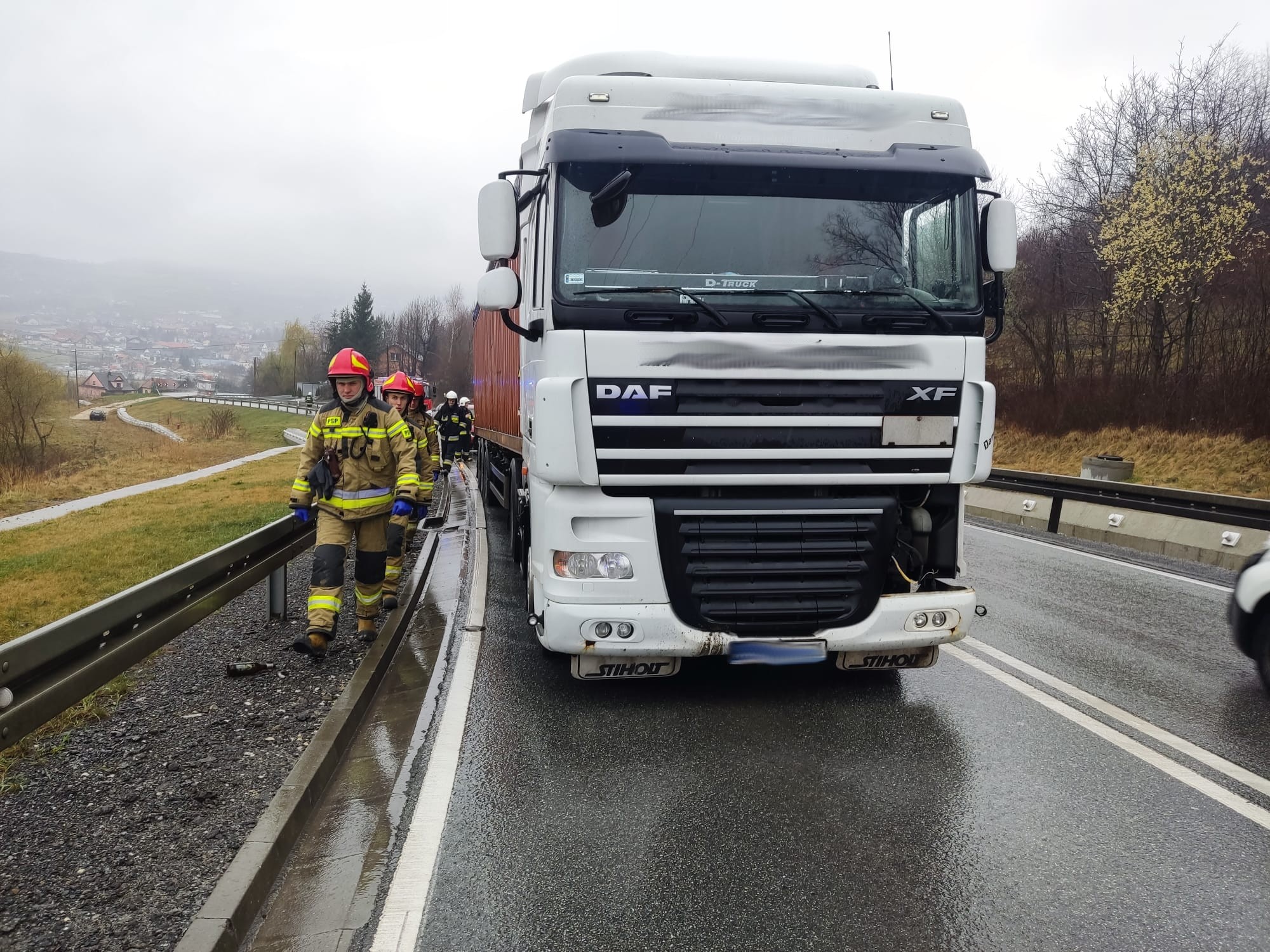 31 marca o godzinie 14.30 zastępy z JRG nr 1 w Nowym Sączu oraz OSP Tęgoborze zadysponowane zostały do działań w Tęgoborzy. Po przybyciu na miejsce zdarzenia ustalono, że na drodze krajowej nr 75 doszło do zdarzenia drogowego z udziałem pojazdu ciężarowego tj. ciągnika siodłowego z naczepą Daf oraz dwóch pojazdów osobowych tj. Chevrolet i VW Pasat. Ruch na pasie w kierunku do Krakowa był zablokowany. Elementy karoserii z pojazdu osobowego Chevrolet uderzyły w nadjeżdżający z naprzeciwka samochód osobowy VW Passat. W każdym z pojazdów podróżowali sami kierujący. Działania strażaków polegały na zabezpieczeniu miejsca zdarzenia. Ustalono stan uczestników zdarzenia, którzy nie zgłaszali żadnych dolegliwości. Nie stwierdzono wycieków z pojazdów. Działania strażaków trwały ponad godzinę. Pojazdy przekazano użytkownikom. W uzgodnieniu z Policją kierujący swoimi pojazdami udali się na pobliski parking w celu dokończenia czynności.