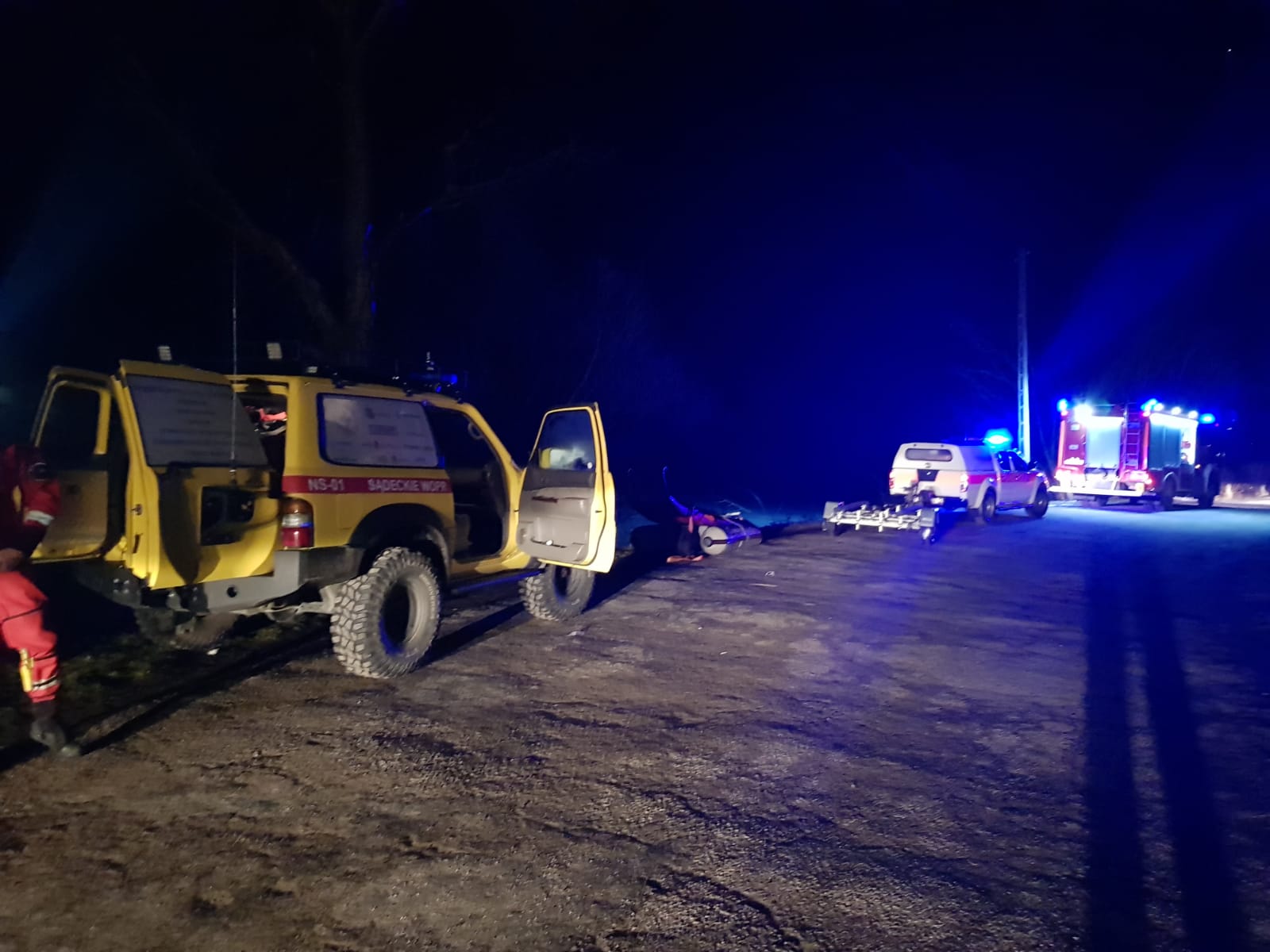 20 lutego około godziny 15.46 zastępy z JRG nr 1 w Nowym Sączu oraz OSP Rożnów zadysponowane zostały do działań w Tropiu. Po przybyciu na miejsce zdarzenia ustalono, że mężczyzna spadł ze skarby i znajdował się nad brzegiem jeziora w miejscu nieznanym ratownikom. Działania strażaków polegały na nawiązaniu kontaktu telefonicznego z poszkodowanym w celu ustalenia jego przybliżonego położenia i wszczęto poszukiwania. Po odszukaniu mężczyzny przystąpiono do udzielenia mu kwalifikowanej pierwszej pomocy. Mężczyzna znajdował się nad brzegiem jeziora i nie miał możliwości samodzielnego poruszania ze względu na uraz nogi. Oddalony był od wejścia do lasu o około 20 minut drogi w ciężkim ukształtowaniu terenu. Przemieszczono mężczyznę w bezpieczne miejsce. Udzielono mu kwalifikowanej pierwszej pomocy. Stwierdzono, że nie było możliwości przemieszczenia mężczyzny lądem ze względu bardzo trudne warunku terenowe. W związku z tym zadysponowano dodatkowy zastęp wraz z łodzią płaskodenną. Po przyjeździe na miejsce zastępu z łodzią dalsze działania polegały na zwodowaniu łodzi, strażak PSP wraz z przybyłymi na miejsce ratownikami WOPR udał się do miejsca gdzie znajdował się poszkodowany. Za pomocą narzędzi burzących rozbito lód który uniemożliwiał dotarcie do brzegu. Przy pomocy sprzętu wysokościowego poszkodowanego opuszczano po stromym brzegu do łodzi a następnie został on przetransportowany do miejsca zwodowania łodzi tj. przystań promu w Tropiu. Tam przekazano go pod opiekę ratowników medycznych Pogotowia ratunkowego. Działania strażaków trwały prawie cztery godziny.