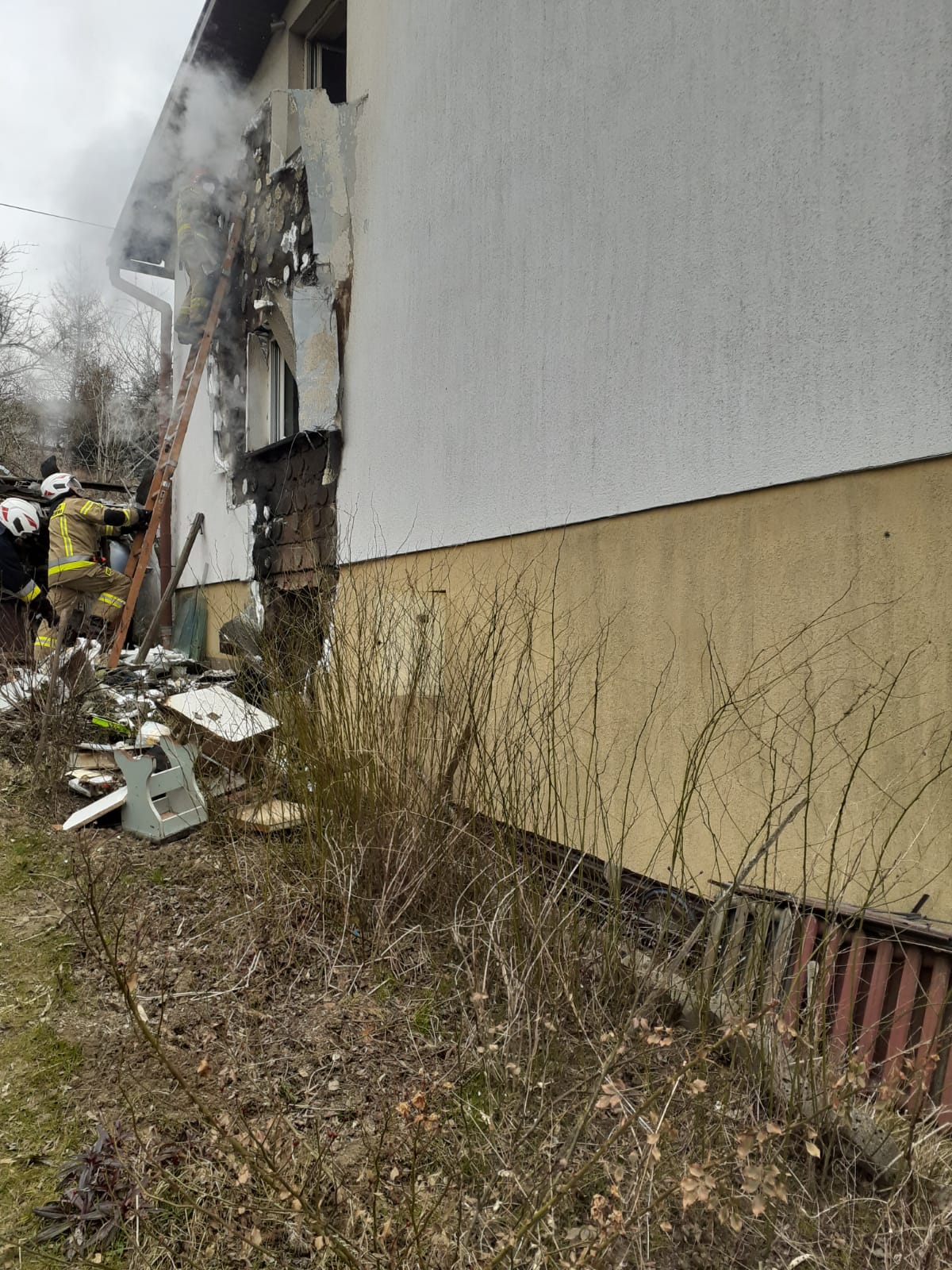 6 marca o godzinie 8.39 zastępy z JRG nr 1 w Nowym Sączu, OSP Rożnów oraz OSP Gródek nad Dunajcem zadysponowane zostały do pożaru budynku mieszkalnego w Tropiu. Po przybyciu na miejsce zdarzenia stwierdzono, że dym wydobywał się z pomieszczeń zlokalizowanych na parterze oraz z kuchni i jednego z pokoi znajdującego się na pierwszym piętrze. Przed przybyciem zastępu straży sąsiedzi przystawili do balkonu znajdującą się na posesji drabinę, weszli do budynku i sprawdzili pomieszczenia na pierwszym piętrze nie odnajdując lokatorki, nie udało im się również nawiązać kontaktu głosowego. Strop stanowiący oddzielenie kotłowni od kuchni uległ wyraźnemu odkształceniu. Działania zastępów straży polegały na zabezpieczeniu miejsca zdarzenia, wyłączeniu zasilania w energię elektryczną oraz wejścia strażaków do budynku w celu jego przeszukania oraz ugaszenia. Podano prąd wody do objętego pożarem pomieszczenia kotłowni. Przez balkon podano kolejny prąd wody do kuchni. Zorganizowano zasilanie wodne w oparciu o znajdujący się w pobliżu hydrant. Zamieszkująca budynek starsza kobieta została zlokalizowana na spoczniku klatki schodowej stanowiącej połączenie parteru i pierwszego piętra. Ze względu na pewne oznaki śmierci odstąpiono od jej natychmiastowej ewakuacji. Ugaszono palące się w kotłowni materiały palne oraz objętego pożarem wyposażenie kuchni. Otwarto wszystkie okna w budynku w celu jego oddymienia. Usuwano spalone w kuchni przedmioty na zewnątrz oraz je dogaszano i przelewano. Zerwano znaczną część elewacji z jednej ze ścian budynku. Podłożono w pomieszczeniu kotłowni stempli pod opadnięty strop. Wezwano na miejsce nadzór budowlany. Sprawdzono za pomocą kamery termowizyjnej cały budynek. Schładzano rozgrzane ściany w pomieszczeniu kotłowni w celu umożliwienia pracy technikom policyjnym oraz biegłemu z zakresu pożarnictwa. Po zakończeniu działań przez techników policyjnych ciało lokatorki zostało zabrane przez przybyłych na miejsce pracowników zakładu pogrzebowego. Działania strażaków trwały ponad pięć godzin. Przyczyna pożaru jest nieustalona.