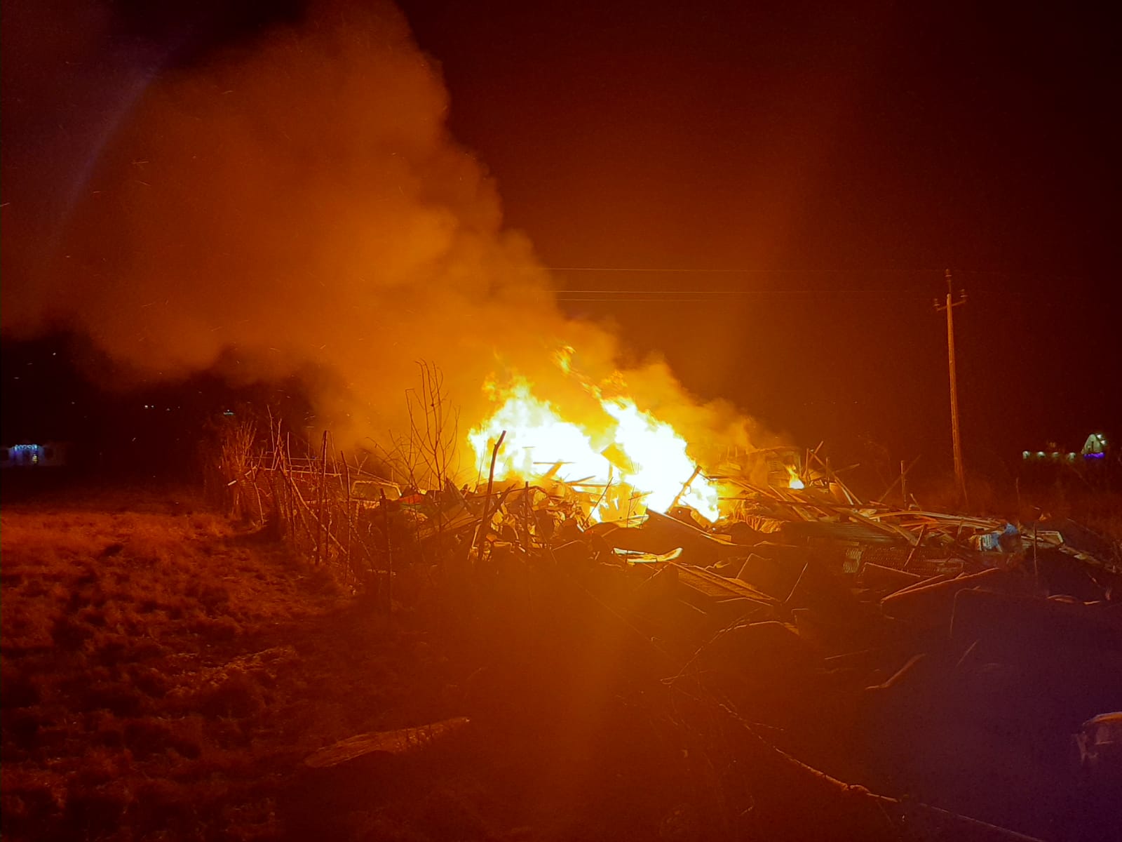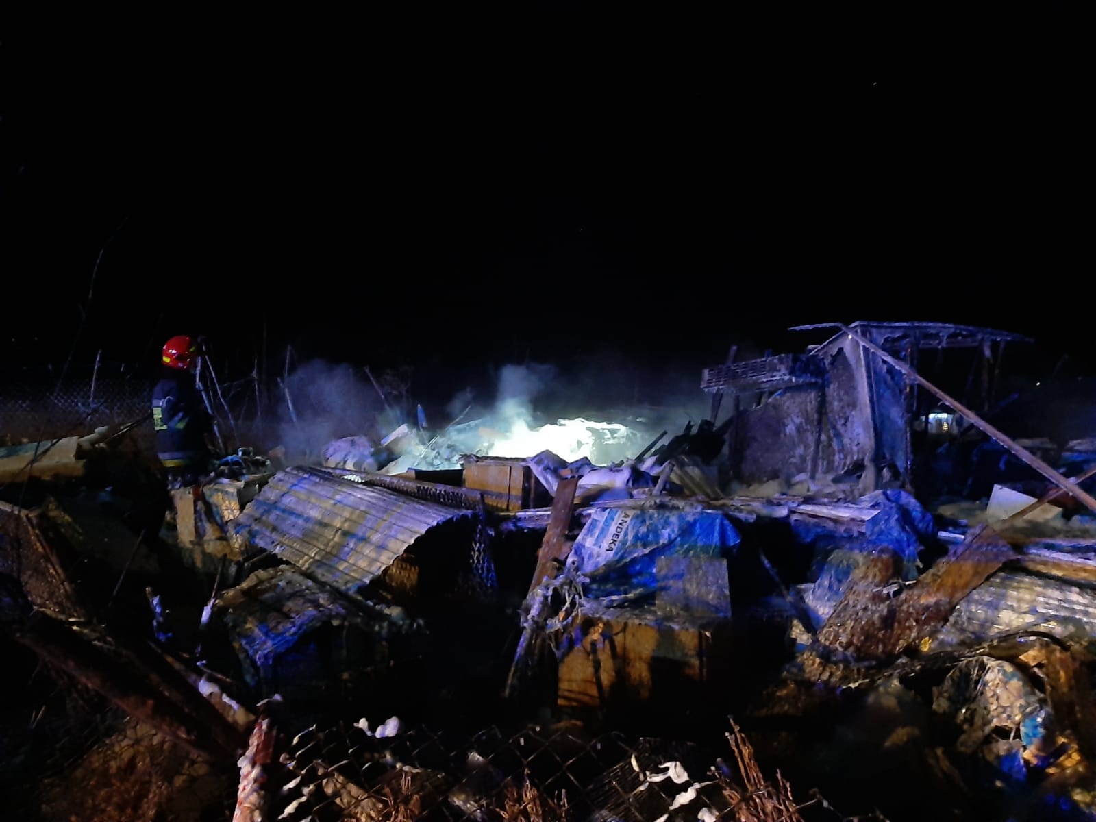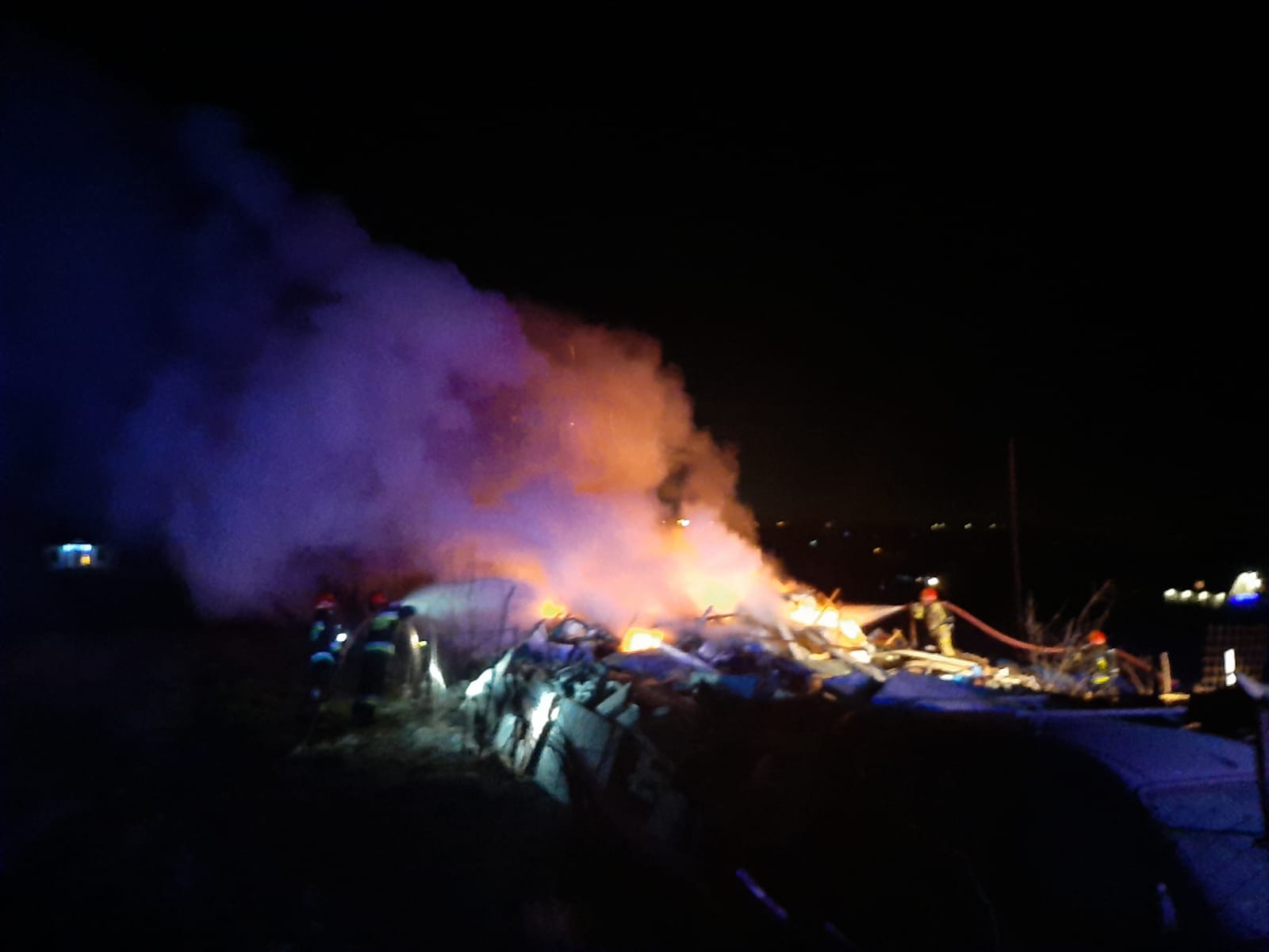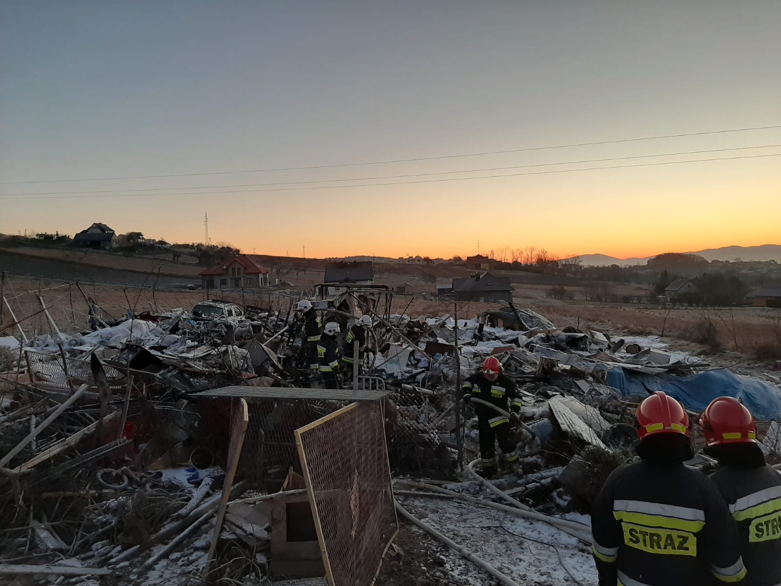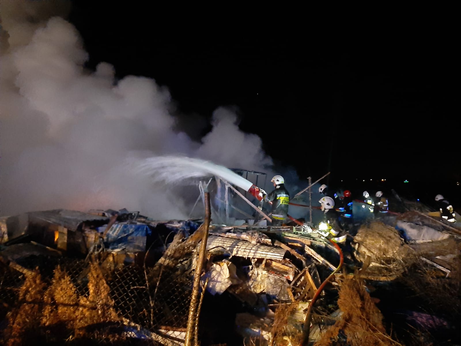 11 stycznia około godziny 23.00 zastępy z JRG nr 1 w Nowym Sączu, OSP Krasne Potockie, OSP Klęczany oraz OSP Brzezna Litacz zadysponowane zostały do działań w Trzetrzewinie. Po przybyciu na miejsce zdarzenia ustalono, że na posesji ogrodzonej stalową siatką miał miejsce pożar składowanych materiałów. W centralnej części placu znajdował się barak, w którym mógł mieszkać mężczyzna. Pożarem objęta była część materiałów na placu wraz z barakiem. W chwili przyjazdu na miejsce zdarzenia mężczyzna znajdował się poza placem. Na terenie placu znajdował się samochód osobowy Citroen Berlingo, który nie objęty pożarem oraz dwa wraki innych pojazdów osobowych. Działania strażaków polegały na zabezpieczeniu miejsca zdarzenia, sprawdzeniu stanu osoby, która nie zgłaszała żadnych dolegliwości oraz podaniu jednego prądu wody na ognisko pożaru. Podano kolejne prądy wody. Ustalono, że na terenie pożaru mogą znajdować się butle LPG. Po przeprowadzeniu wstępnego badania przez przybyłą załogę karetki Pogotowia ratunkowego został on zabrany do szpitala. Zorganizowano zaopatrzenie wodne z pobliskiego hydrantu odległego ponad 200 m od pożaru. Równolegle zorganizowano system dowożenia wody do pożaru. Z uwagi na różnorodność składowanych materiałów oraz słaby efekt gaśniczy wody, podano dwa prądy piany średniej. W trakcie działań z terenu pożaru wyniesiono 3 butle LPG w tym dwie 3 kg i jedną 11 kg. Przystąpiono do przegrzebywania pogorzeliska oraz dogaszania. Po ugaszeniu pożaru miejsce zdarzenia przekazano Policji. Działania 5 zastępów straży i 29 strażaków trwały prawie trzy godziny. Przyczyna pożaru jest nieustalona. Kolejny raz do Trzetrzewiny strażacy z JRG nr 1 w Nowym Sączu oraz OSP Krasne Potockie zadysponowane zostały około godziny 6.30 12 stycznia br. Po przybyciu na miejsce zdarzenia ustalono, na terenie pogorzeliska występowało niewielkie zadymienie oraz para wodna wydobywająca się ze składowanych materiałów na powierzchni około 2m2. Działania strażaków polegały na zabezpieczeniu miejsca zdarzenia, przegrzebaniu części składowiska z widocznymi oznakami wydobywania się dymu oraz pary wodnej i przelaniu wodą. Działania gaśnicze trwały godzinę.
