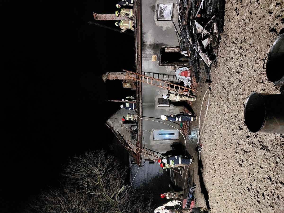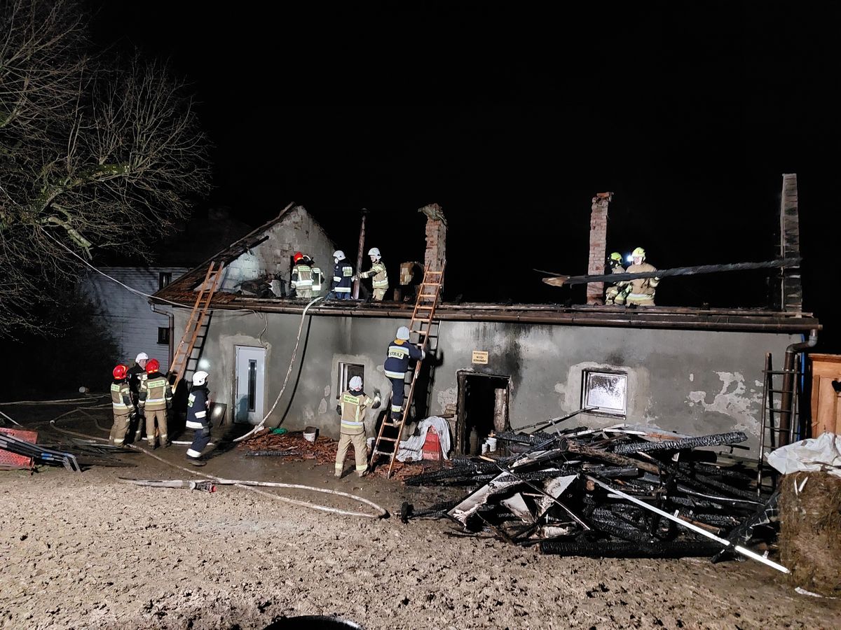 2 kwietnia o godzinie 23.24 zastępy z JRG nr 1 w Nowym Sączu, OSP Tęgoborze, OSP Jelna, OSP Siedlce, OSP Niskowa oraz OSP Librantowa zadysponowane zostały do pożaru w Ubiadzie. Dojazd do miejsca pożaru był utrudniony z powodu górzystego terenu, wąskiej drogi dojazdowej o ostrych zakrętach częściowo prowadzącej przez las. Samochód PSP ugrzązł w miękkim gruncie, co uniemożliwiło dalszą jazdę. Po przybyciu strażaków na miejsce zdarzenia ustalono, że miał miejsce w pełni rozwinięty pożar poddasza i dachu na budynku inwentarsko-magazynowym. W odległości kilku metrów znajdowało się kilka innych budynków. Na dachu płonącego budynku gospodarczego znajdowała się instalacji fotowoltaiczna. Mieszkańcy wyprowadzili część inwentarza żywego poza budynek gospodarczy. W budynku pozostała trzoda chlewna oraz króliki. Działania strażaków polegały na zabezpieczeniu miejsca zdarzenia oraz rozłączeniu napięcia elektrycznego. Z uwagi na brak możliwość dojazdu do płonącego budynku prowadzono linie wężowe kilkaset metrów. Podano prądy wody w natarciu i obronie. Dalsze działania polegały na zlokalizowaniu pożaru. Nadpalone elementy konstrukcyjne dachu usunięto przy pomocy pilarki spalinowej i podręcznego sprzętu burzącego. Dokonano ewakuacji królików z zadymionych pomieszczeń. Wietrzono pomieszczenia w których znajdowała się trzoda chlewna. Przystąpiono do prac rozbiórkowych konstrukcji dachu. Kontrolowano budynek przy pomocy kamery termowizyjnej. Równolegle do działań gaśniczych podjęto działania zmierzające do wyciągnięcia samochodu z grząskiego terenu. Działania 10 zastępów i 41 strażaków trwały pięć godzin.