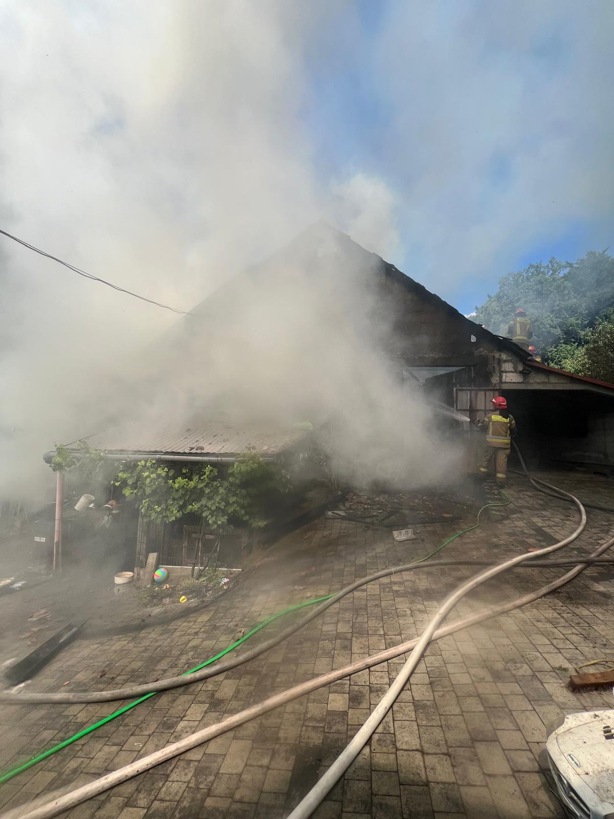 30 lipca o godzinie 12.27 zastępy z JRG nr 1 i 2 w Nowym Sączu oraz zastępy z najbliższych jednostek OSP zadysponowane zostały do działań w Ubiadzie. Po przybyciu na miejsce zdarzenia ustalono, że doszło do pożaru budynku gospodarczego usytuowanego na stromym zboczu do którego prowadziła wąska asfaltowa droga. W części podpiwniczonej budynku znajdowały się króliki oraz kury. Właściciel przed przybyciem straży podjął próbę ewakuacji zwierząt. W chwili przybycia strażaków budynek był całkowicie objęty pożarem. Działania strażaków polegały na zabezpieczeniu miejsca zdarzenia oraz podaniu prądów wody do wnętrza budynku z równoczesną ewakuacją zwierząt oraz mienia. Strażacy wraz z właścicielem ewakuowali wszystkie zwierzęta i umieścili je w miejscu bezpiecznym. W wyniku pożaru więźba dachowa zawaliła się do wnętrza budynku. Po przygaszeniu pożaru dalsze prace polegały na pracach rozbiórkowych konstrukcji drewnianej budynku oraz wyniesieniu na zewnątrz elementów wyposażenia budynku, Właściciel budynku zorganizował koparkę, którą wykorzystano do przerzucania zawartości budynku. Po usunięciu oraz przelaniu wszystkich spalonych materiałów, budynek sprawdzono przy użyciu kamery termowizyjnej i zakończono działania, które trwały ponad pięć godzin. W działaniach brało udział 10 zastępów i 37 strażaków