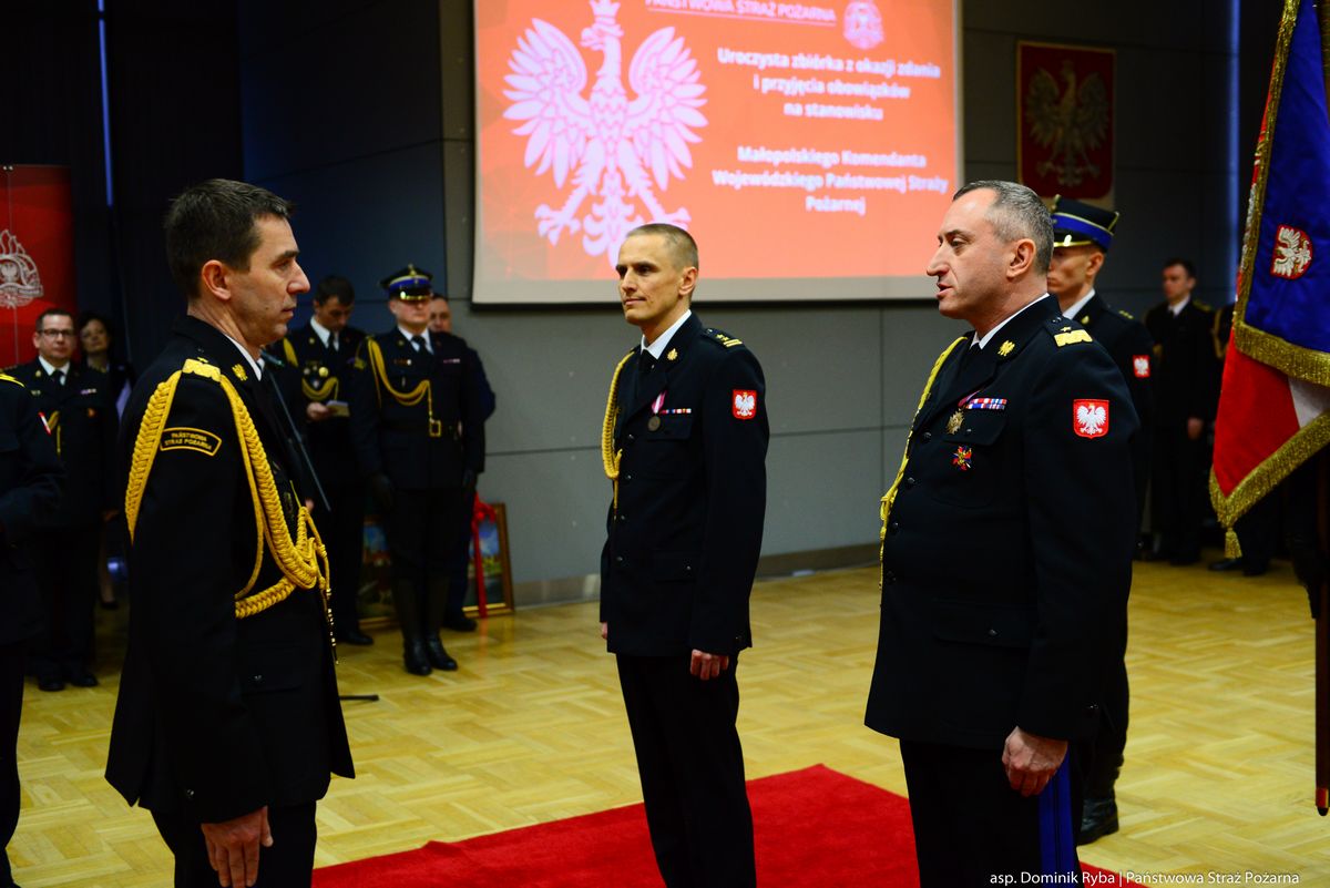 Podczas uroczystości, w obecności wojewody małopolskiego Krzysztofa Jana Klęczara, komendanta głównego PSP nadbryg. dr. inż. Mariusza Feltynowskiego, zastępcy komendanta głównego PSP nadbryg. Józefa Galicy oraz kadry PSP woj. małopolskiego i zaproszonych gości, nastąpiło również uroczyste pożegnanie i powitanie ze sztandarem komendy przez zdającego i przyjmującego obowiązki komendanta wojewódzkiego PSP.