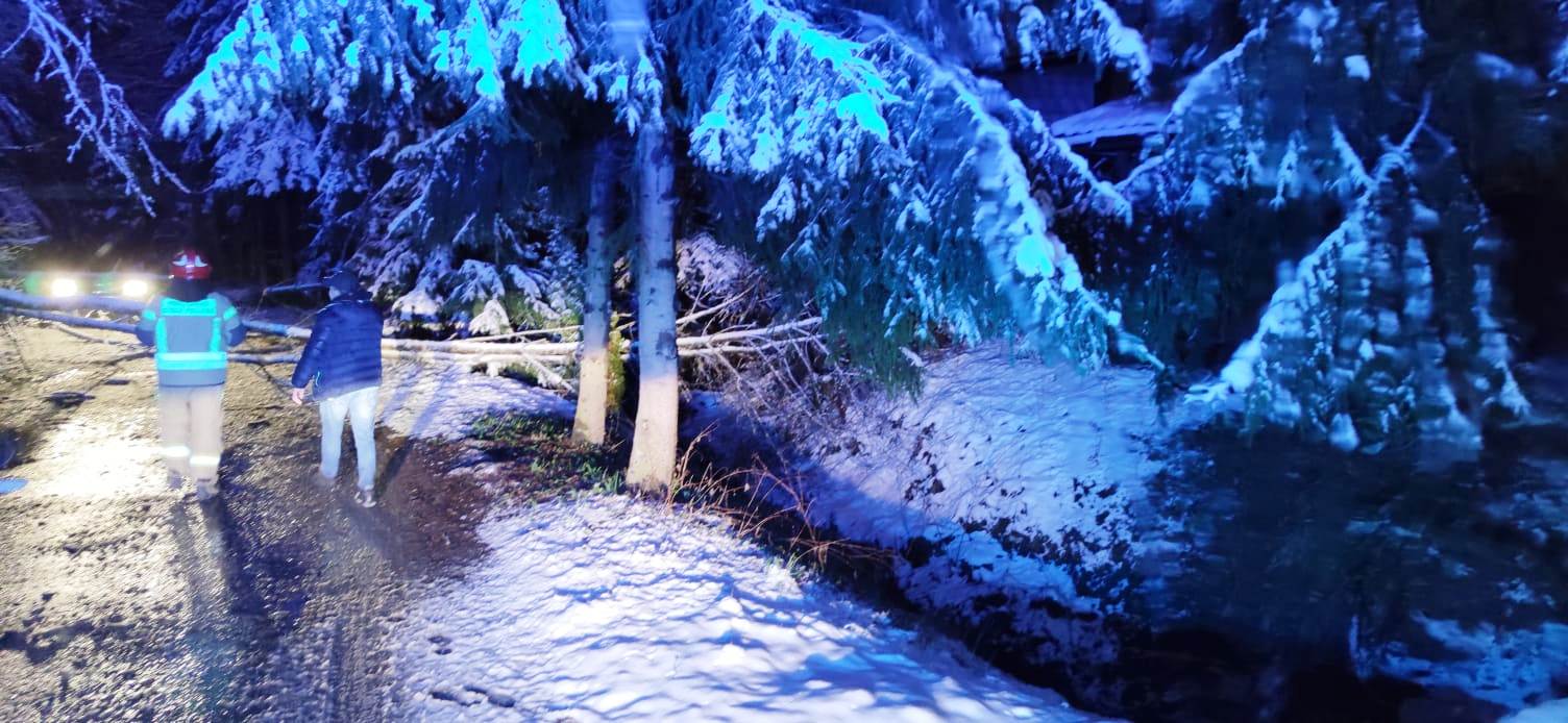 -Moszczenica Wyżna- drzewo powalone na droga.