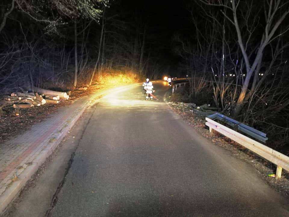 -Polany DW-981 - powalone drzewo na drogę tarasuje przejazd