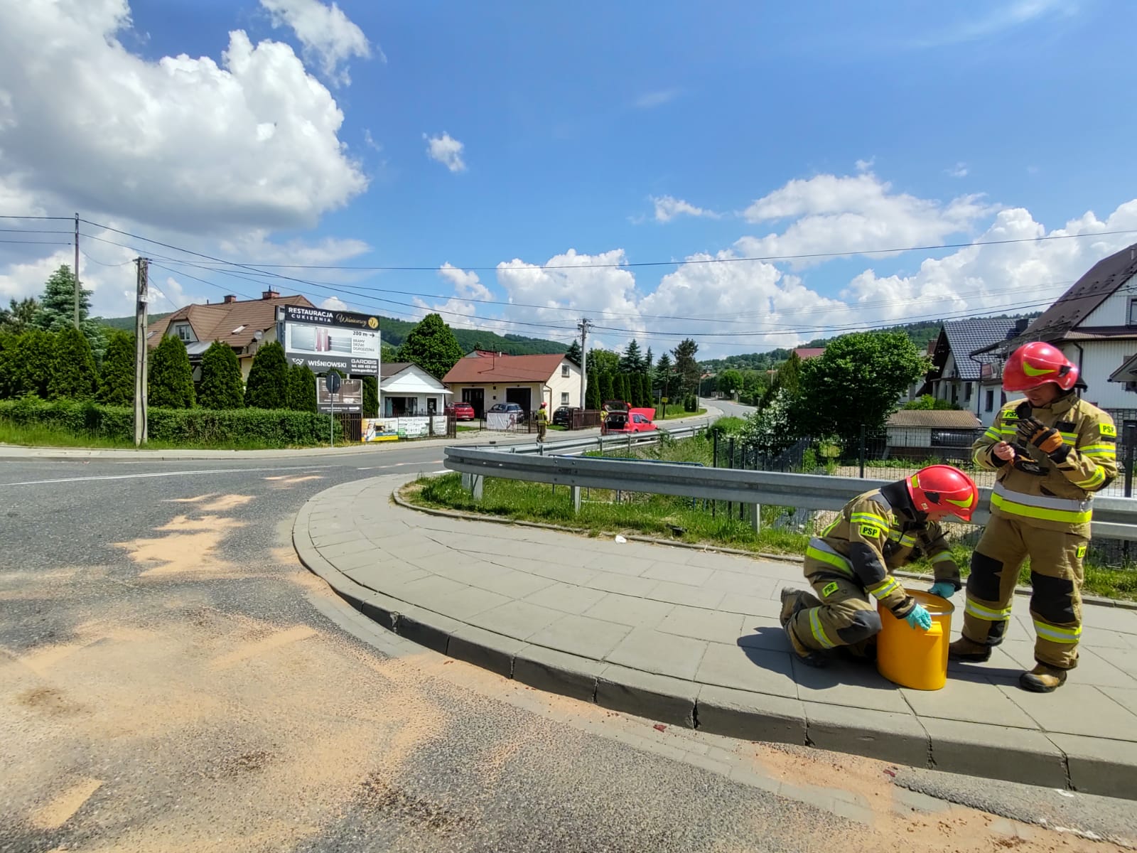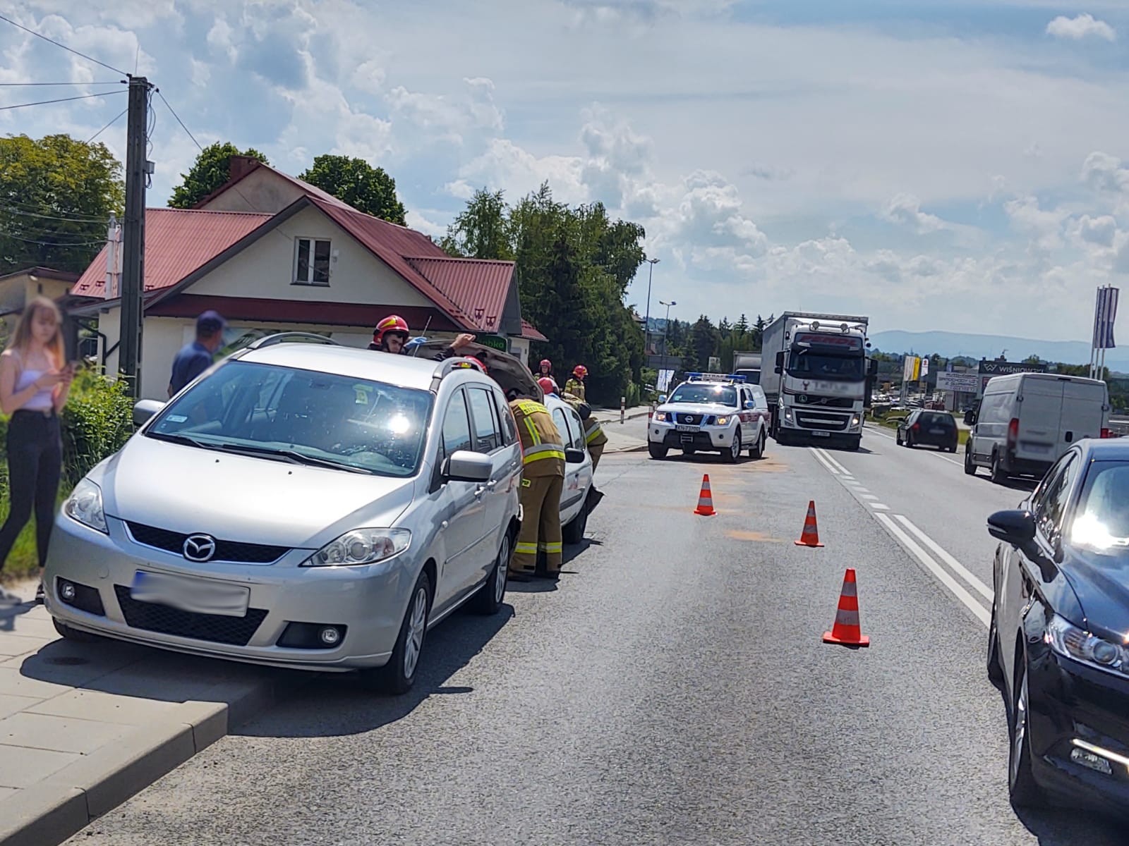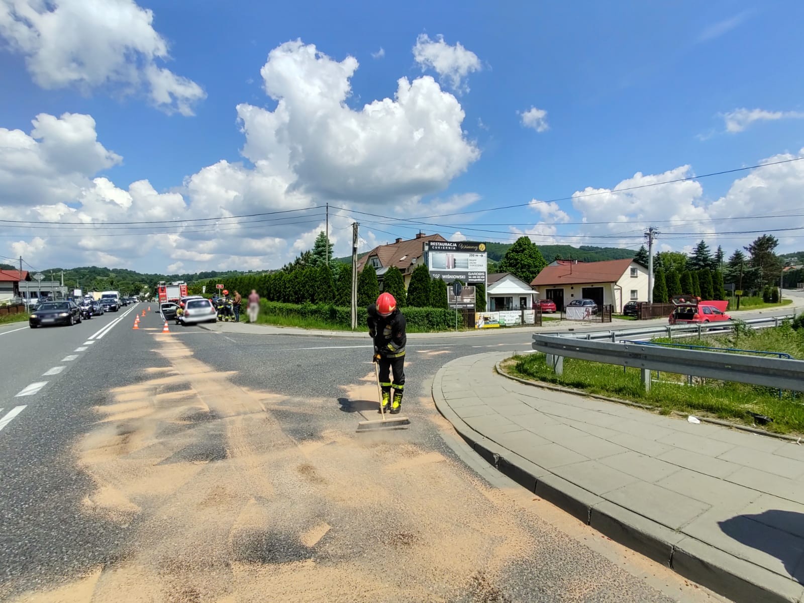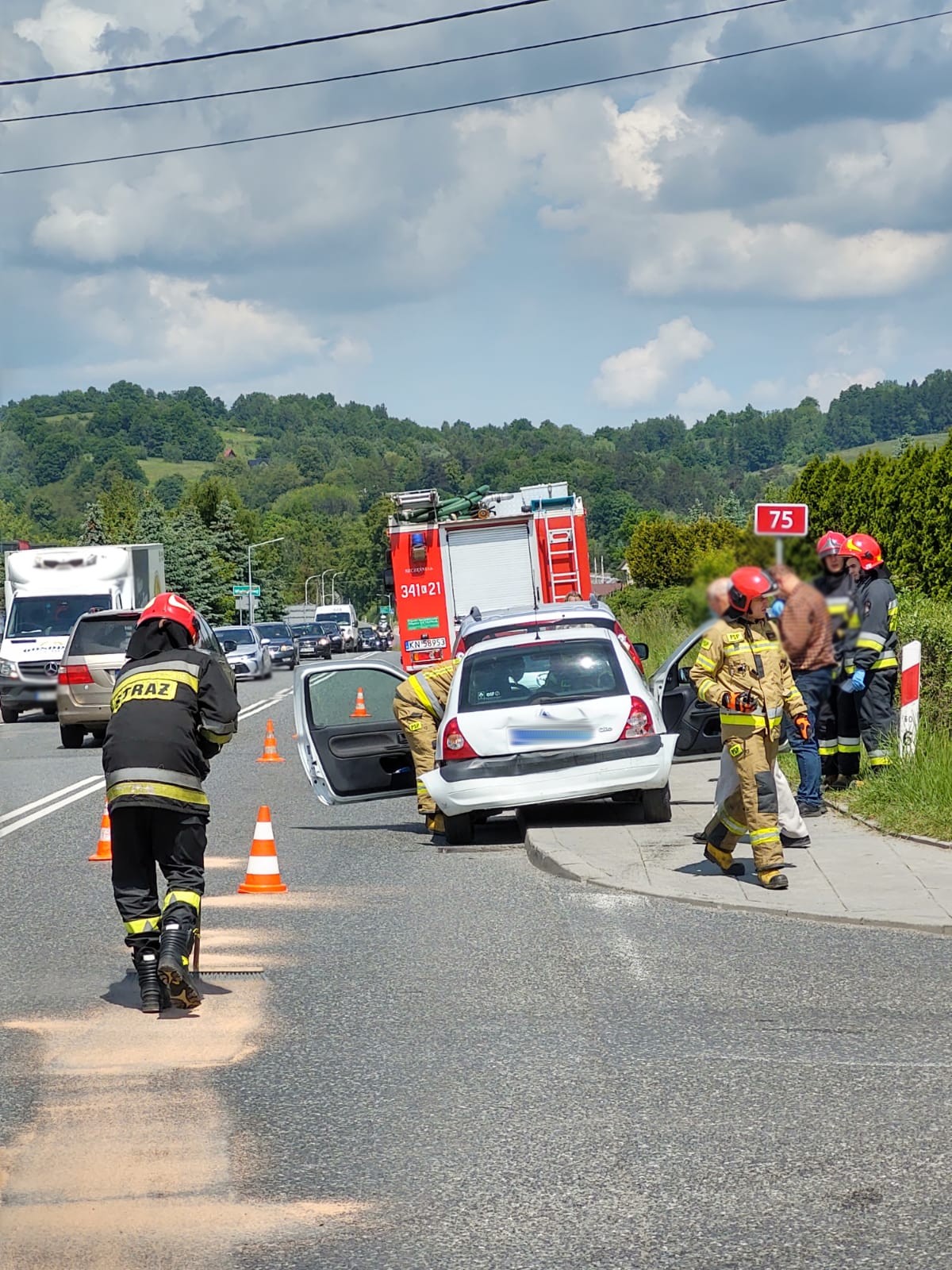 7 czerwca o godzinie 11.11 zastępy z JRG nr 1 w Nowym Sączu zadysponowane zostały do działań w Wielogłowach. Po przybyciu na miejsce zdarzenia ustalono, że na drodze krajowej 75 doszło do zderzenia trzech samochodów osobowych. Samochodami podróżowało łącznie cztery osoby, które nie uskarżały się na dolegliwości. Z pojazdów wyciekły płyny eksploatacyjne. Strażacy zabezpieczyli miejsce zdarzenia. Usunęli płyny eksploatacyjne z jezdni przy pomocy sorbentu oraz przywrócili ruch na drodze.
