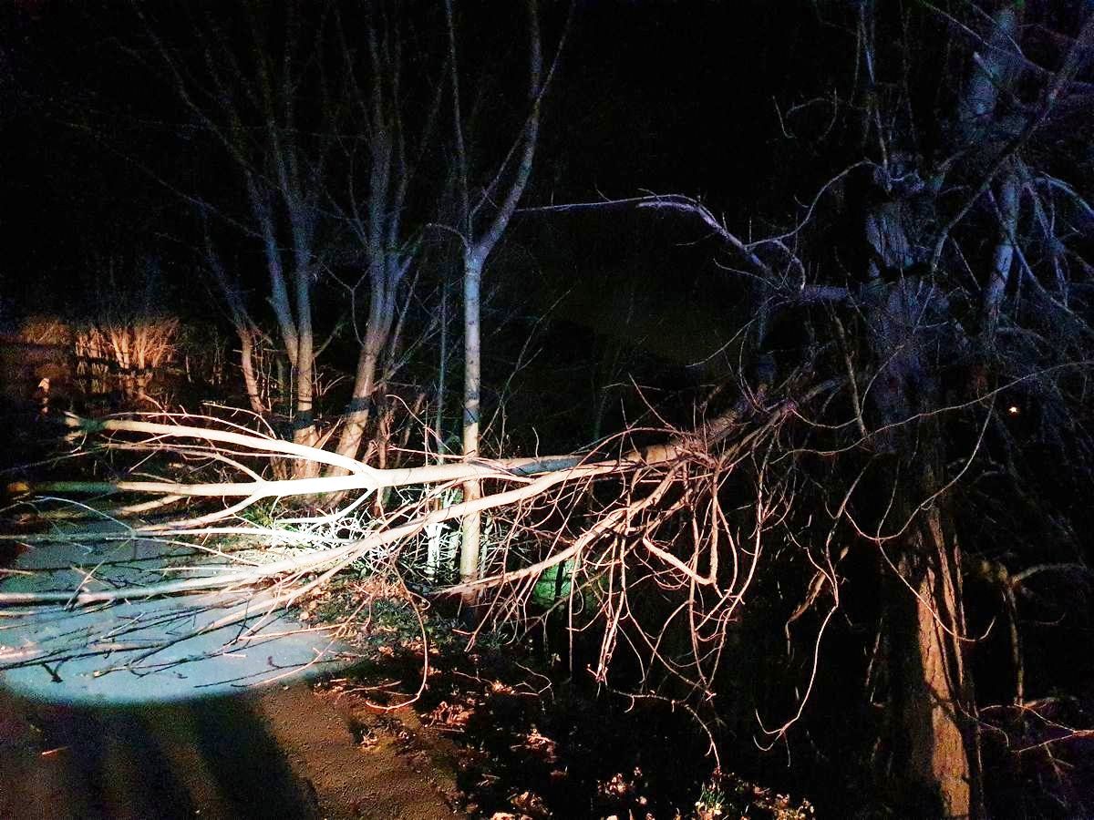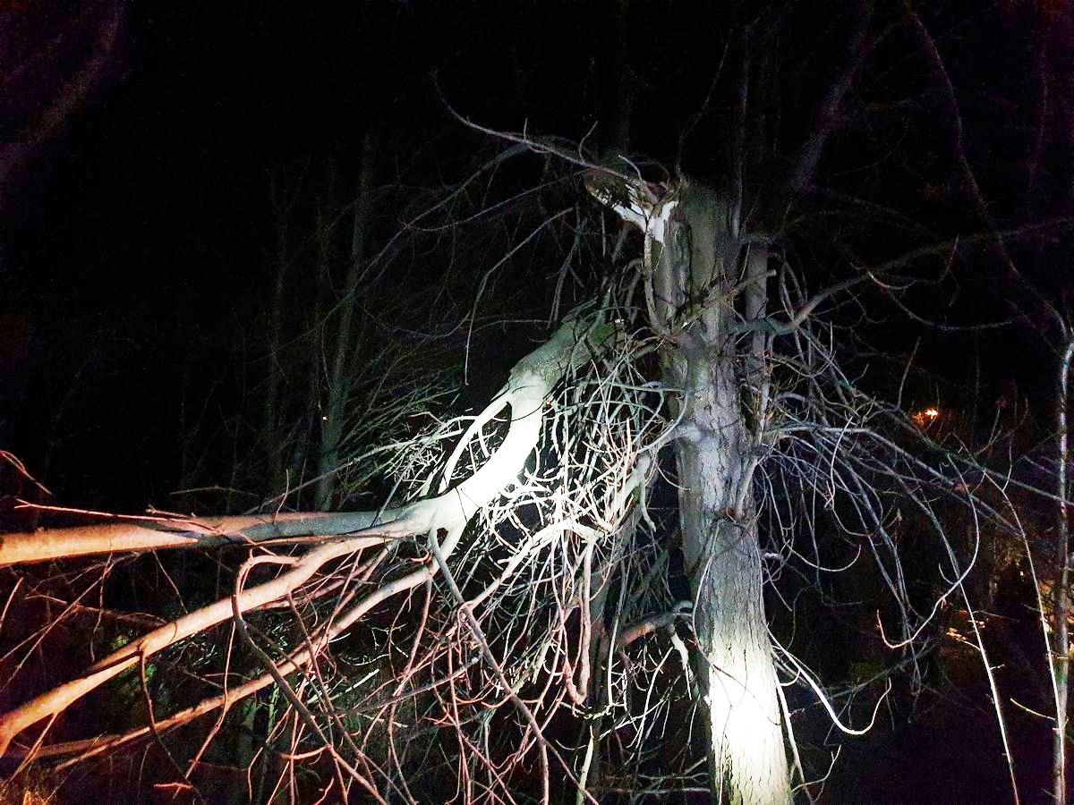 Czaczów – powalone drzewo na drogę i złamany słup energetyczny.