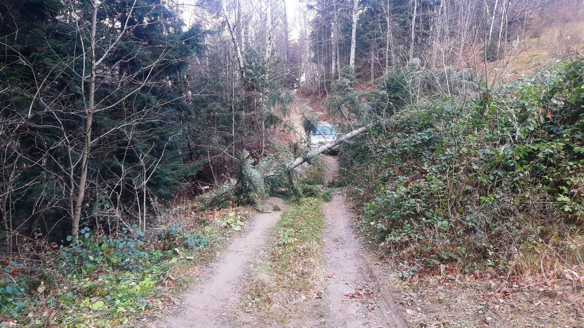 Mochnaczka Wyżna – powalone drzewo na drogę;