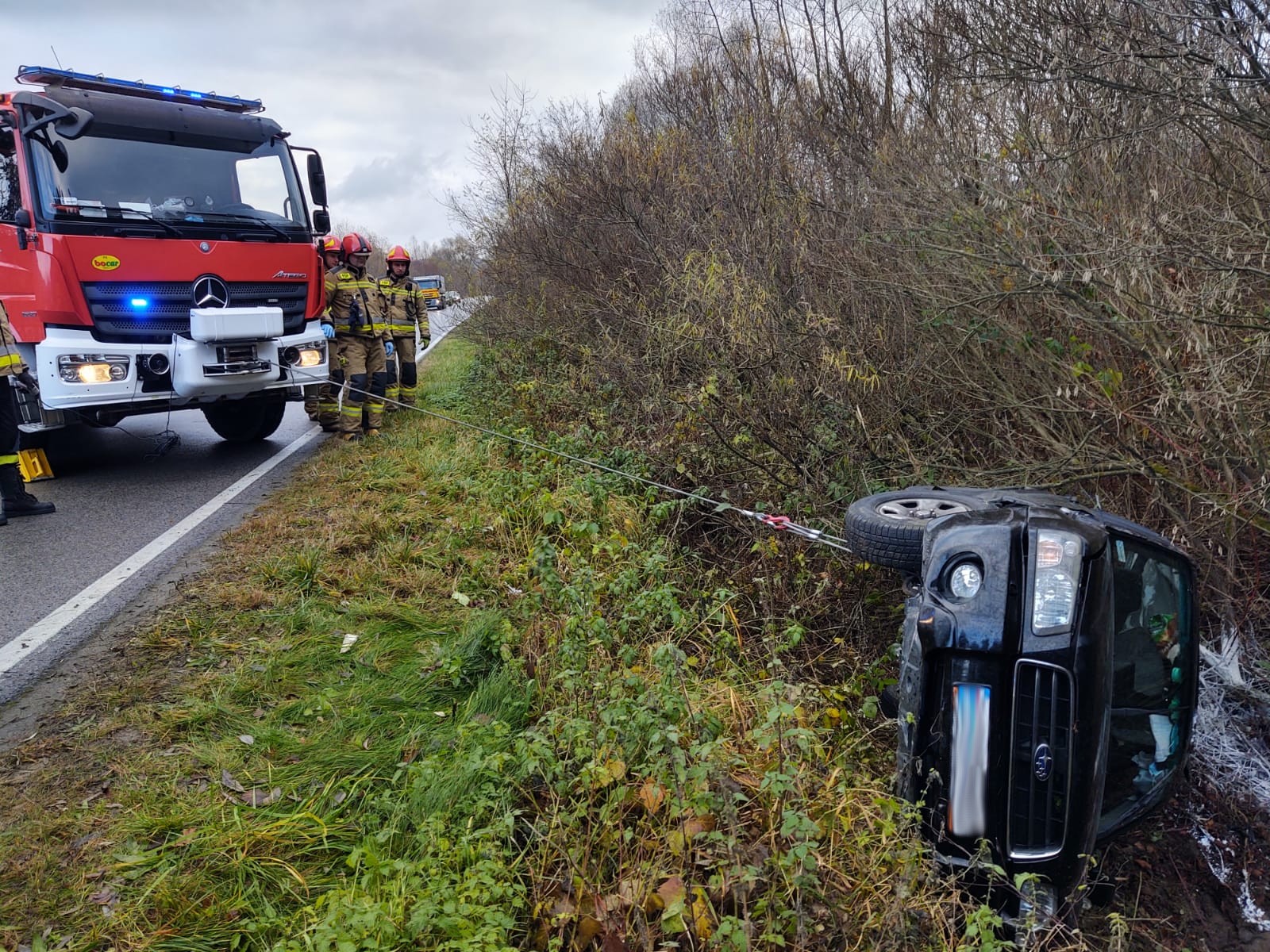18 listopada o godzinie 8.18 zastępy z JRG nr 1 w Nowym Sączu, OSP Łososina Dolna oraz OSP Rożnów zadysponowane zostały do działań w Witowicach Dolnych. Po przybyciu na miejsce zdarzenia stwierdzono, że doszło do dachowania samochodu osobowego, który znajdował się poza drogą. Trzy osoby podróżujące samochodem same opuściły pojazd przed przybyciem strażaków i nie odniosły widocznych obrażeń. W celu rozłączenia akumulatora trzeba było postawić samochód na kola.