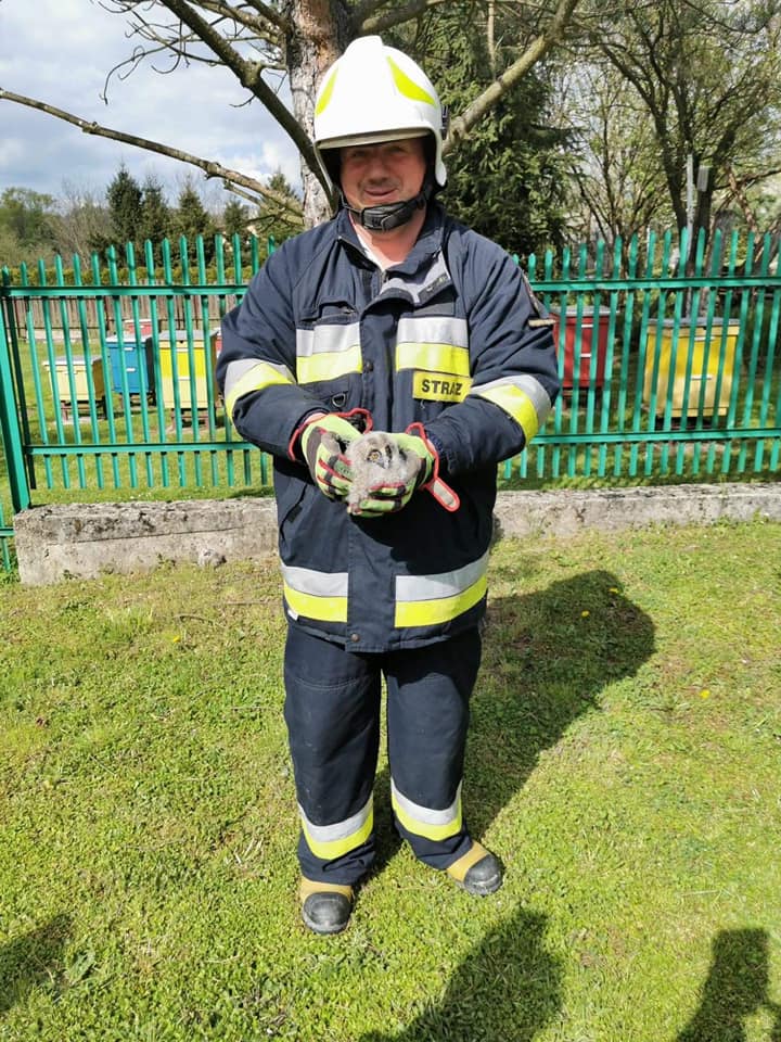 Witowice Dolne - strażacy pomogli małym ptakom, które wypadły z gniazda