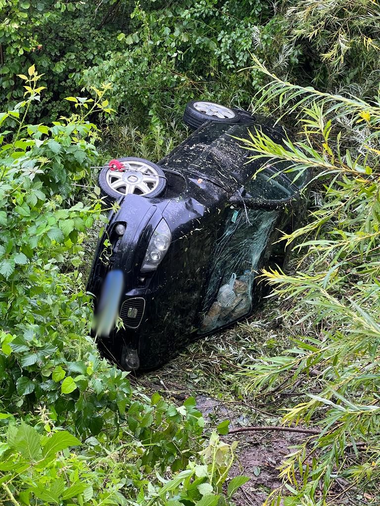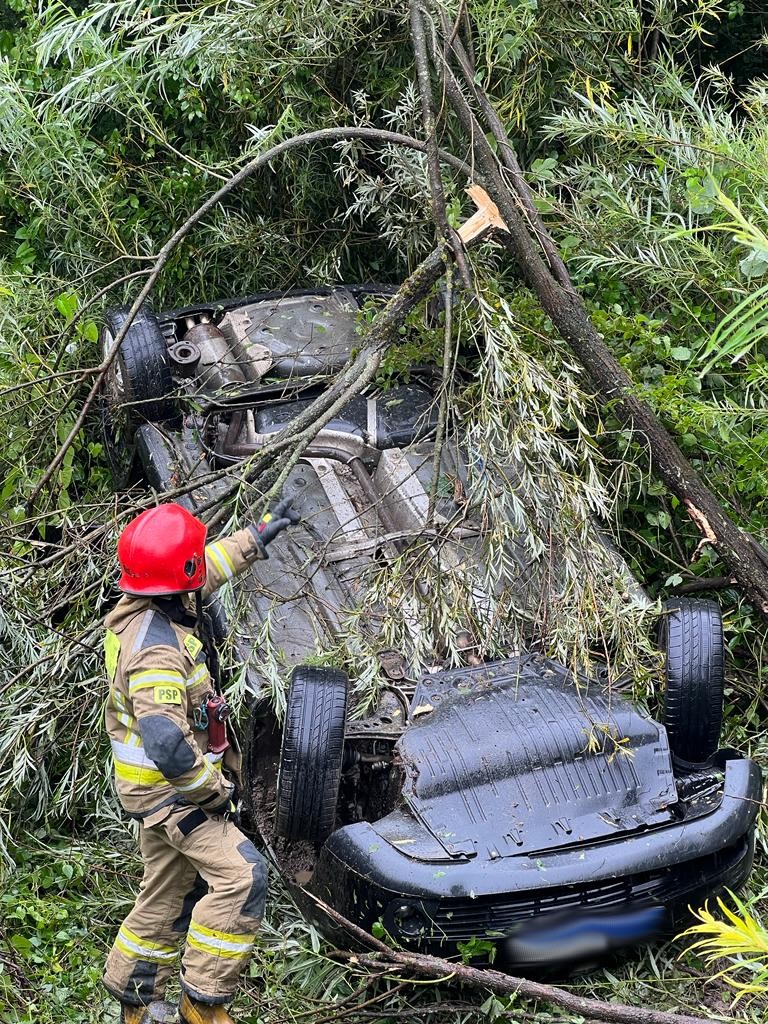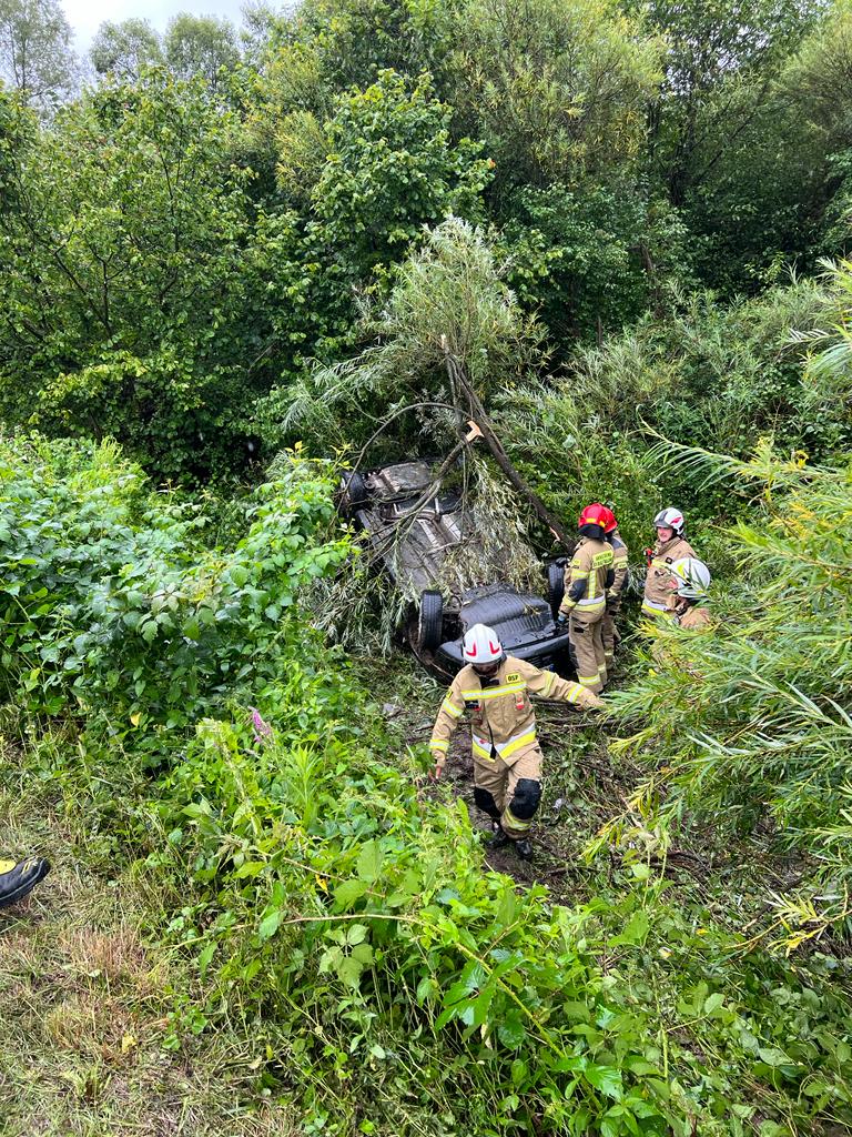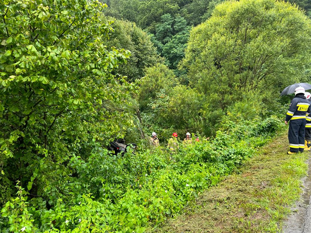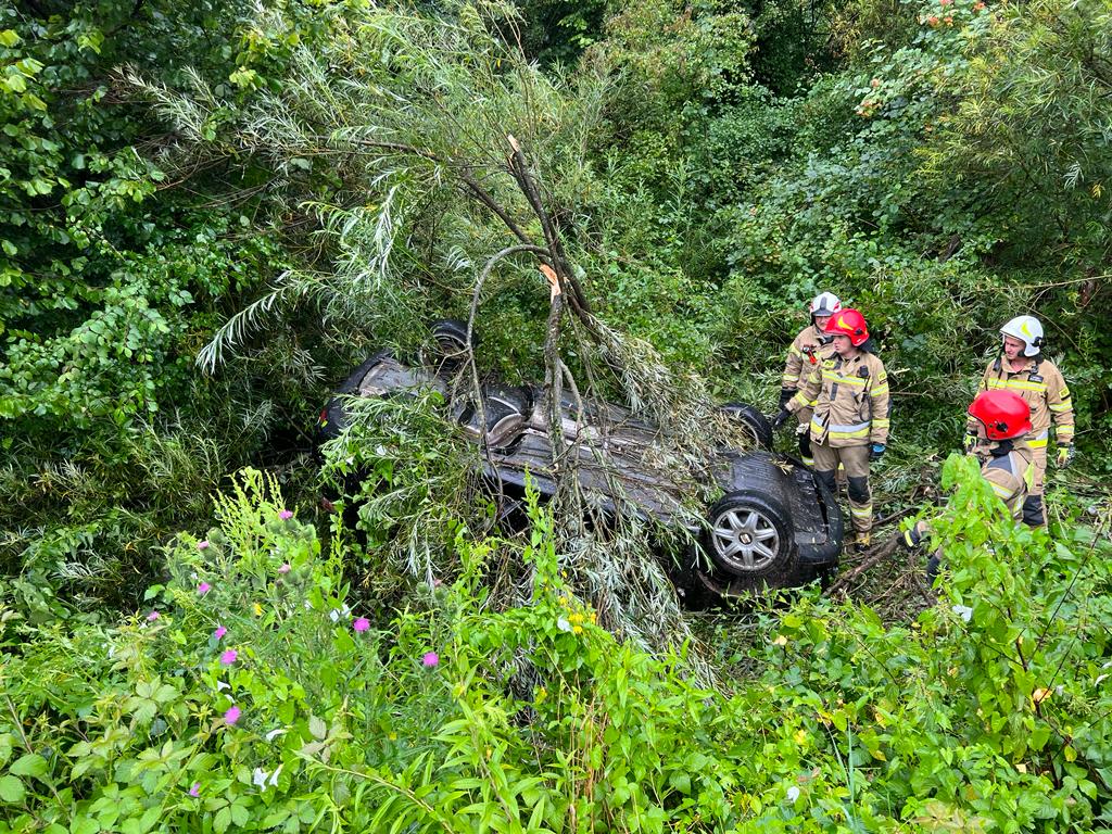 26 lipca o godzinie 14.03 zastępy z JRG nr 1 w Nowym Sączu, OSP Rożnów oraz OSP Łososina Dolna zadysponowane zostały do działań w Łososinie Dolnej. Po przybyciu na miejsce zdarzenia ustalono, że na drodze w kierunku Rożnowa poza jezdnią znajduje się samochód osobowy na dachu. Pojazdem podróżowała sama kierująca, która znajduje się poza pojazdem na drodze i nie uskarżała się na żadne dolegliwości. Jeden pas drogi był zablokowany z uwagi na ustawienie pojazdów służb ratunkowych. Nie było możliwości rozłączenia akumulatora. Działania strażaków polegały na zabezpieczeniu miejsca zdarzenia oraz udzieleniu pomocy osoby biorącej udział w zdarzeniu. Następnie przy użyciu piły mechanicznej usunięto drzewa uszkodzone w wyniku zdarzenia. Postawiono samochód na koła przy użyciu wciągarki samochodowej. Rozłączono akumulator w pojeździe. Osoba kierująca pojazdem po przebadaniu pozostała na miejscu zdarzenia. Na miejscu pozostał zastęp OSP Łososina Dolna w celu kierowania ruchem drogowym podczas wykonywanych czynności przez pomoc drogową. Działania strażaków trwały dwie i pół godziny.