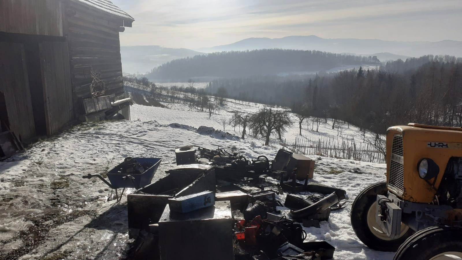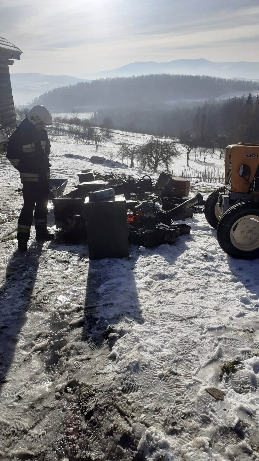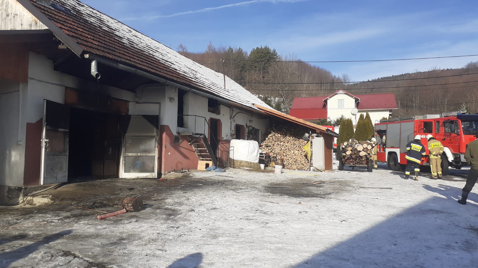 28 grudnia o godzinie 10.41 zastępy z JRG nr 2 w Nowym Sączu, OSP Wola Kosnowa, OSP Zagorzyn oraz OSP Łącko zadysponowane zostały do działań w Woli Kosnowej. Po przybyciu na miejsce zdarzenia ustalono, że pożarem objęty był garaż w budynku gospodarczym. W bliskim sąsiedztwie pożaru znajdował się drewniany oraz murowany budynek mieszkalny. Działania strażaków polegały na zabezpieczeniu miejsca zdarzenia oraz podaniu prądów wody. Jednego w obronie na zagrożoną wiatę a drugi na ognisko pożaru. Z pomieszczenia objętego pożarem wyniesiono dwie butle 11 kg z gazem propan – butan, które zostały schłodzone. Podjęto ewakuację mienia gospodarczego z pobliża pożaru oraz z wnętrza stodoły. Sprzęt gospodarczy w tym maszyny rolnicze znajdujące się przy budynku właściciel usuną w miejsce bezpieczne. Z wnętrza stodoły wypchnięto traktor i quada. Na miejscu znajdował się mężczyzna, w wieku około 20 lat, który przed przyjazdem strażaków próbował gasić pożar i został poszkodowany. Po przybyciu na miejsce zdarzenia karetki Pogotowia Ratunkowego, przejęli oni osobę poszkodowaną. Po lokalizacji pożaru przystąpiono do rozbiórki niektórych spalonych elementów ale w sposób nie naruszający stabilności konstrukcji. W trakcie prac rozbiórkowych sprawdzono za pomocą kamery termowizyjnej wszystkie elementy budynku. Działania strażaków trwały ponad półtorej godziny. Przyczyna pożaru jest nieustalona.