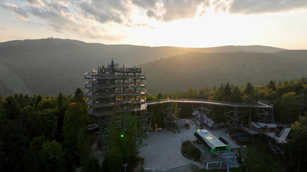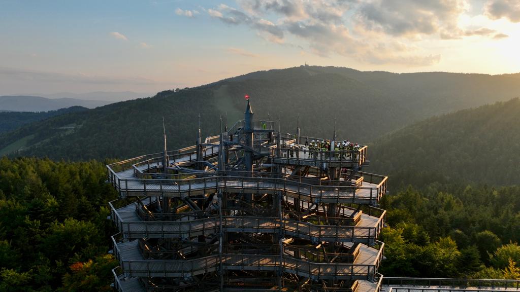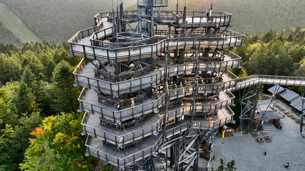 Wspinaczka na szczyt Wieży Widokowej Słotwiny Arena w Krynicy Zdroju