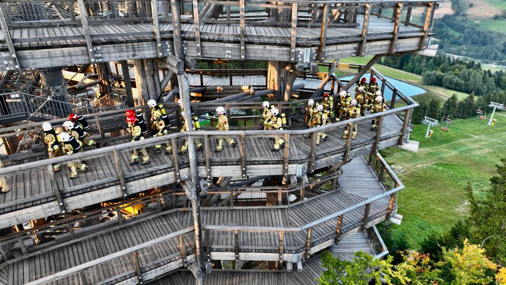 10 i 11 września br. kilkudziesięciu strażaków KM PSP Nowy Sącz oraz z jednostek OSP powiatu nowosądeckiego wspięło się na szczyt Wieży Widokowej Słotwiny Arena w Krynicy Zdroju. Wszystko to w ramach ogólnopolskiej akcji pt. „Honorowa Wspinaczka 11 września”. Podczas wspinaczki upamiętniono poległych 343 strażaków w zamachach terrorystycznych 11 września 2001 roku na World Trade Center. Uczestniczy wspinaczki solidaryzowali się ze wszystkimi strażakami, którym przyszło się mierzyć z nowotworem a w szczególności z Panem st. bryg. mgr inż. Bogdanem Gumulakiem – z-cą Komendanta Miejskiego Państwowej Straży Pożarnej w Nowym Sączu.