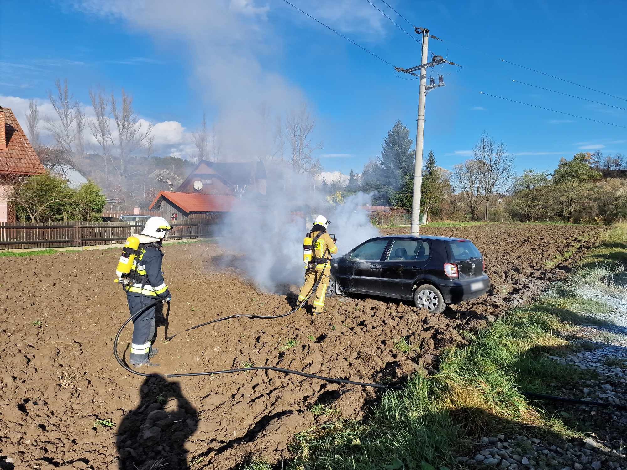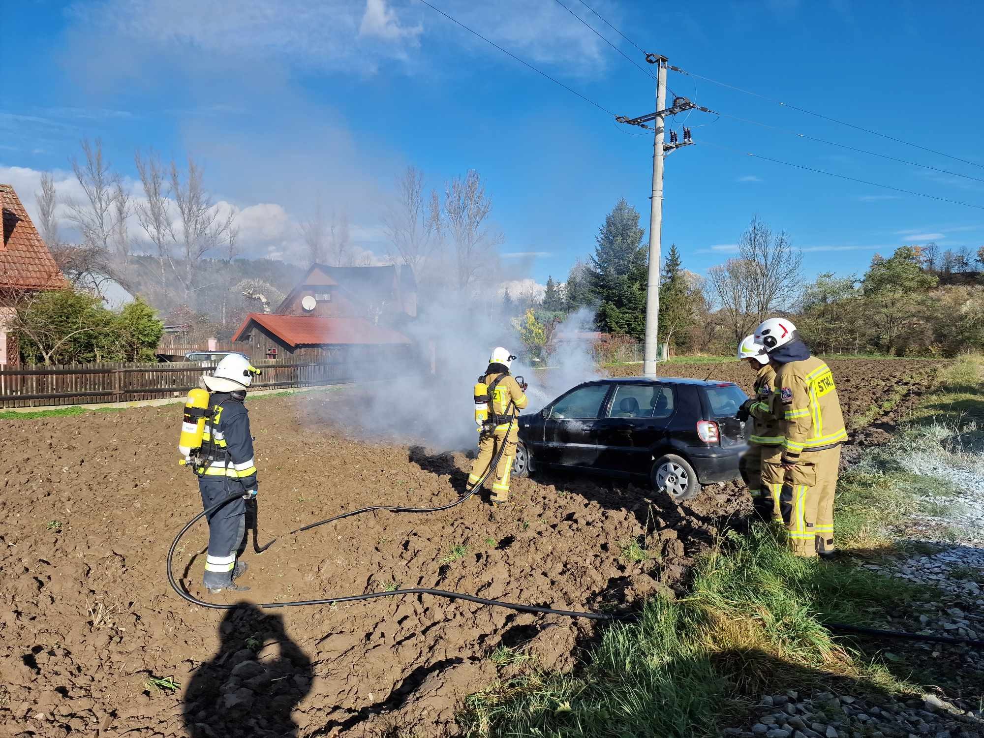 13 listopada o godzinie 11.51 zastępy z JRG nr 2 w Nowym Sączu, OSP Zabrzeż, OSP Czerniec oraz OSP Zarzecze zadysponowane zostały do działań w Zabrzeży. Po przybyciu na miejsce zdarzenia ustalono, że palił się samochód osobowy Vw Polo. Pojazd znajdował się na polu, obok parkingu. Działania zastępów straży pożarnej polegały na zabezpieczeniu miejsca zdarzenia oraz podaniu jednego prądu wody w natarciu. Po ugaszeniu samochód sprawdzono go kamerą termowizyjną oraz dodatkowo przelano nadpalone elementy samochodu. Po ponownym sprawdzeniu samochodu działania straży pożarnej trwające godzinę zostały zakończone.
