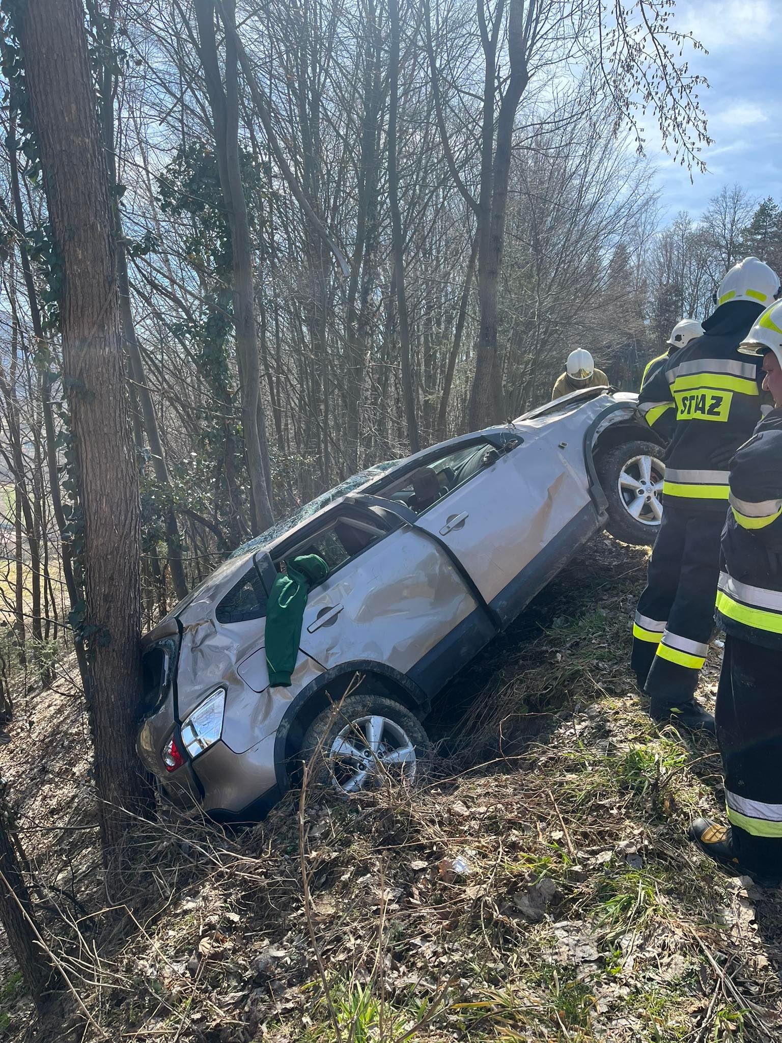 Zabrzeż- samochód osobowy po dachowaniu znalazł się na skarpie